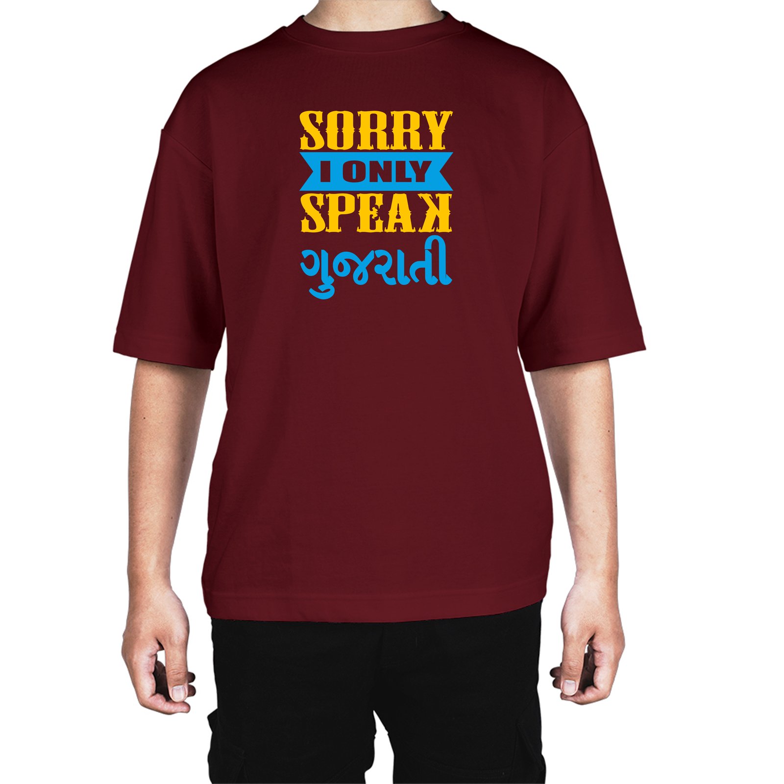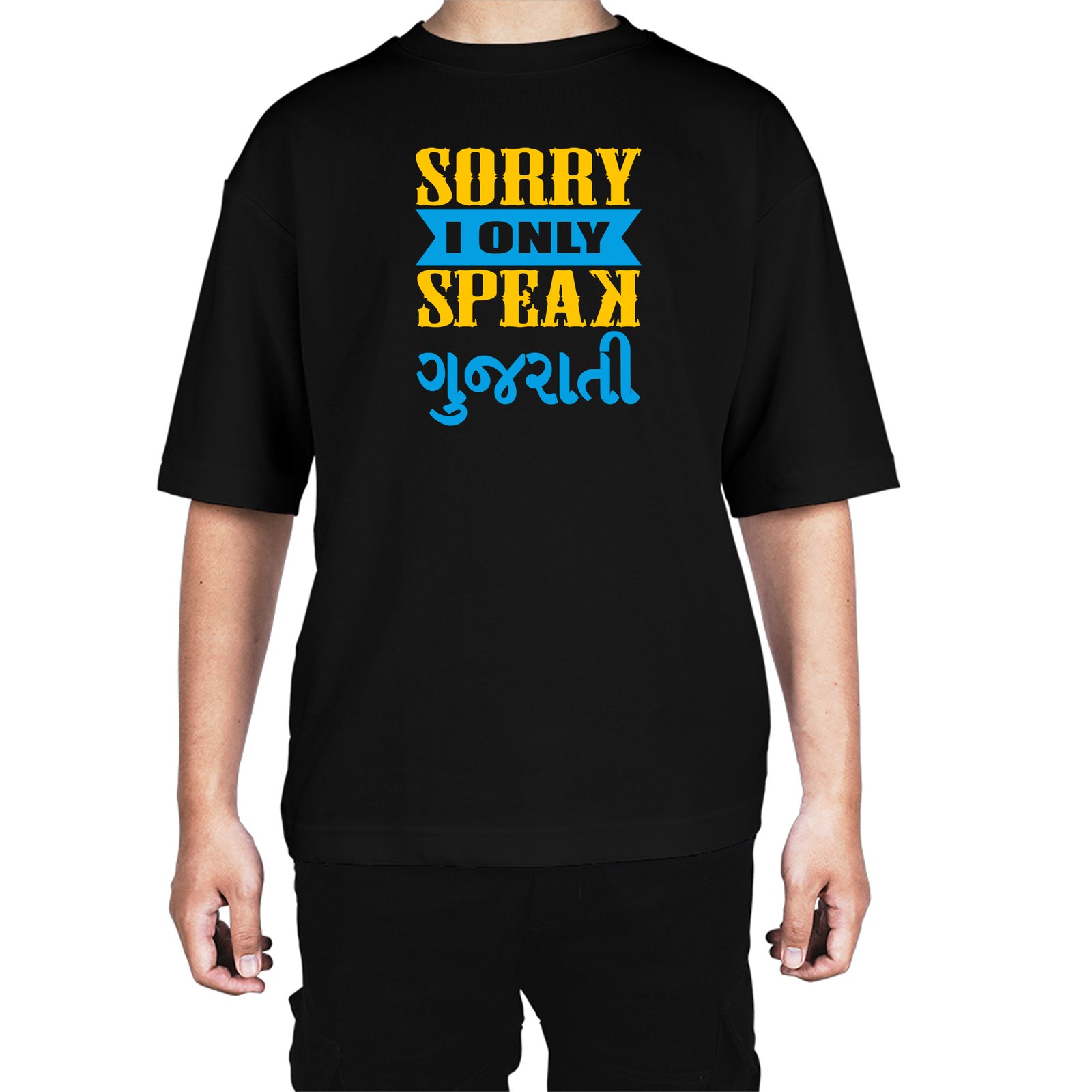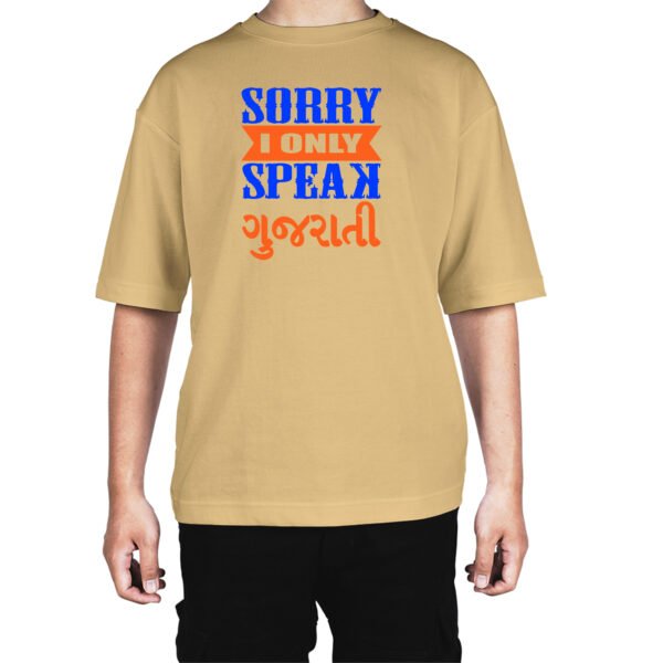 Caseria Men's Cotton Biowash Oversized T-shirt - Sorry Speak Gujarati