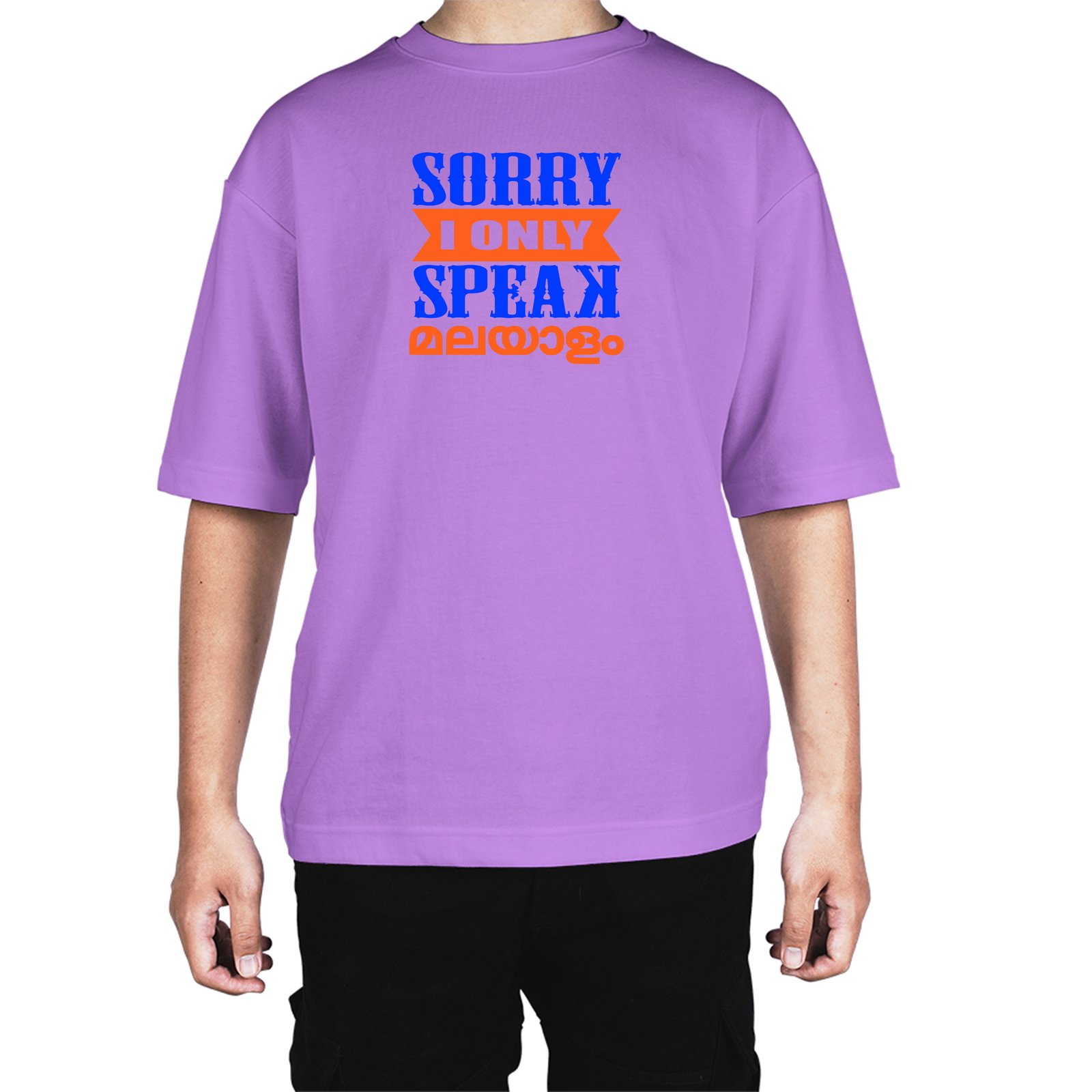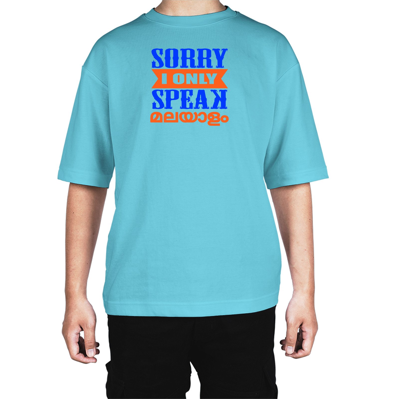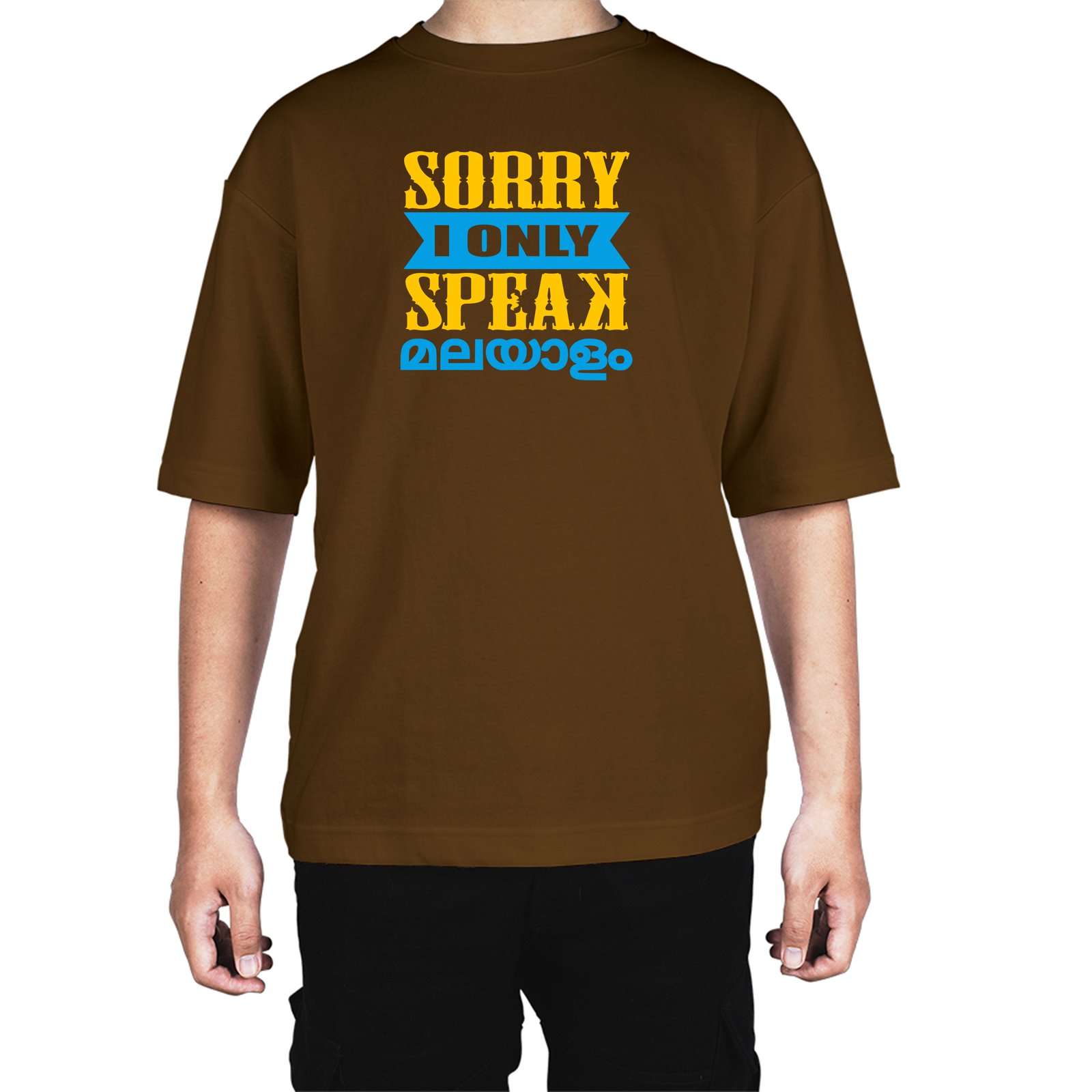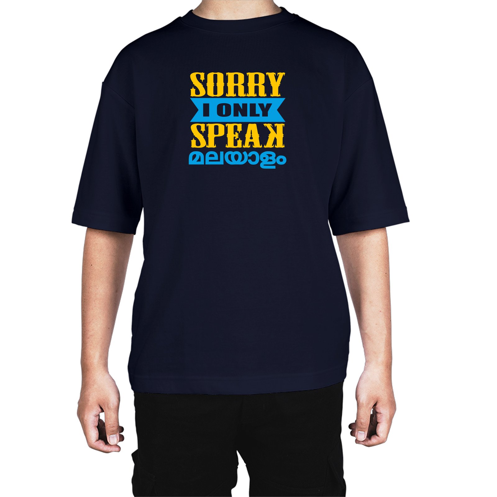 Caseria Men's Cotton Biowash Oversized T-shirt - Sorry Speak Malayalam