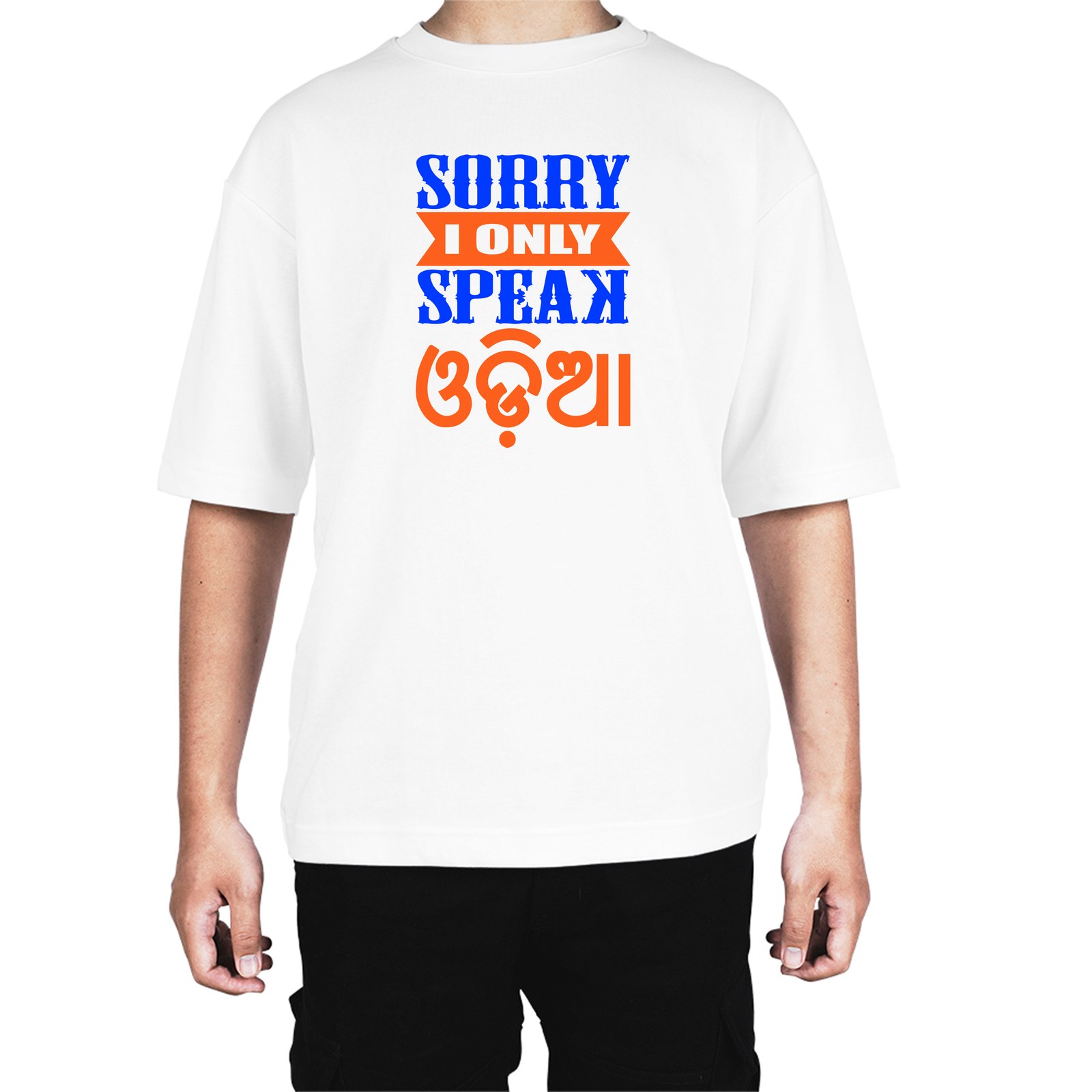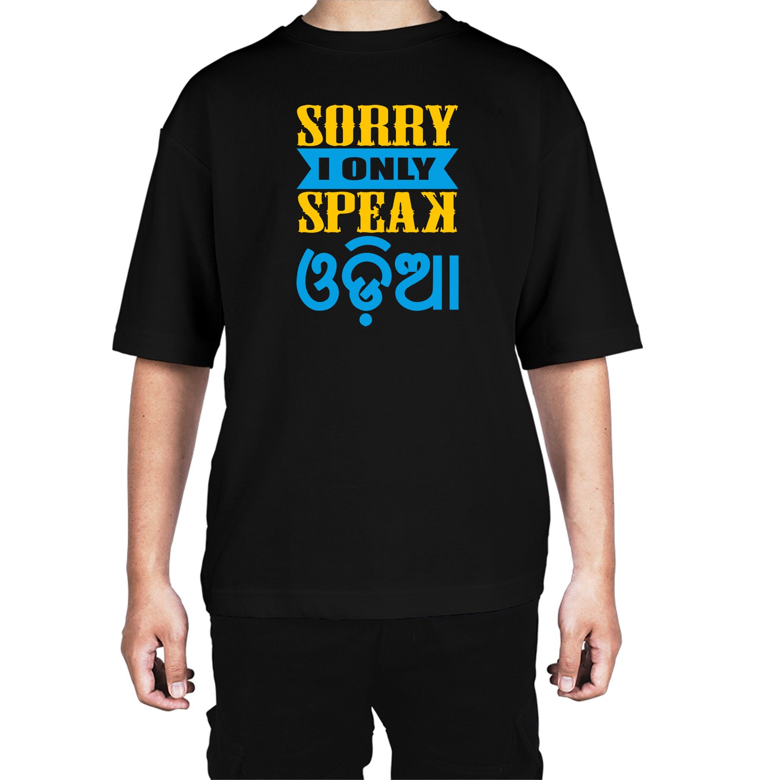 Caseria Men's Cotton Biowash Oversized T-shirt - Sorry Speak Odia