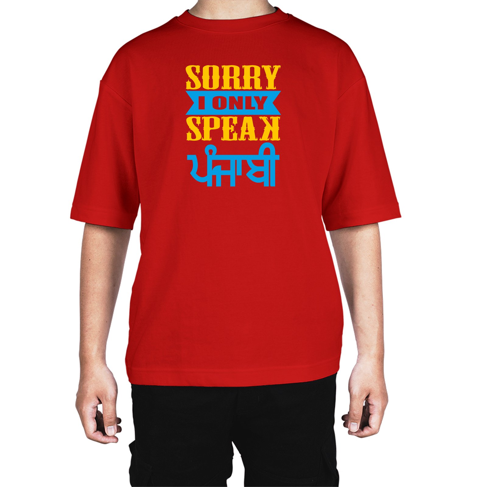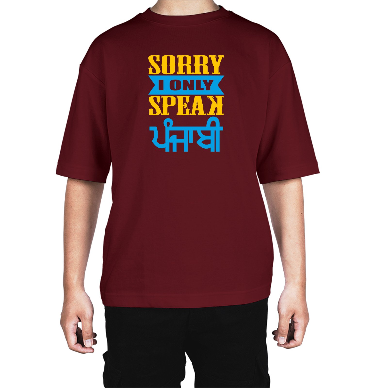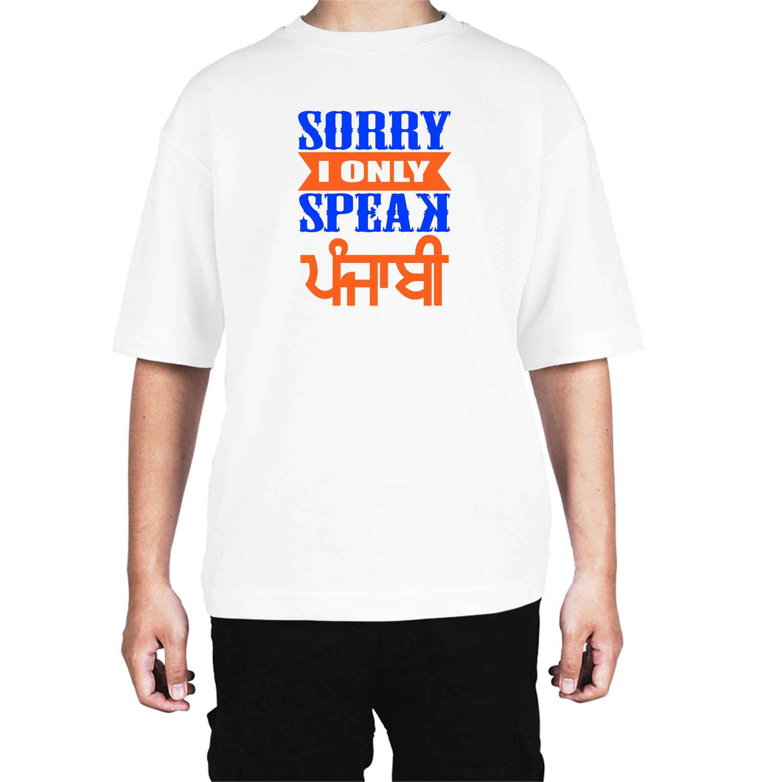 Caseria Men's Cotton Biowash Oversized T-shirt - Sorry Speak Punjabi