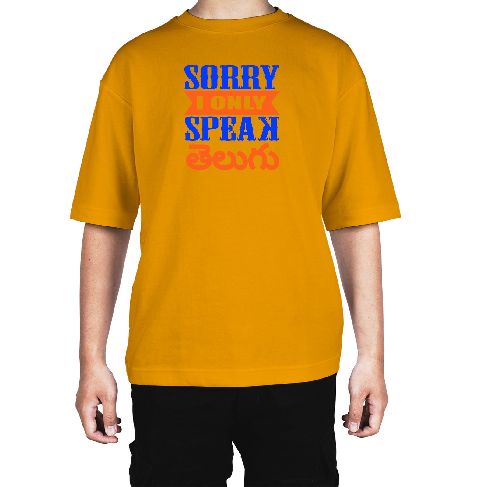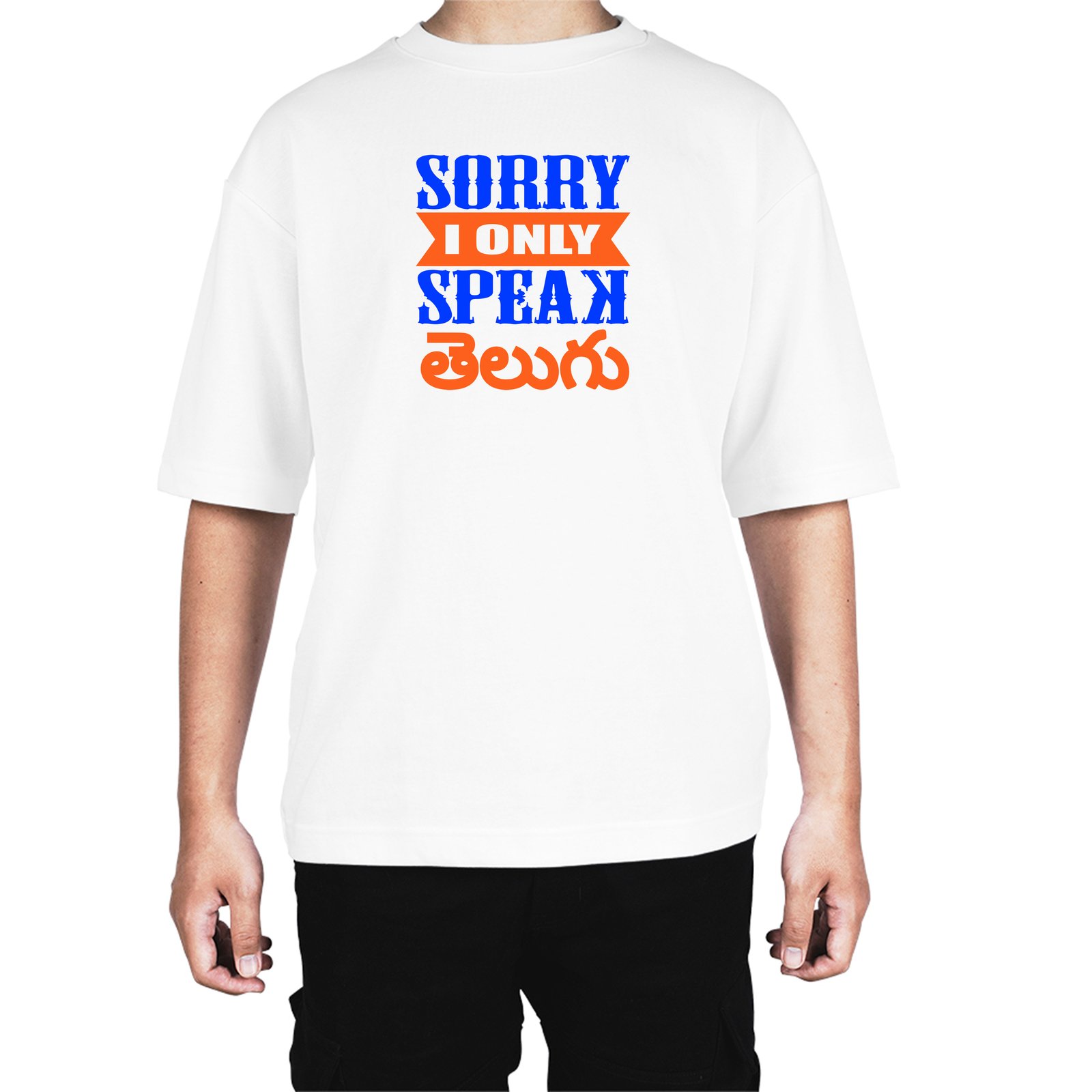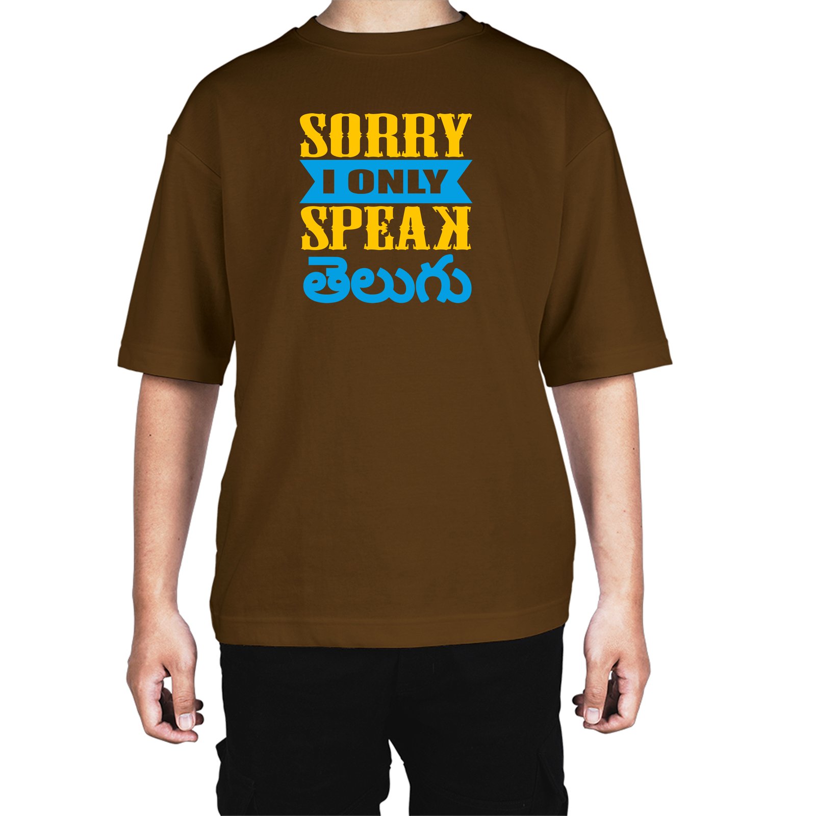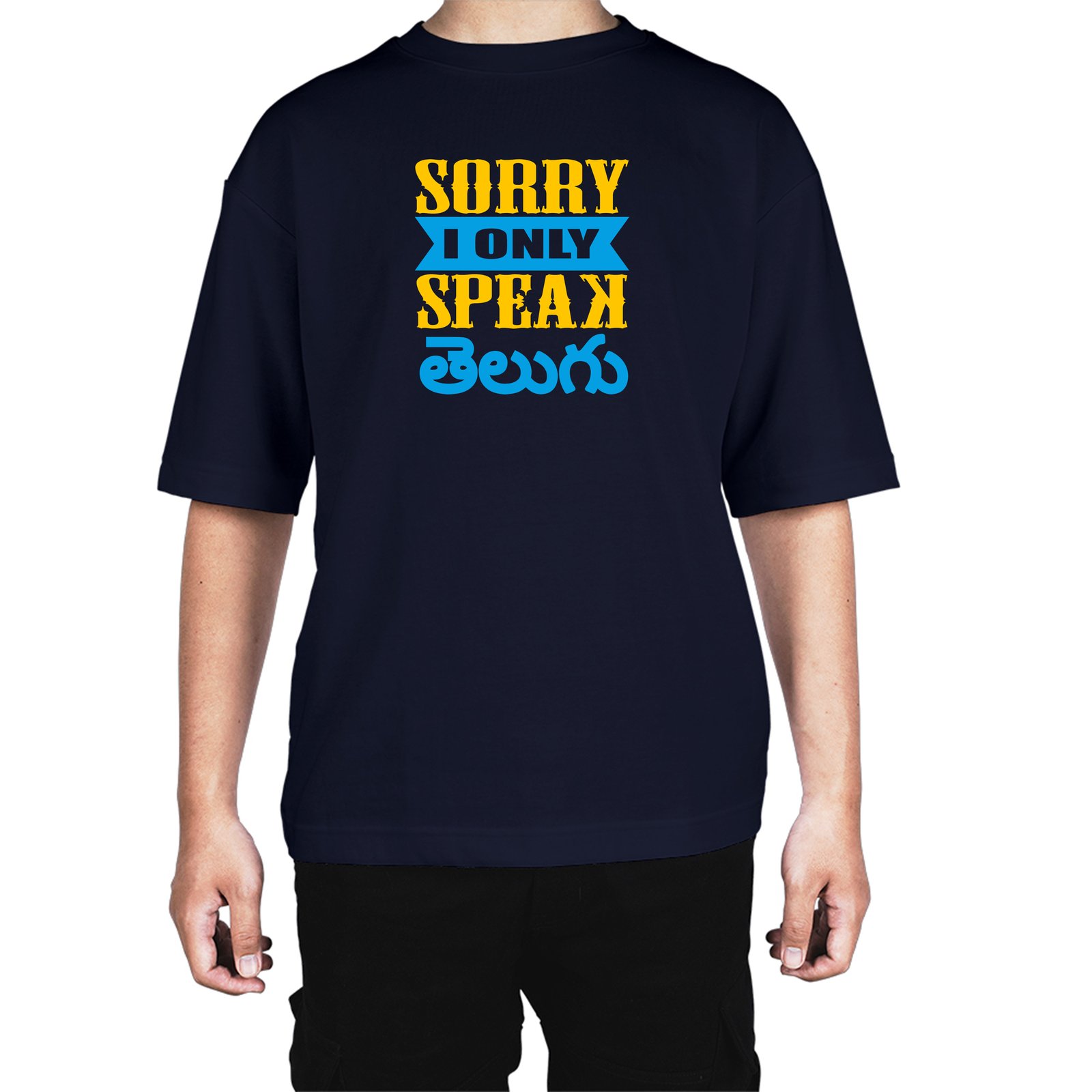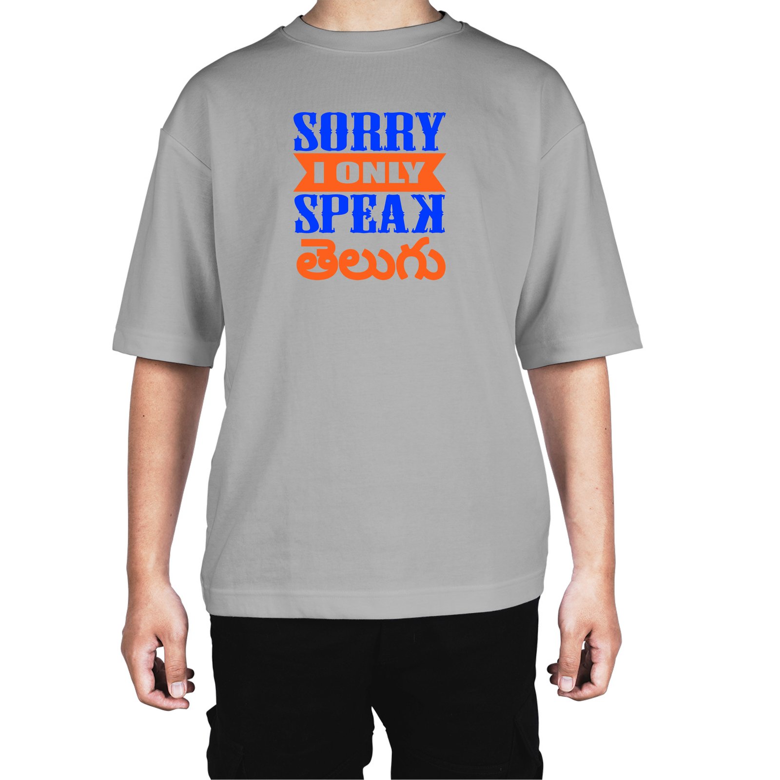Caseria Men's Cotton Biowash Oversized T-shirt - Sorry Speak Telugu