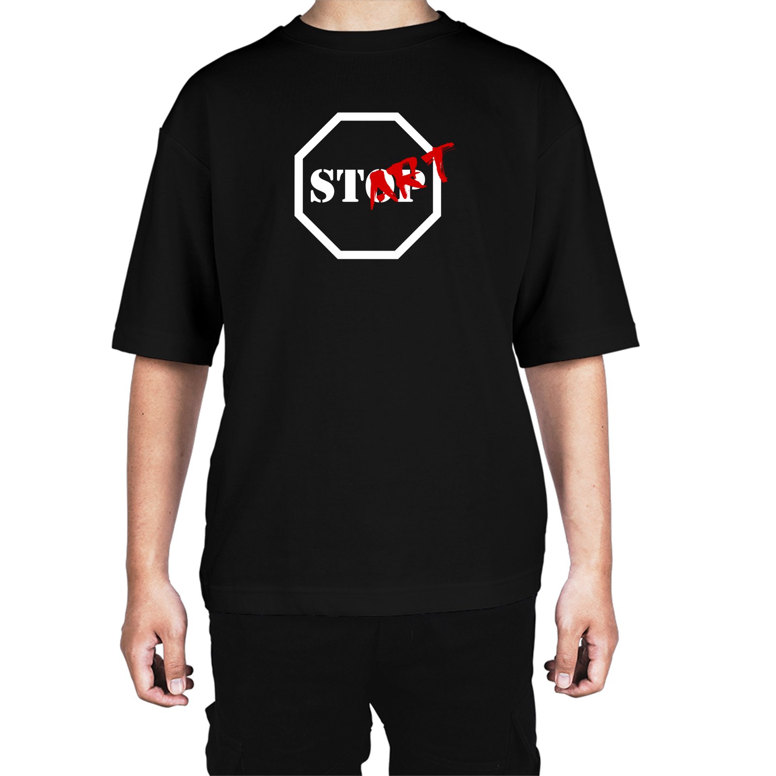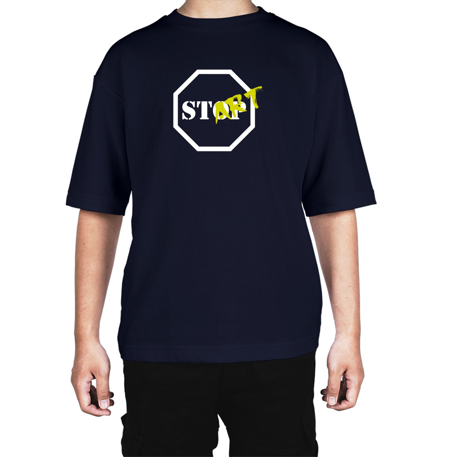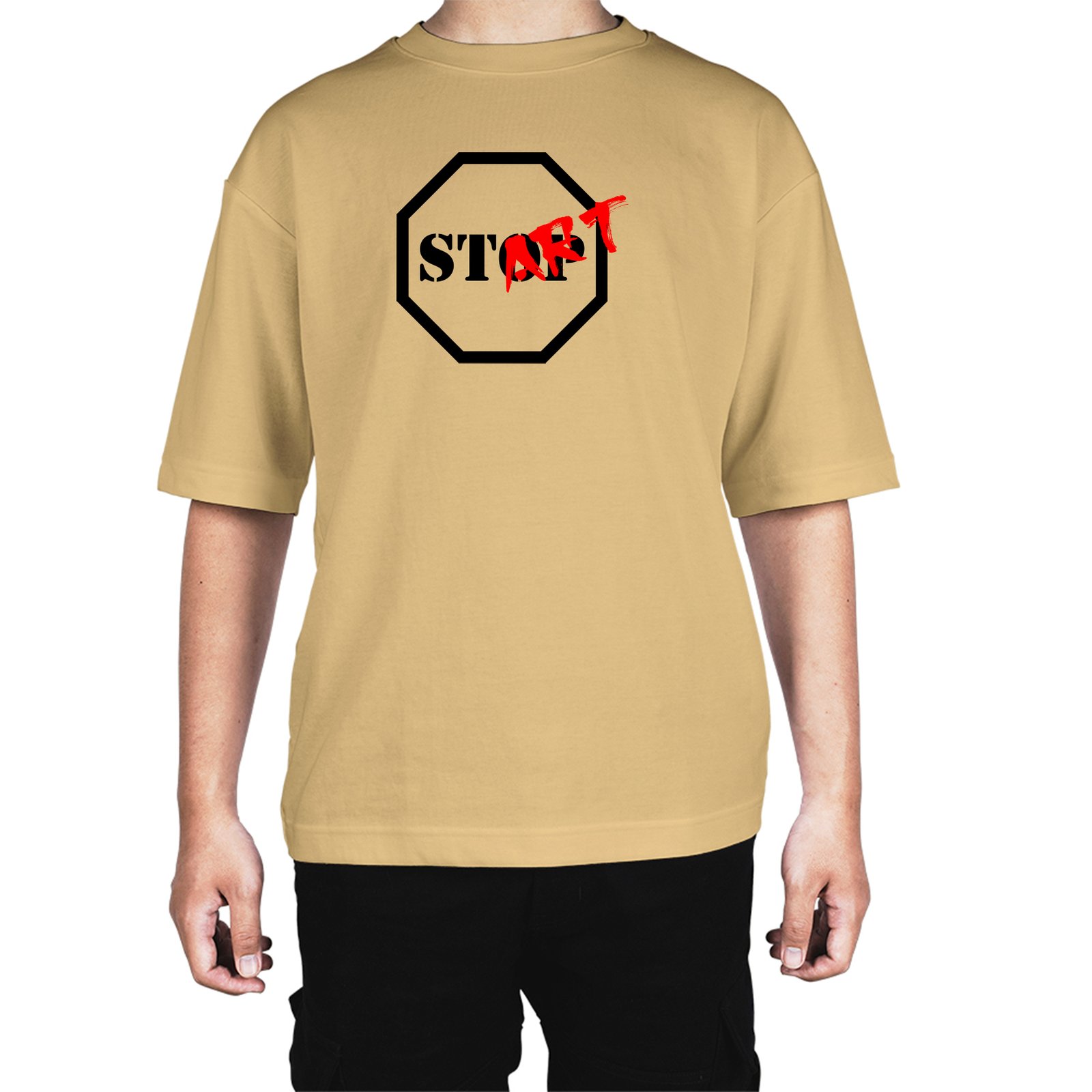 Caseria Men's Cotton Biowash Oversized T-shirt - Stop Or Start