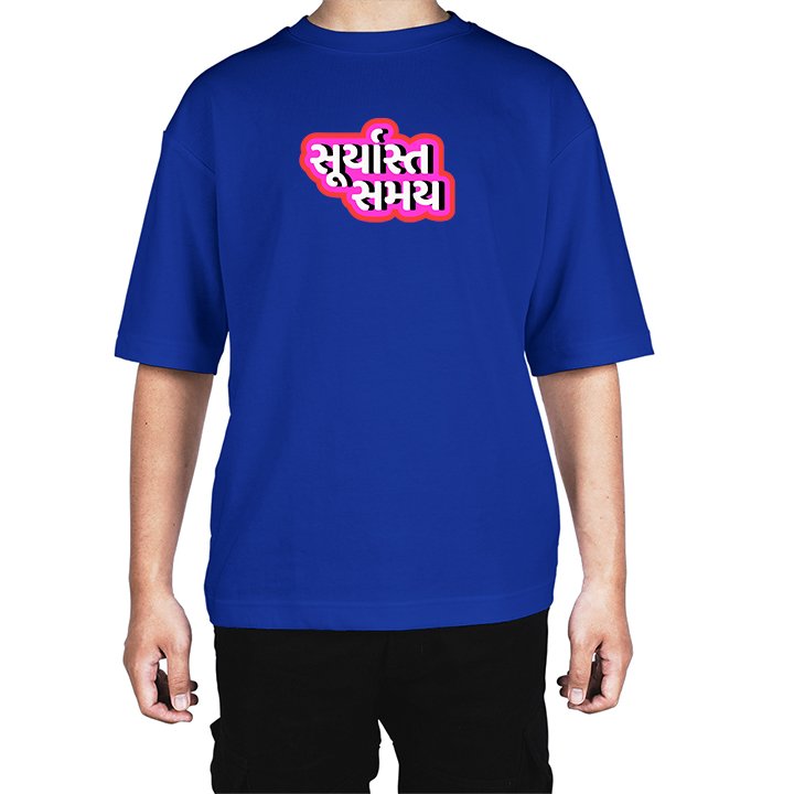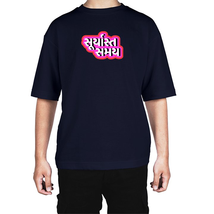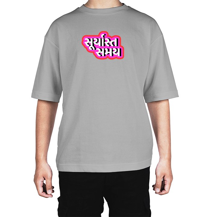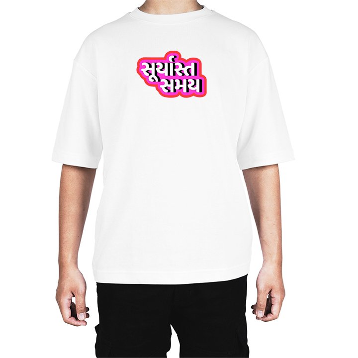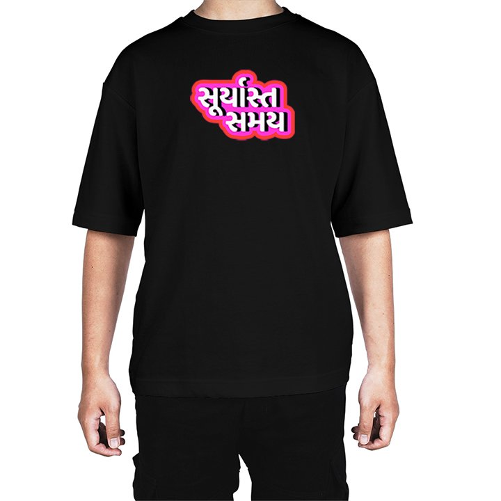 Caseria Men's Cotton Biowash Oversized T-shirt - Sunset time Gujarati