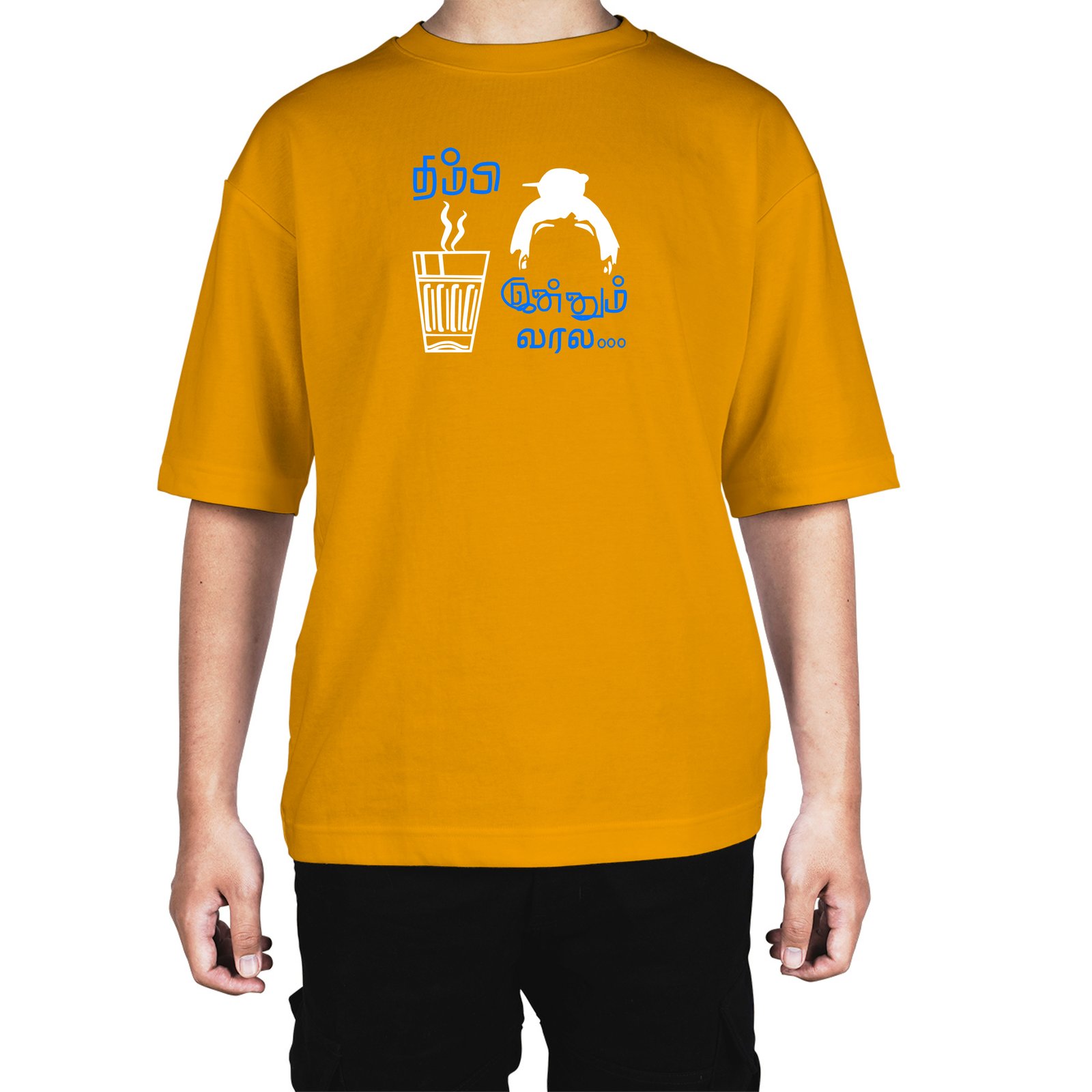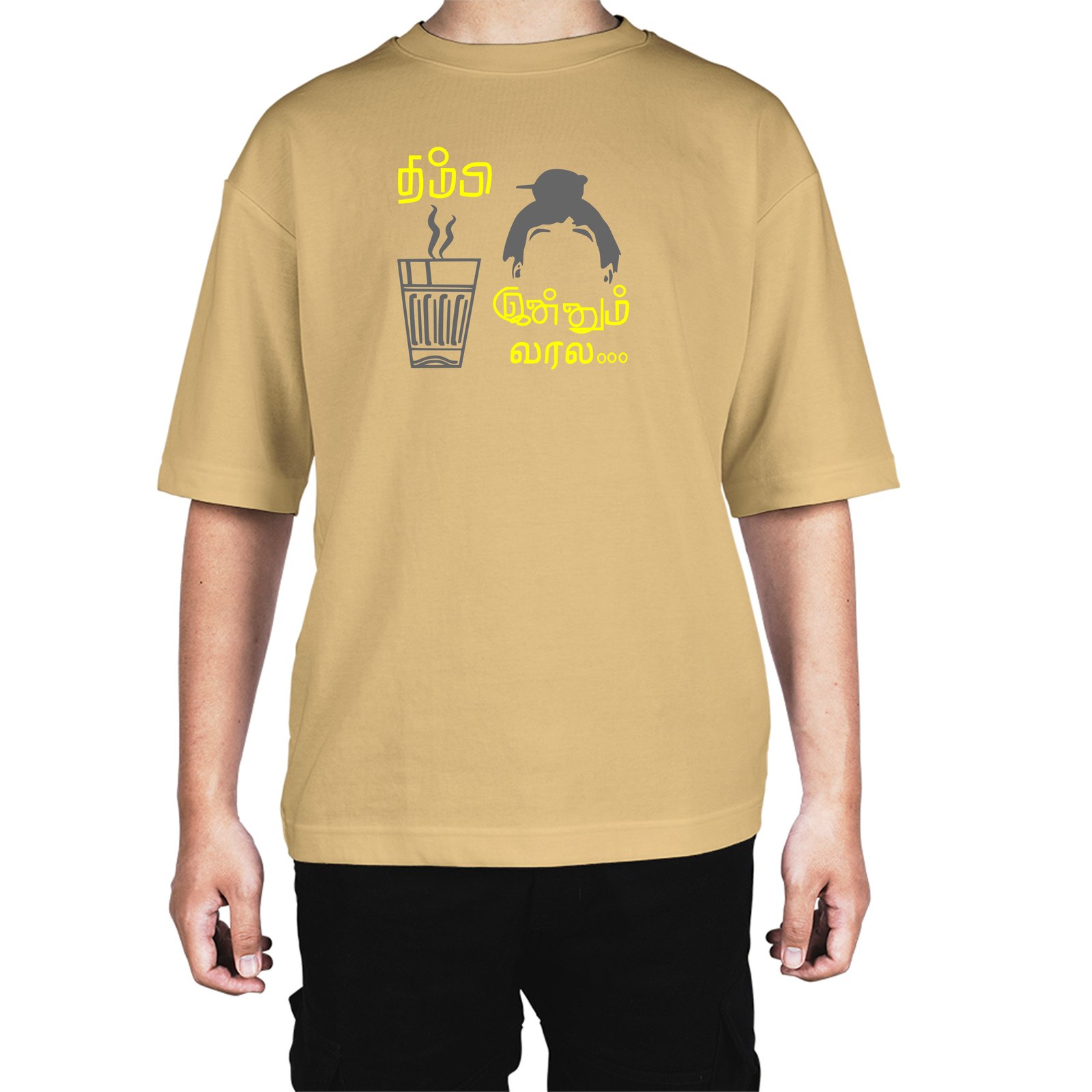 Caseria Men's Cotton Biowash Oversized T-shirt - Thambi Tea Innum Varla Tamil