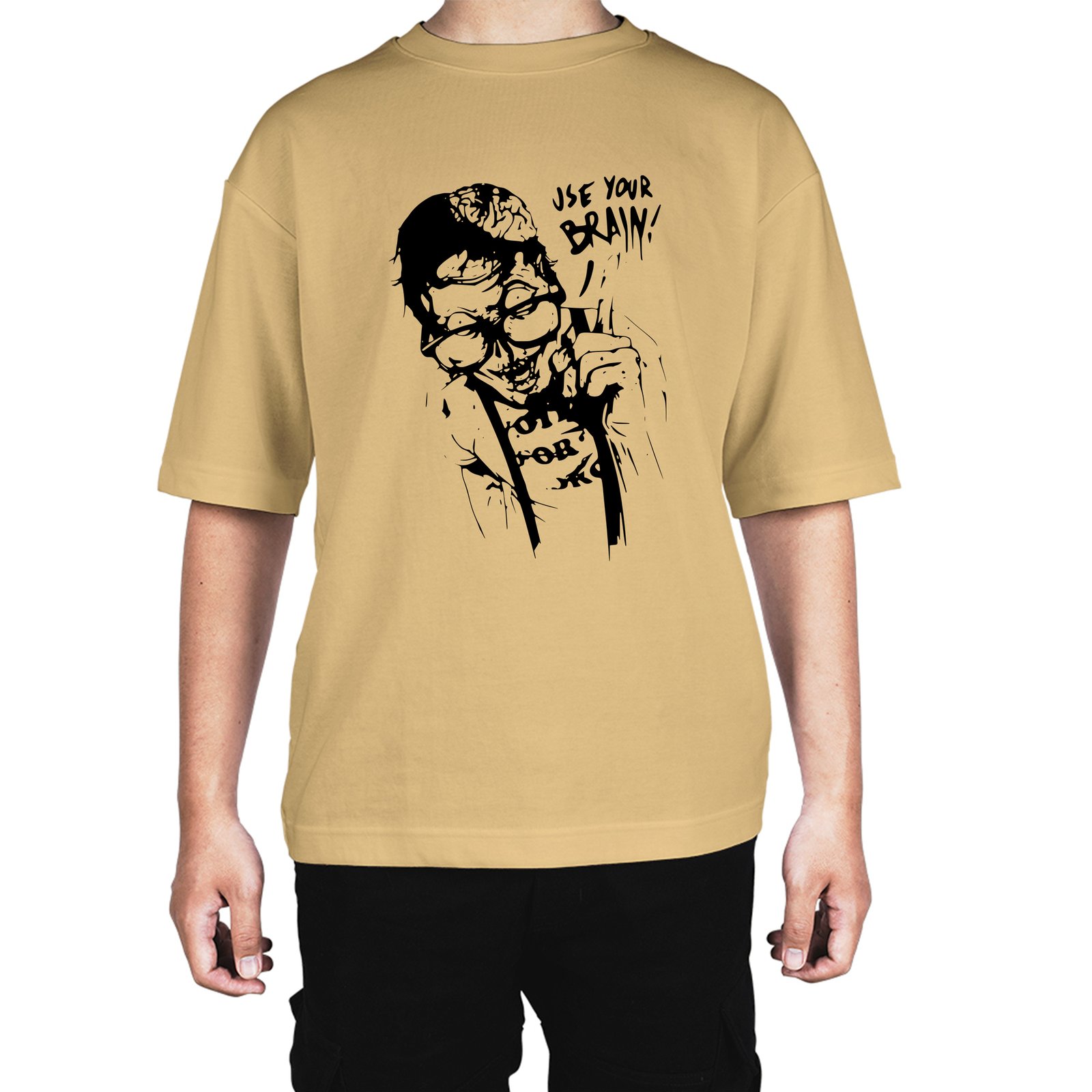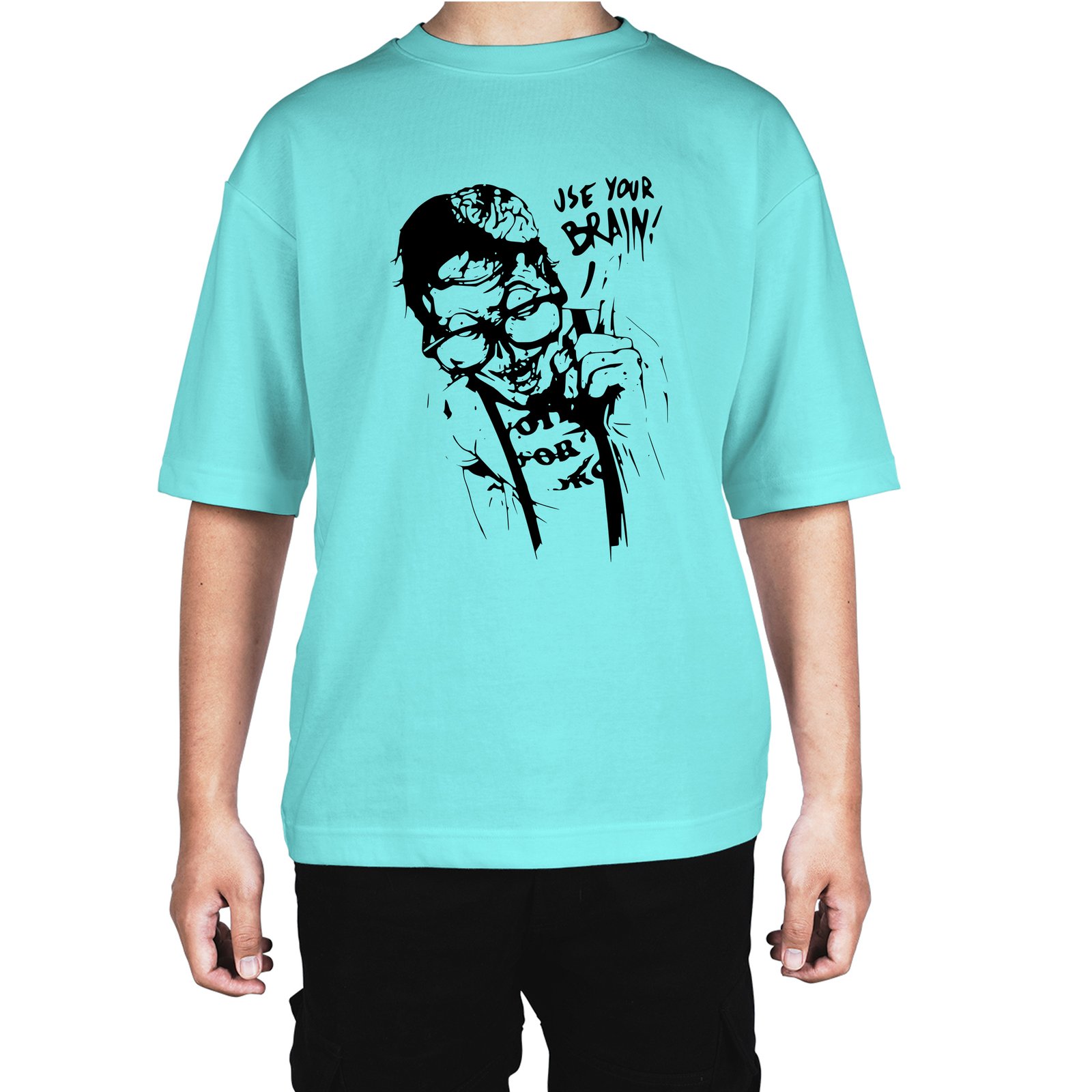 Caseria Men's Cotton Biowash Oversized T-shirt - Use Your Brain