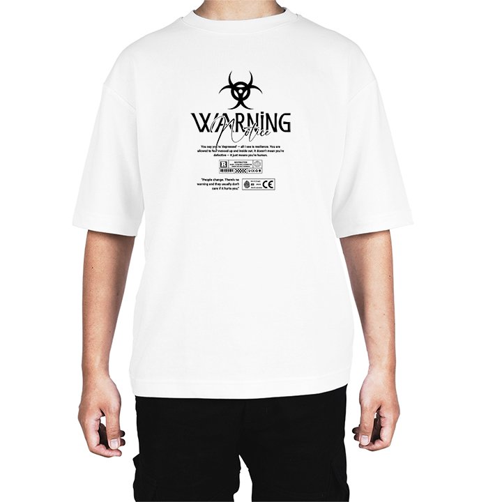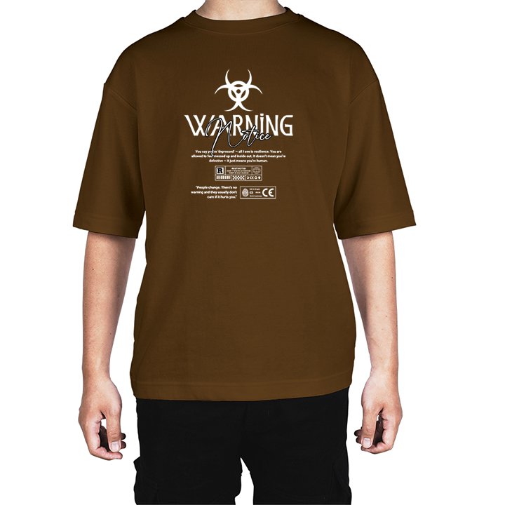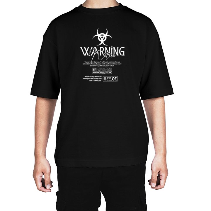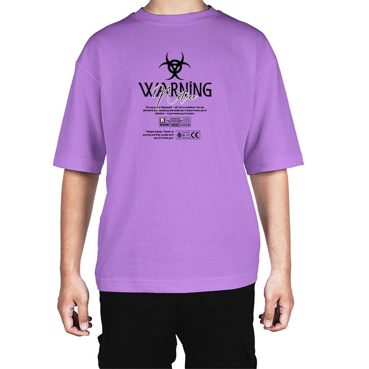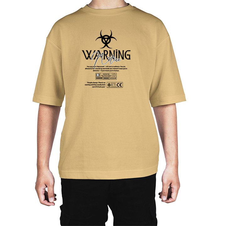 Caseria Men's Cotton Biowash Oversized T-shirt - Warning Notice