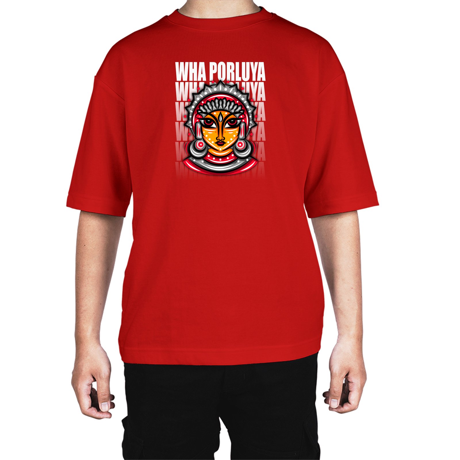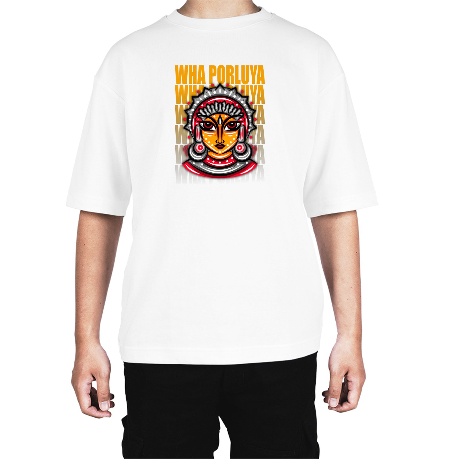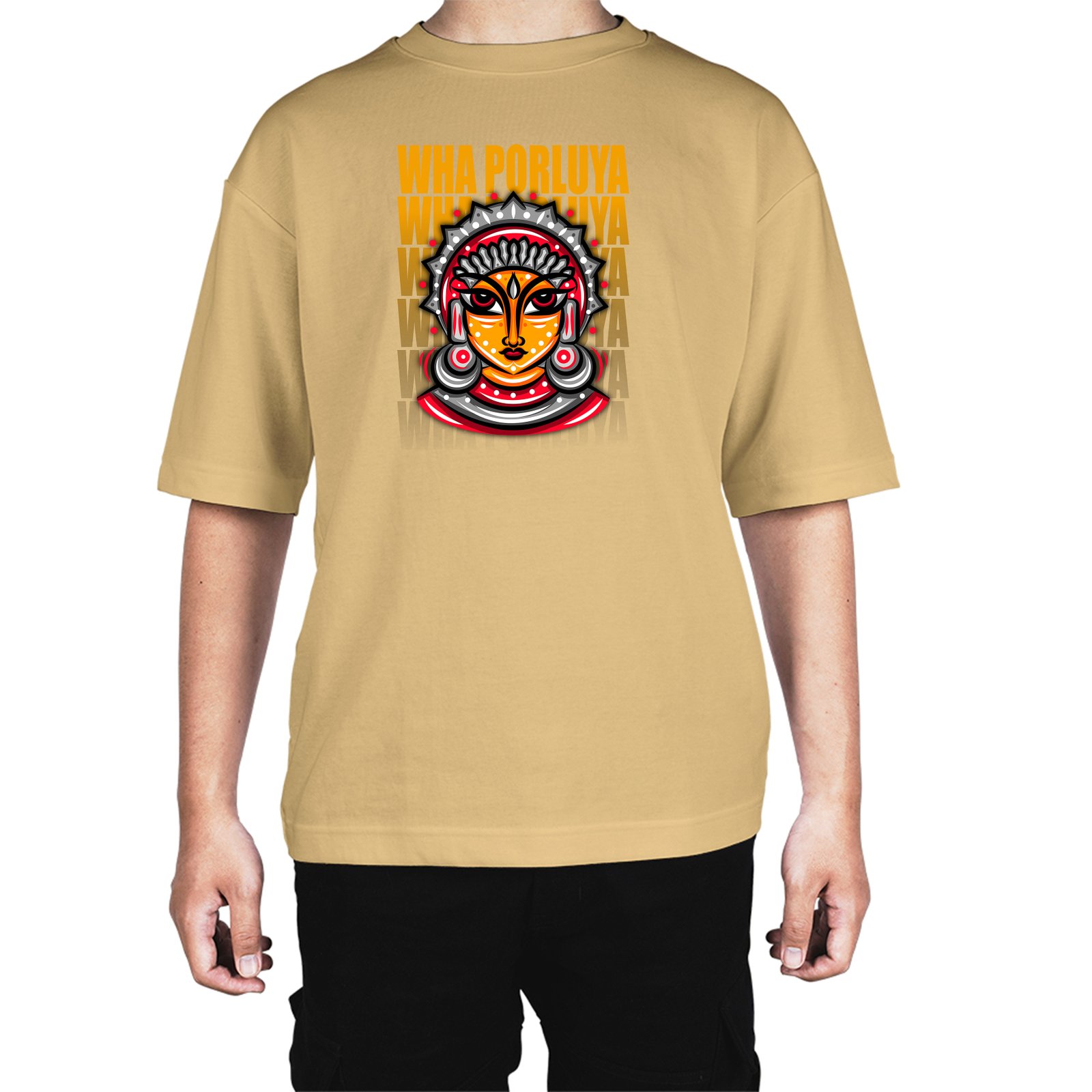 Caseria Men's Cotton Biowash Oversized T-shirt - Wha Porluyya Tulu