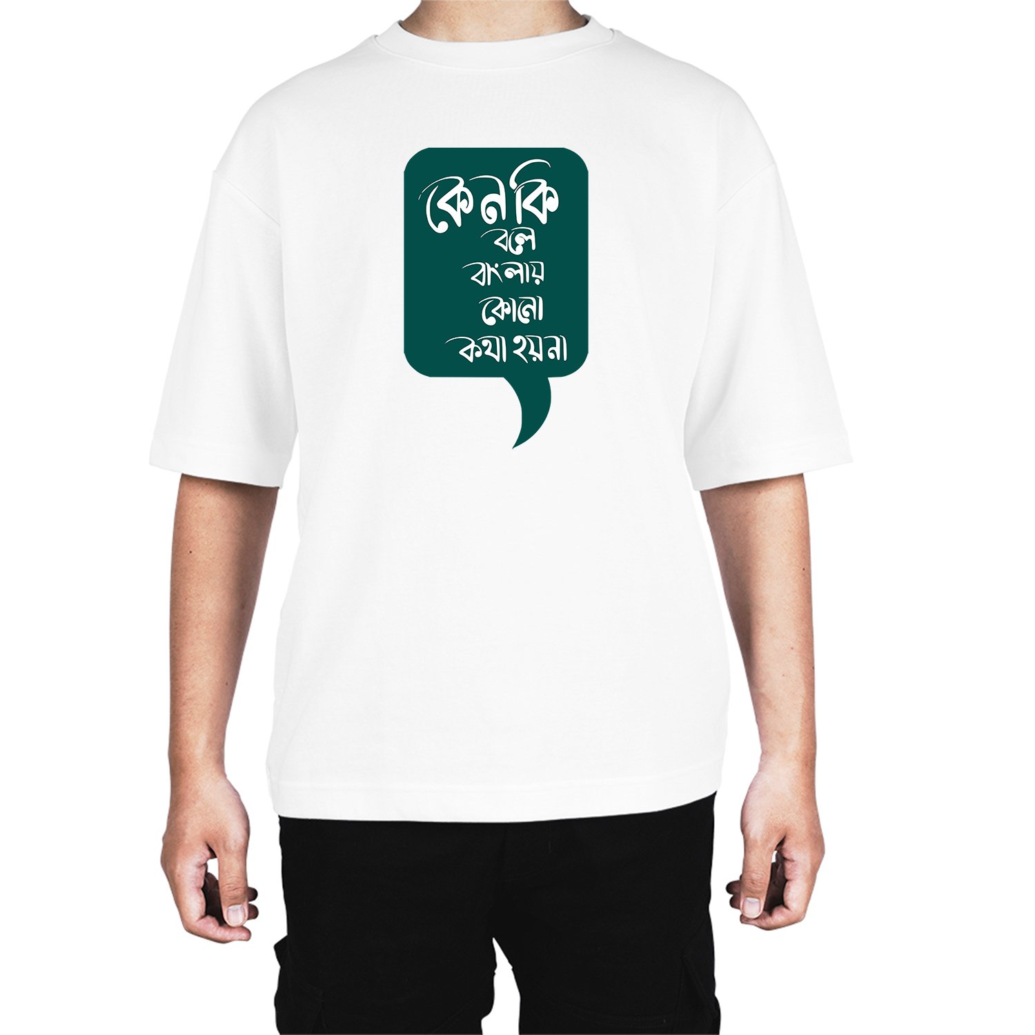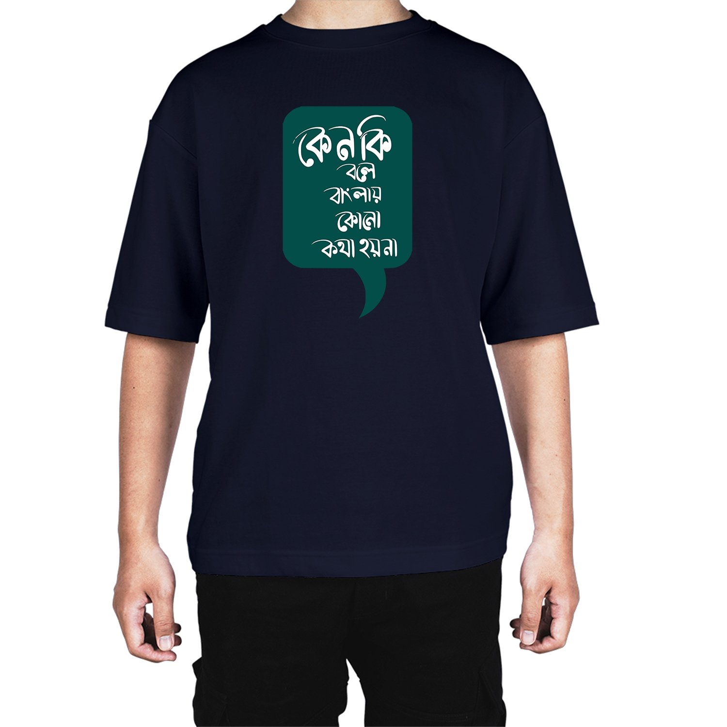 Caseria Men's Cotton Biowash Oversized T-shirt - Why is there no talk in Bengali?