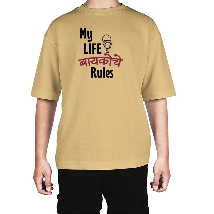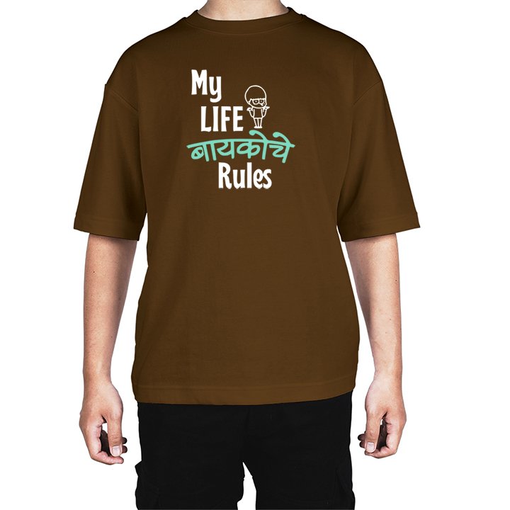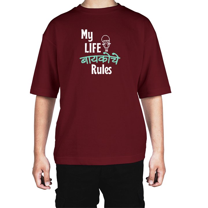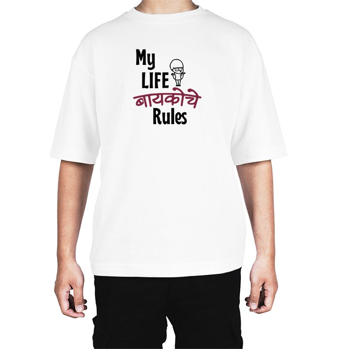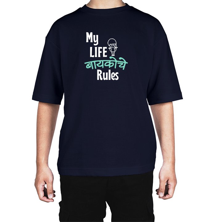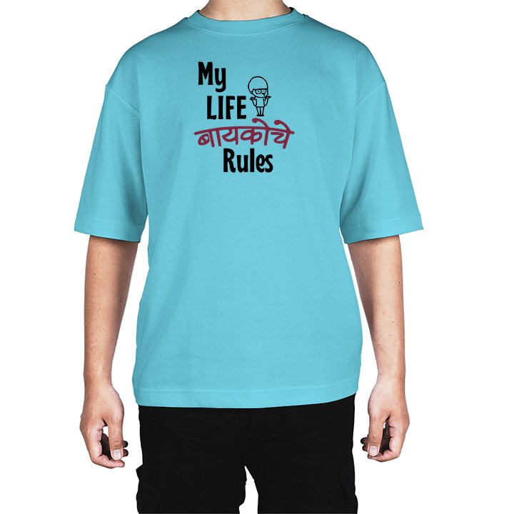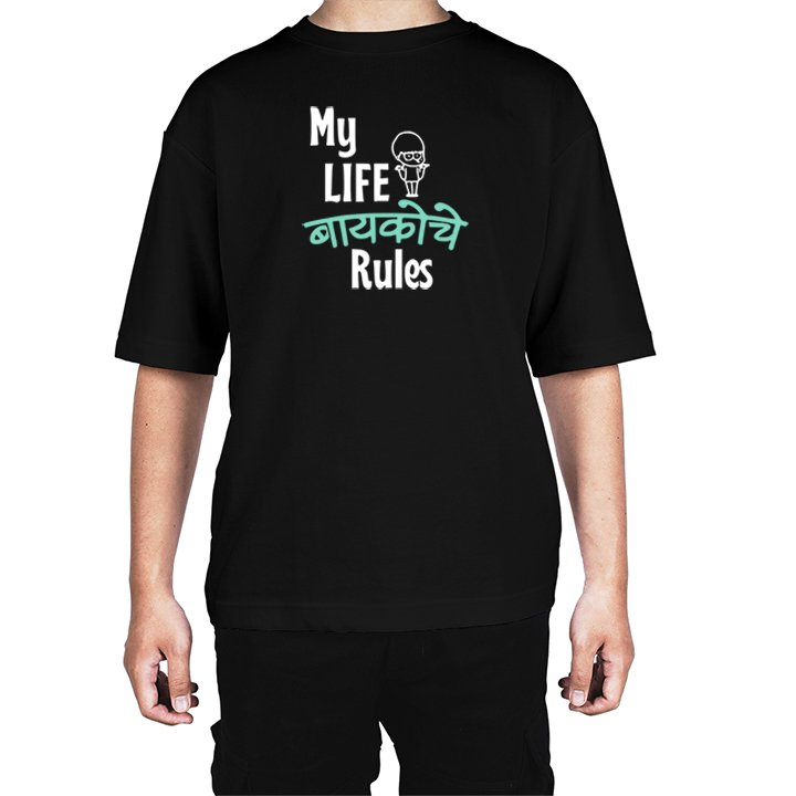 Caseria Men's Cotton Biowash Oversized T-shirt - Wife Rules Marathi