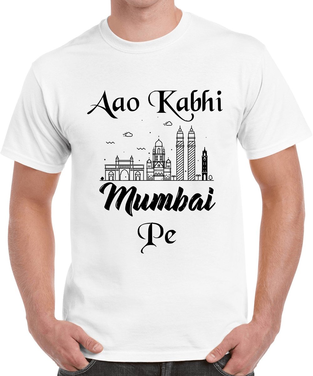 Caseria Men's Cotton Graphic Printed Half Sleeve T-Shirt - Aao Kabhi Mumbai