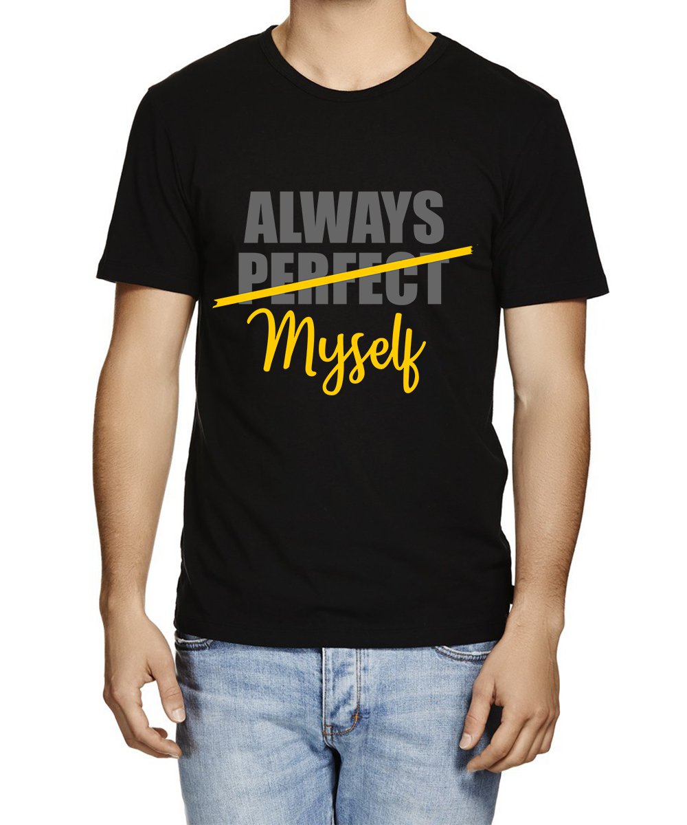 Caseria Men's Cotton Graphic Printed Half Sleeve T-Shirt - Always Perfect Myself