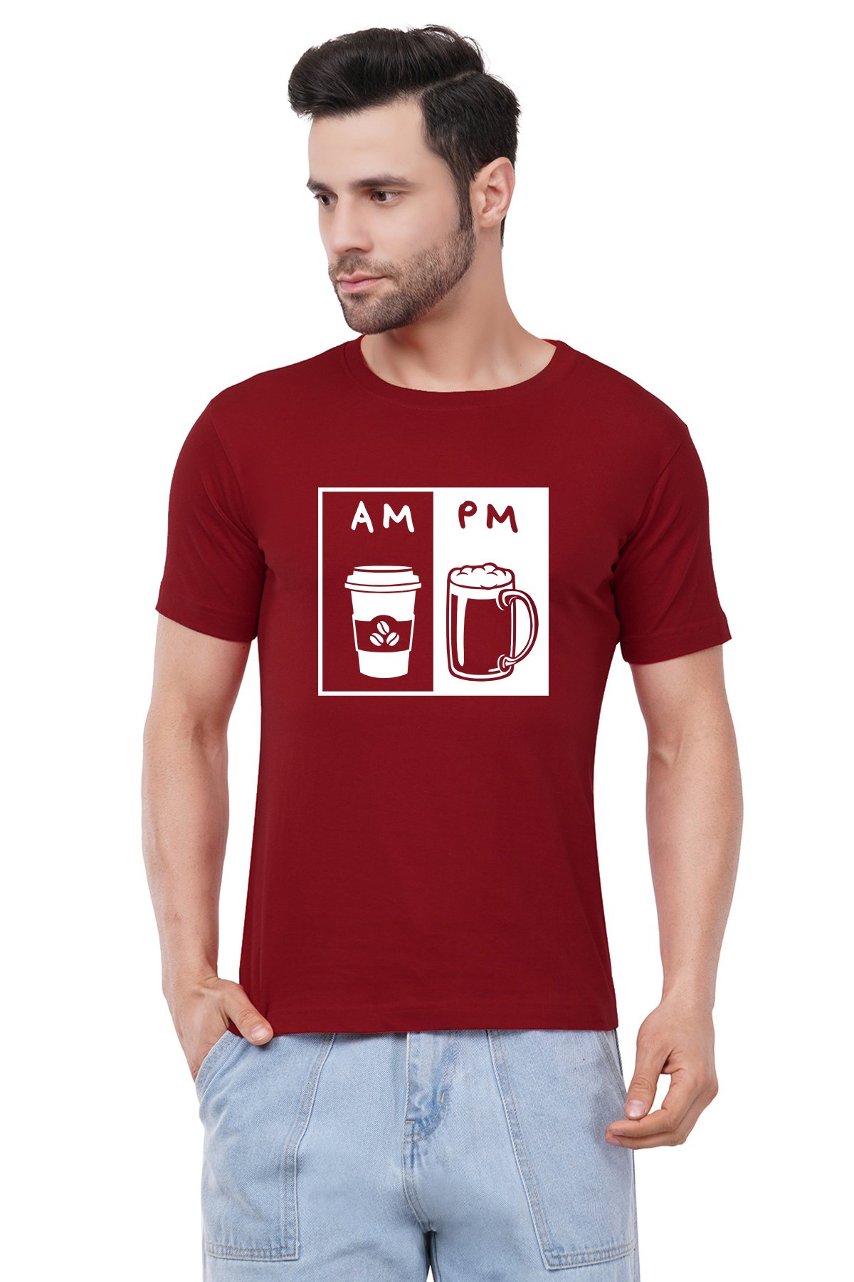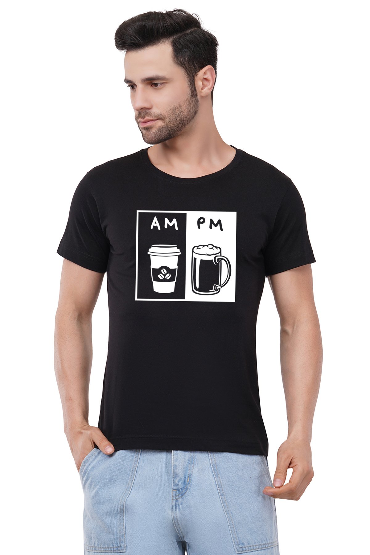 Caseria Men's Cotton Graphic Printed Half Sleeve T-Shirt - AM PM