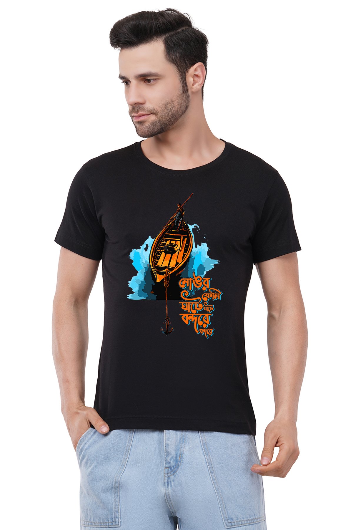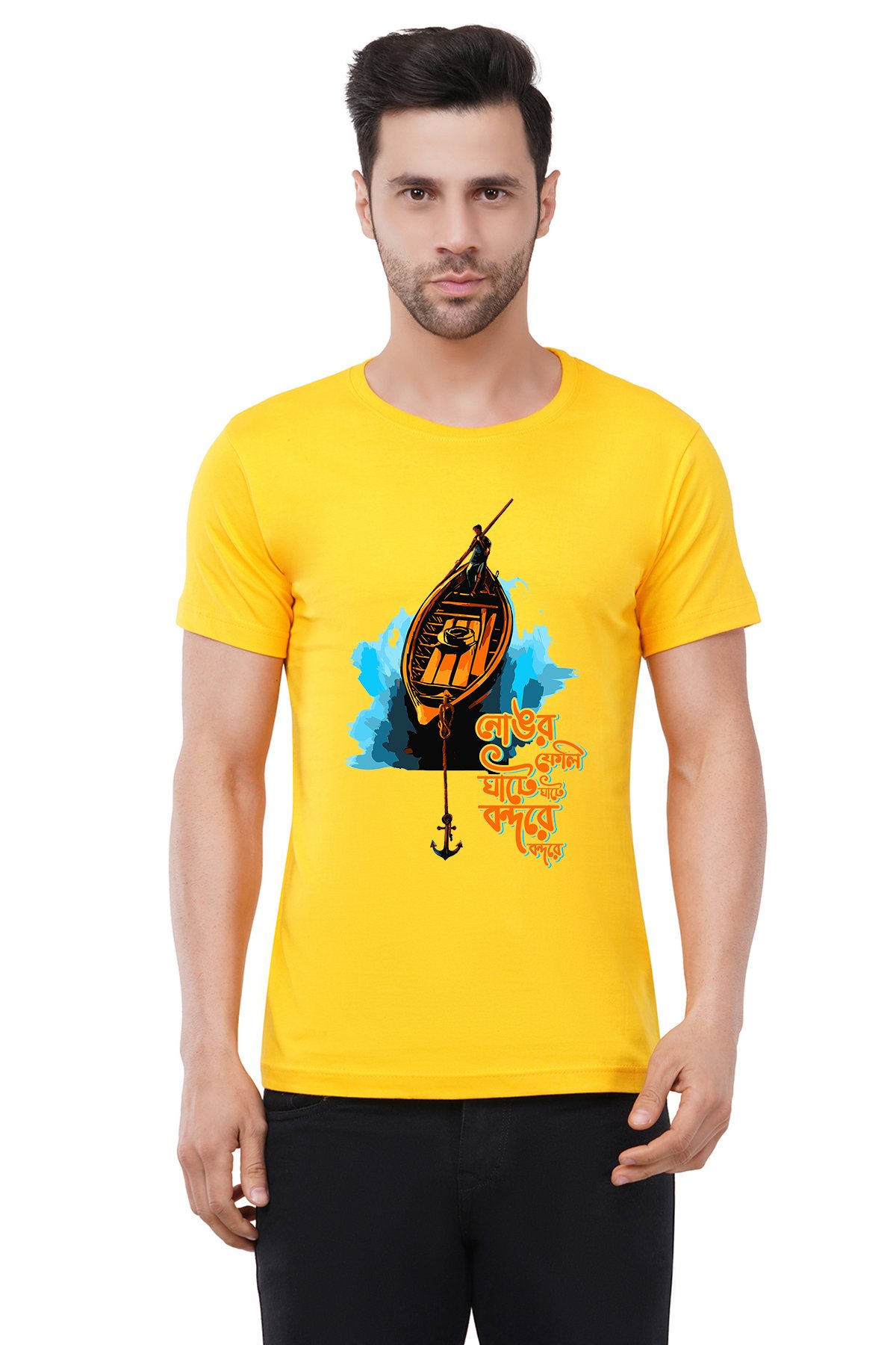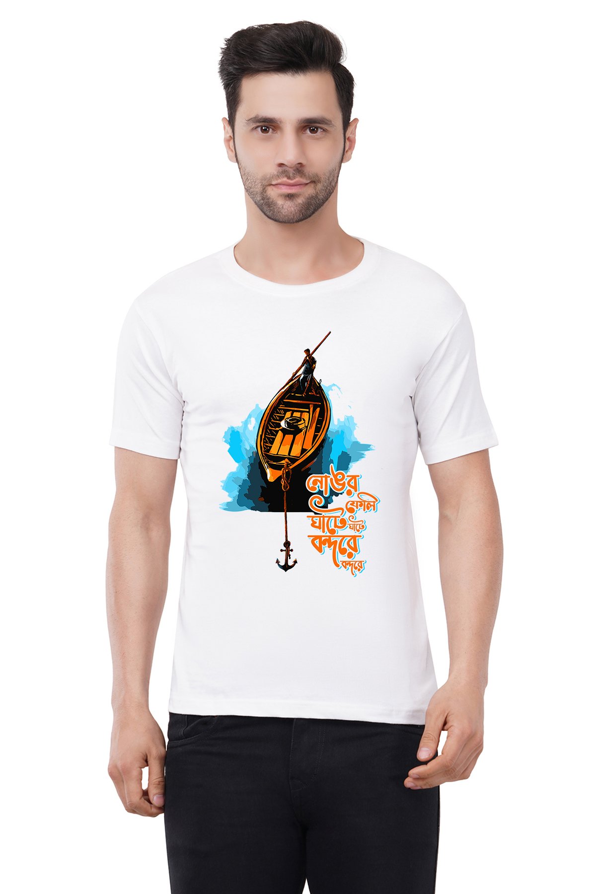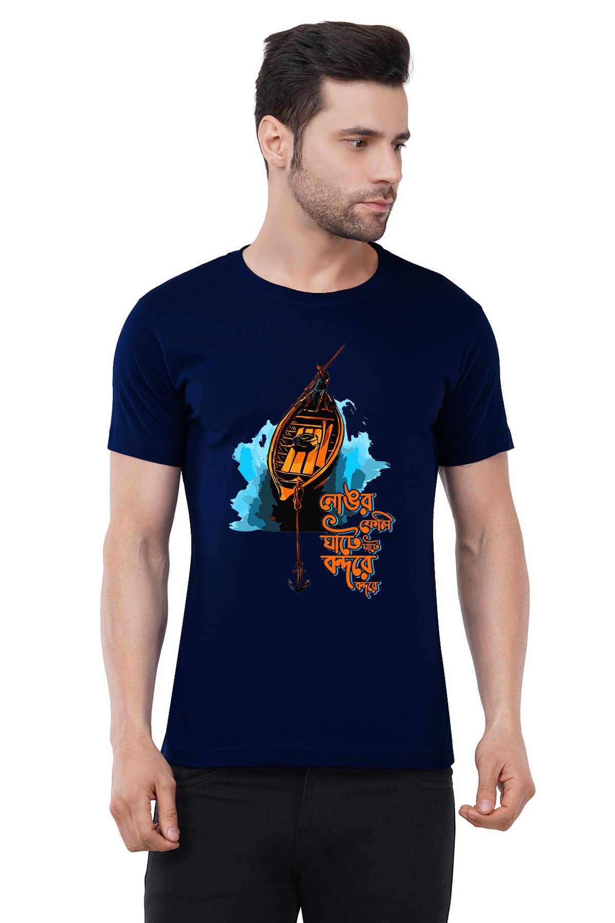 Caseria Men's Cotton Graphic Printed Half Sleeve T-Shirt - Anchorage At The Port Bengali