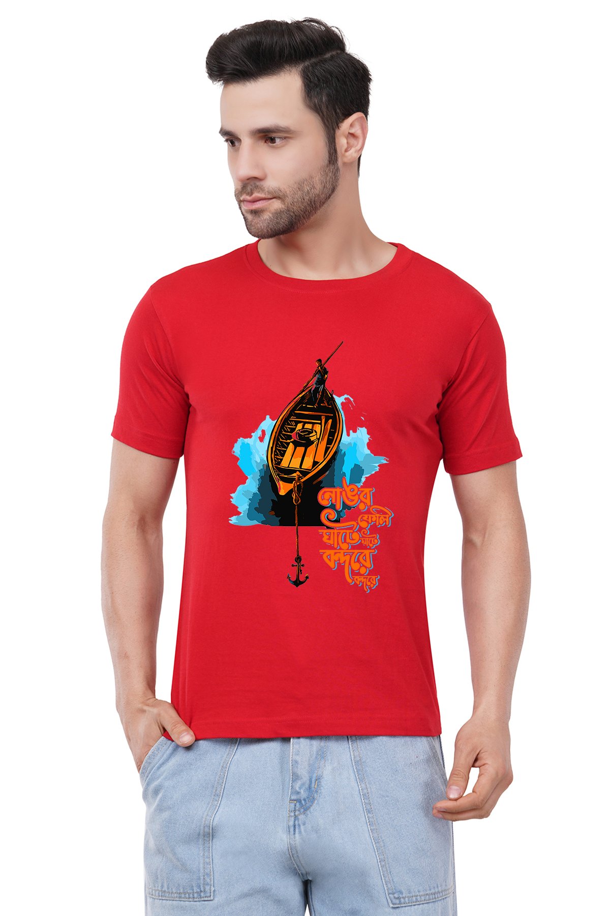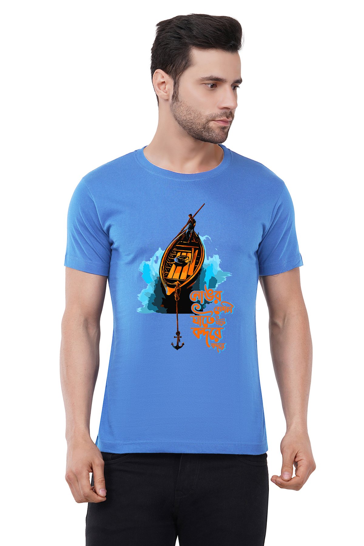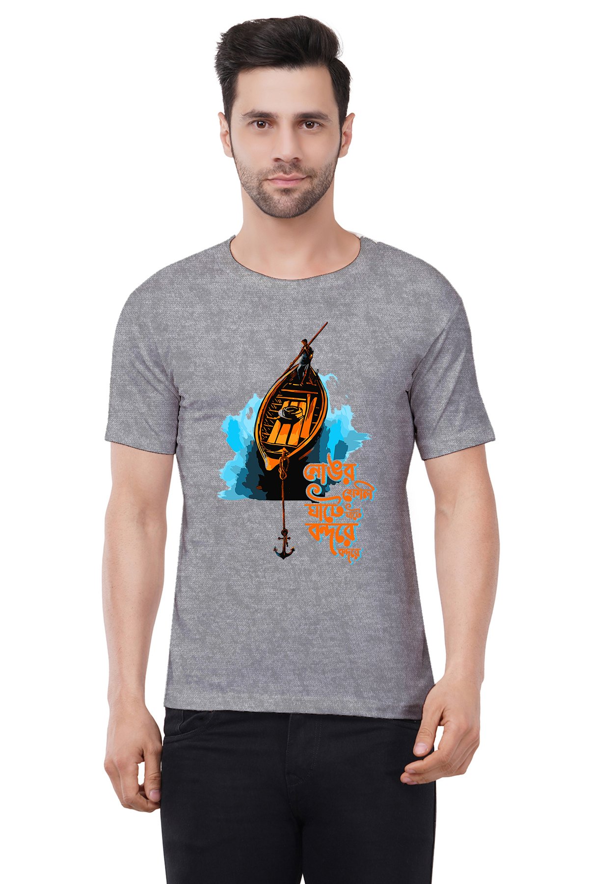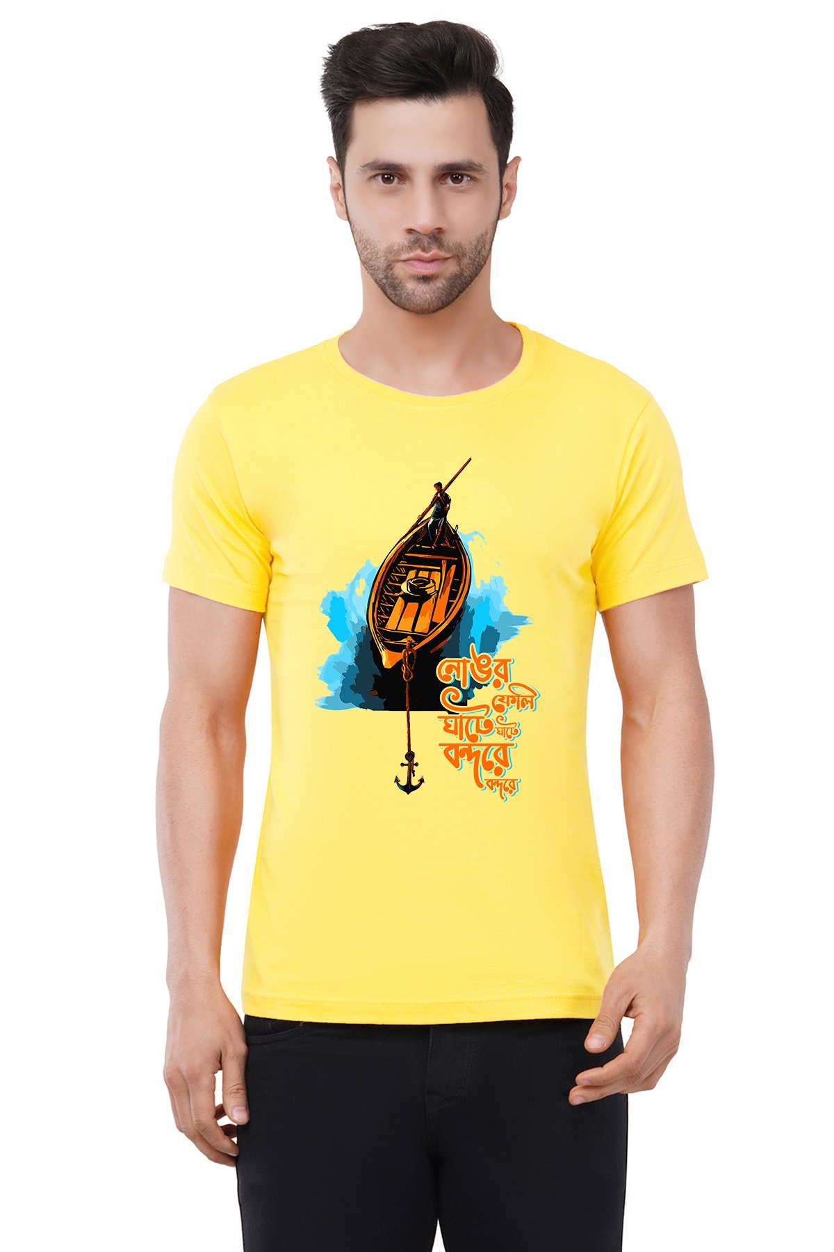 Caseria Men's Cotton Graphic Printed Half Sleeve T-Shirt - Anchorage At The Port Bengali