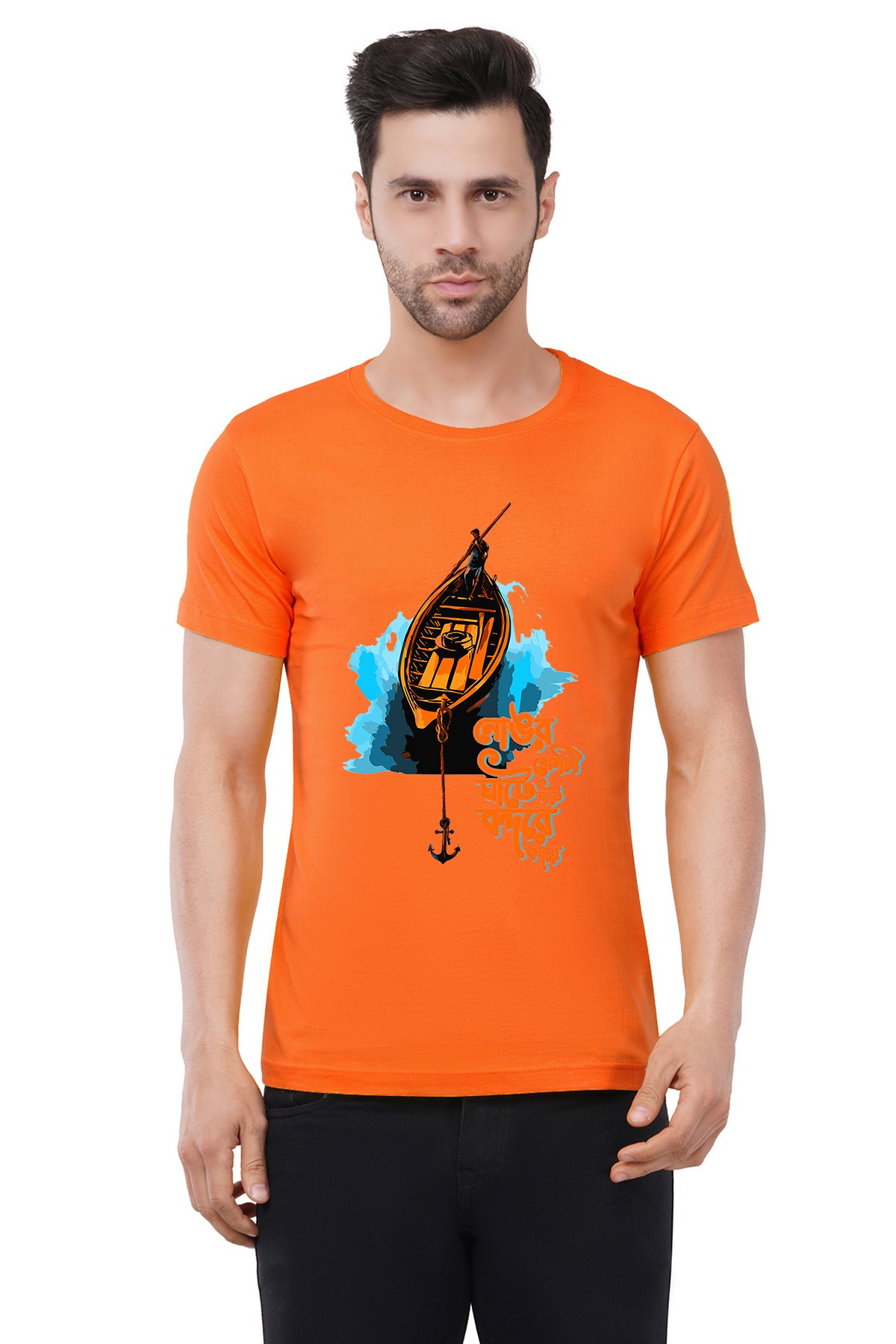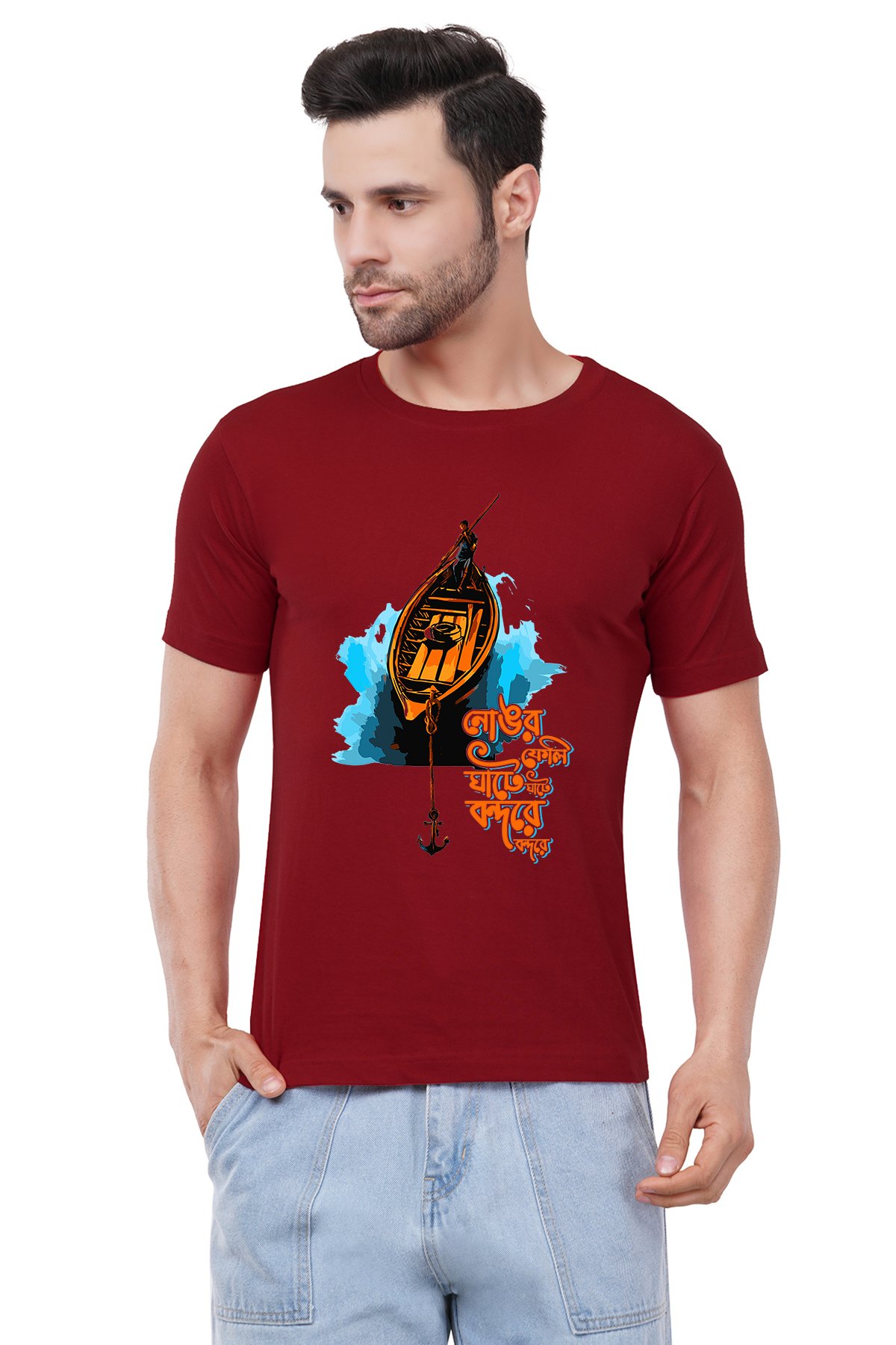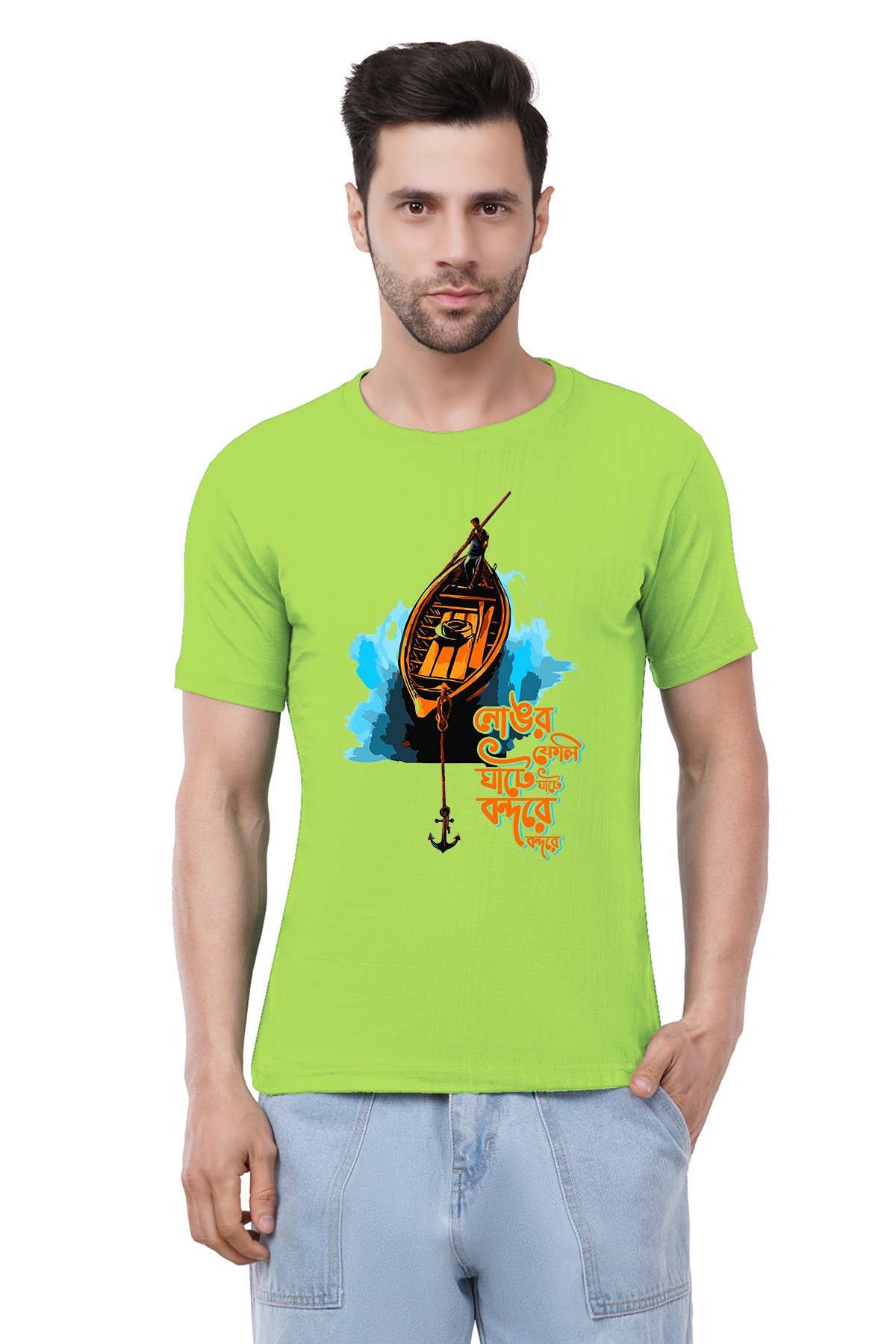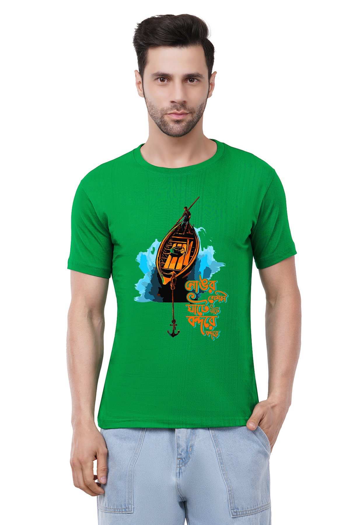 Caseria Men's Cotton Graphic Printed Half Sleeve T-Shirt - Anchorage At The Port Bengali