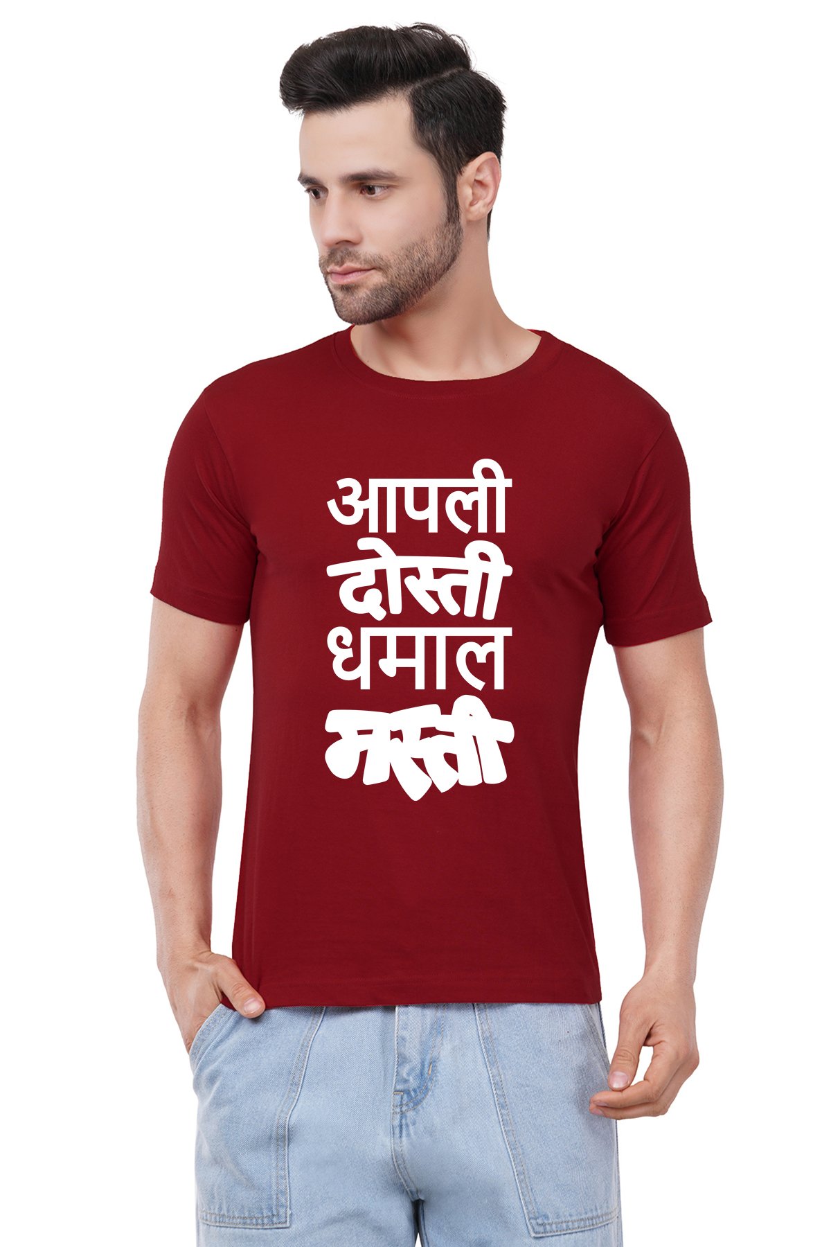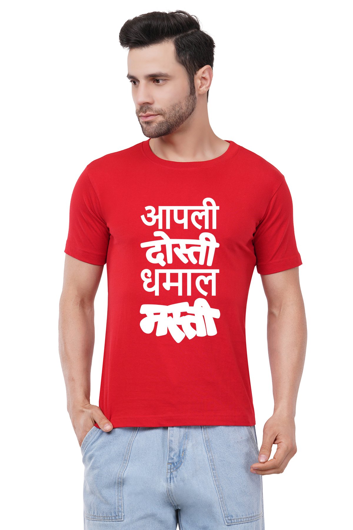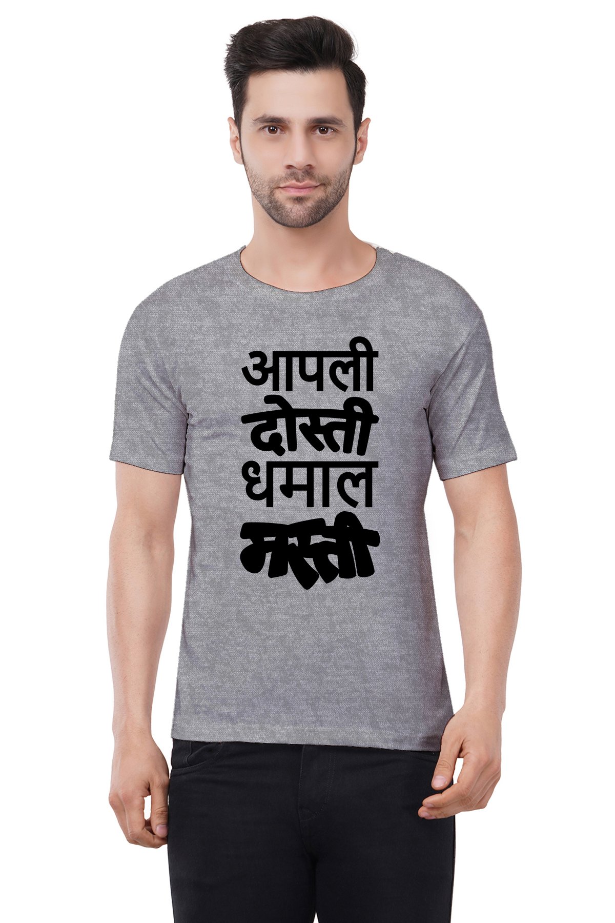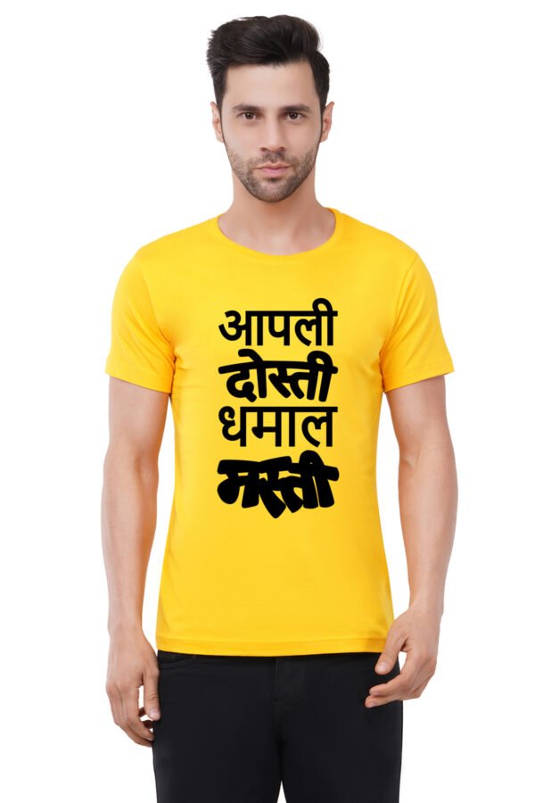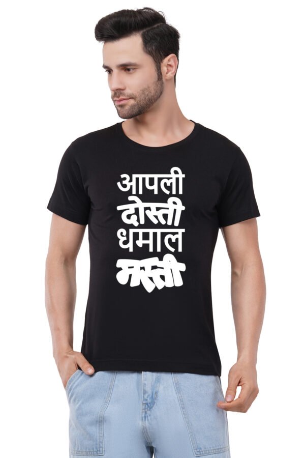 Caseria Men's Cotton Graphic Printed Half Sleeve T-Shirt - Apali Dosti Dhamal Masti
