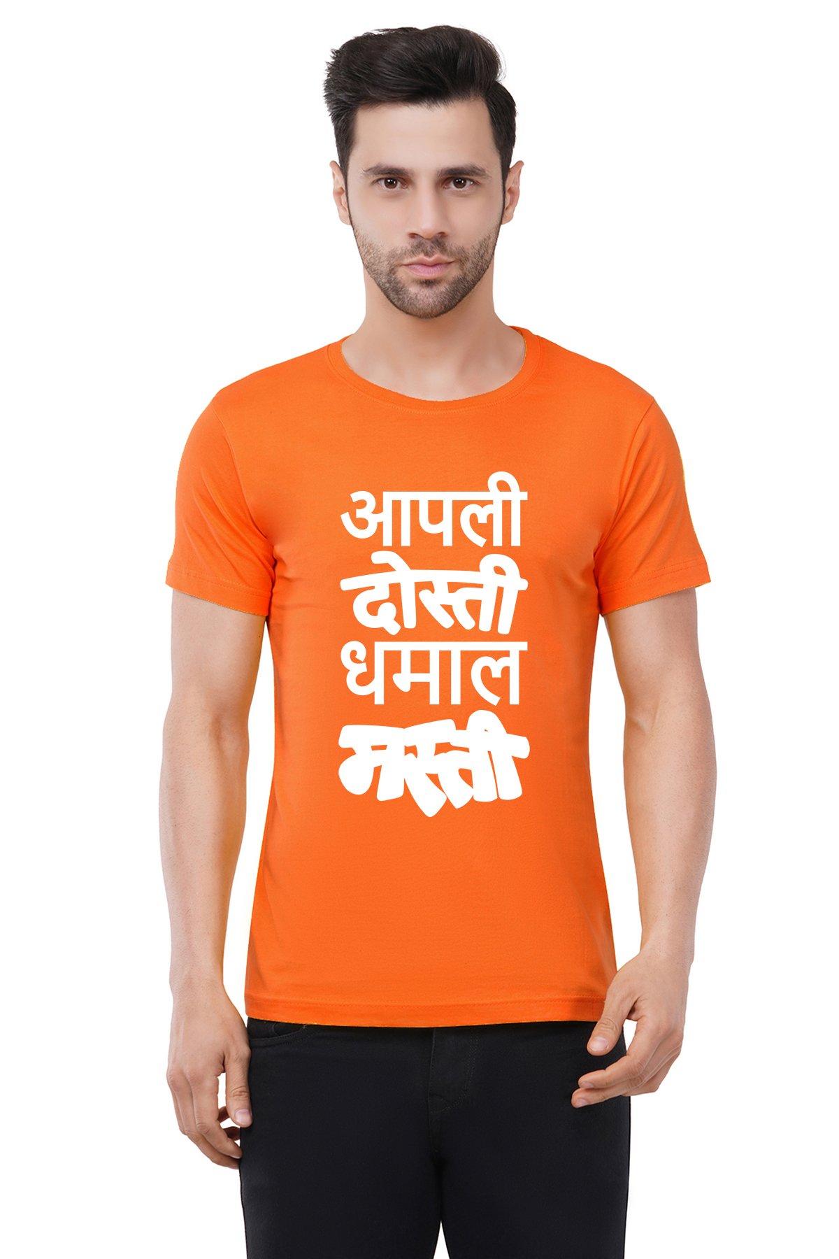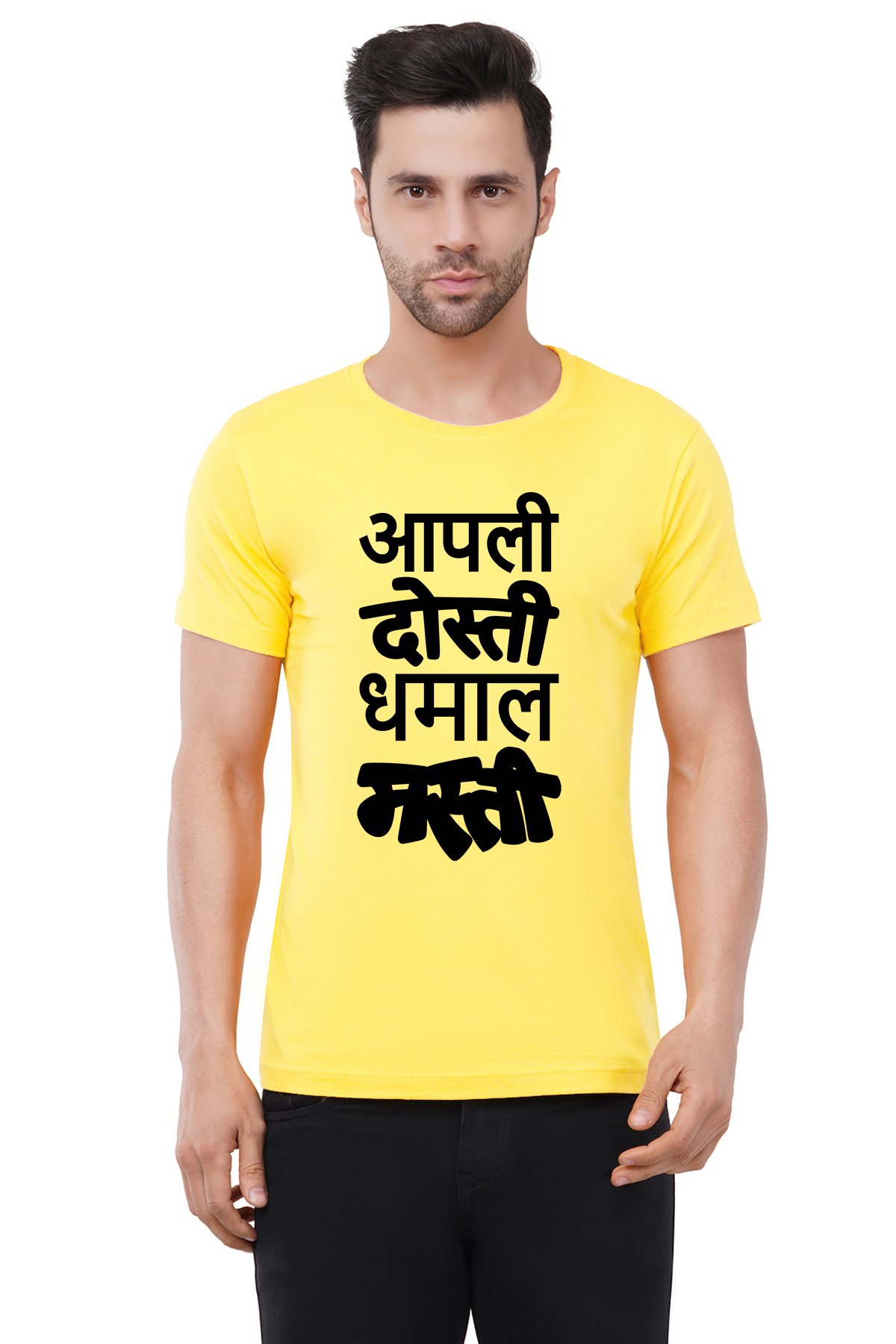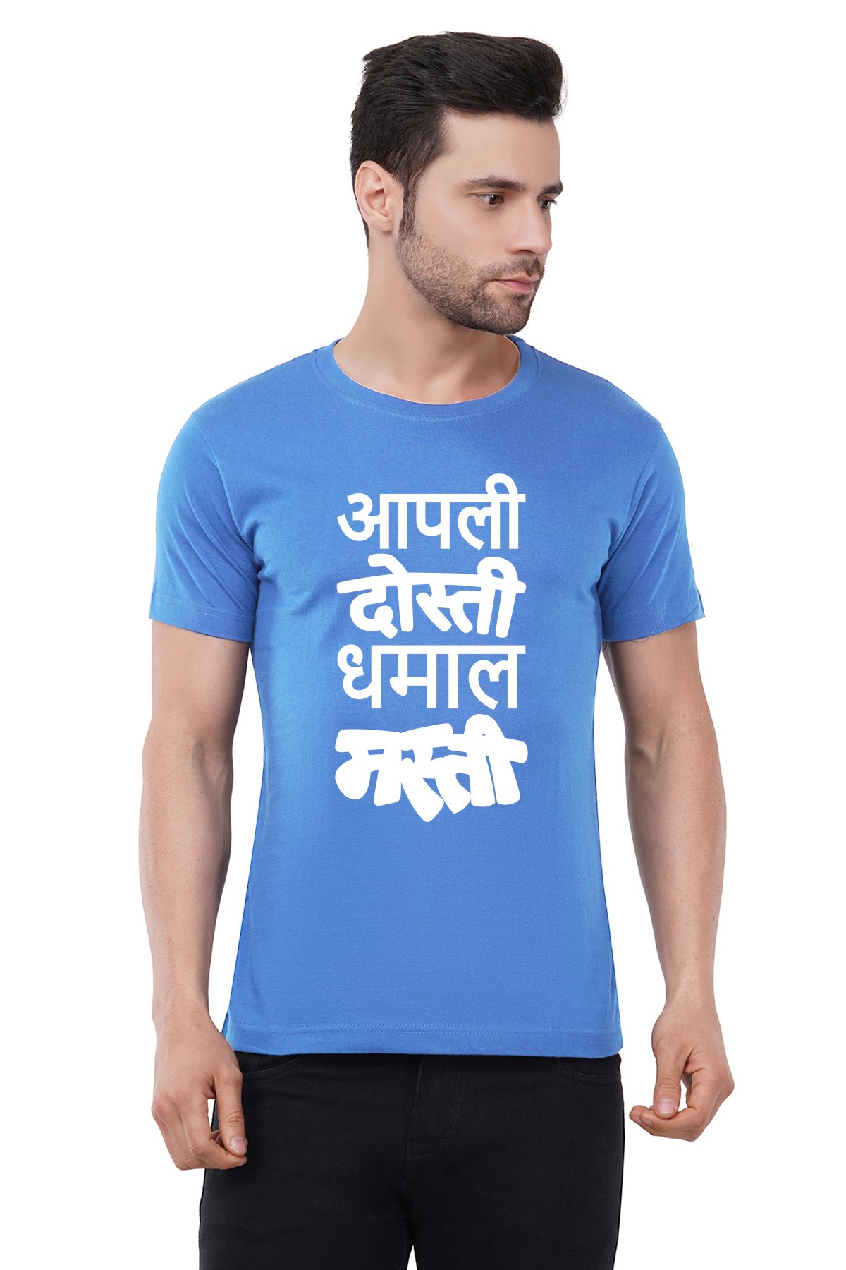 Caseria Men's Cotton Graphic Printed Half Sleeve T-Shirt - Apali Dosti Dhamal Masti