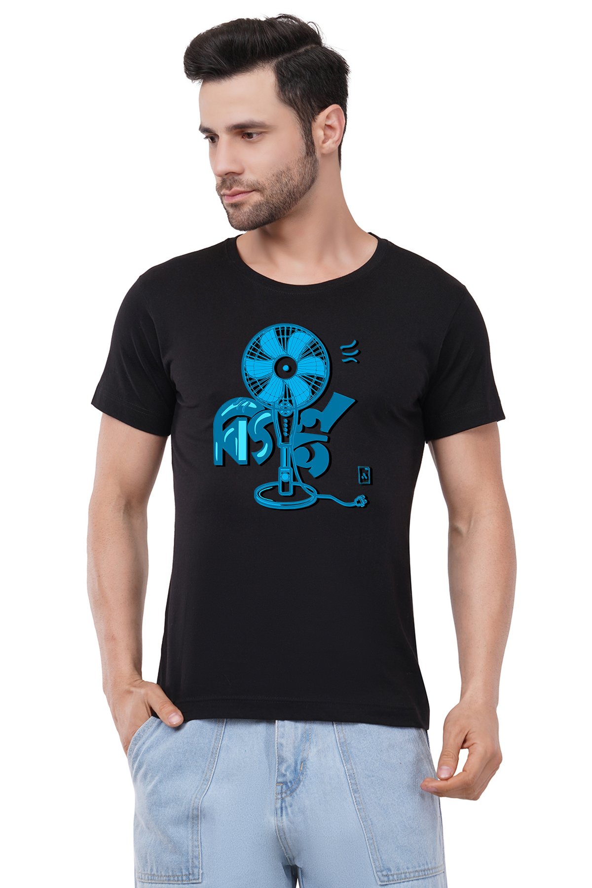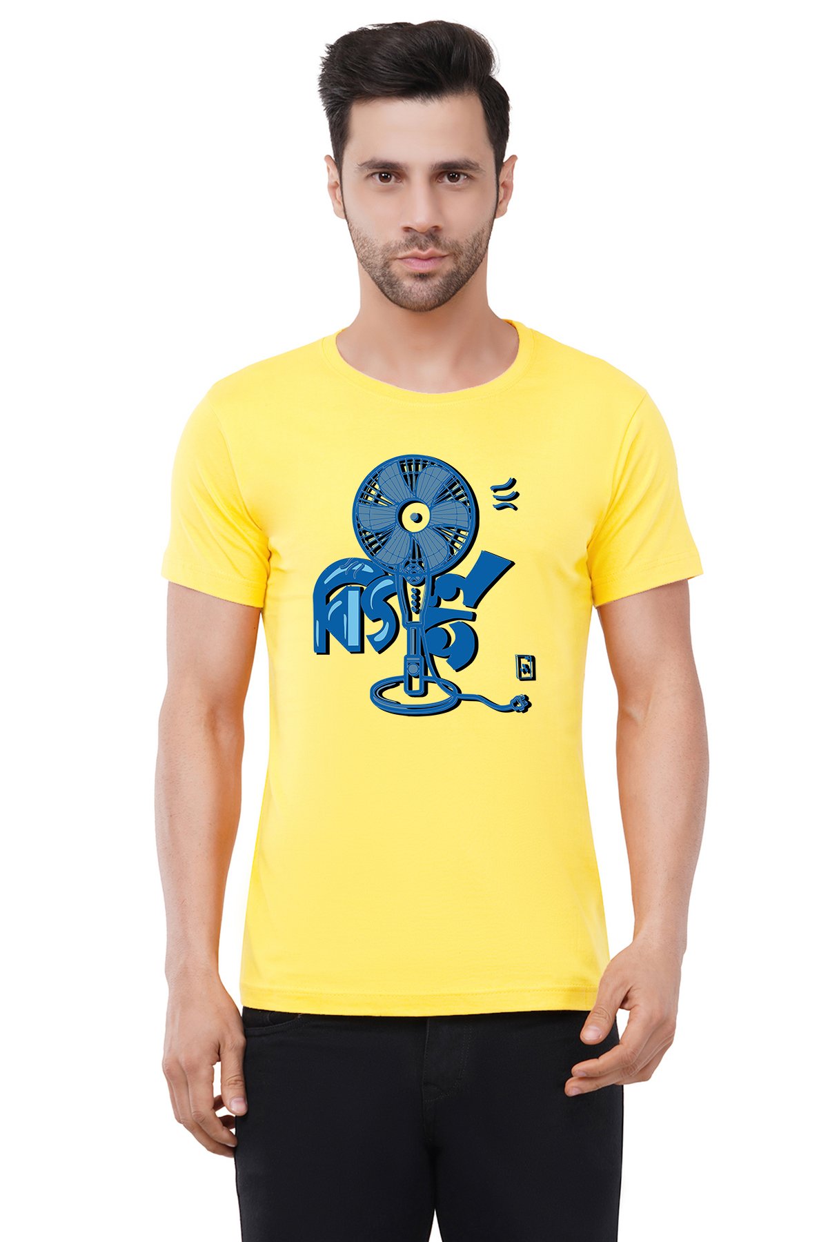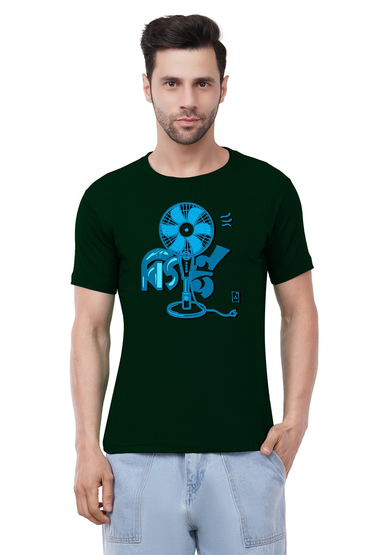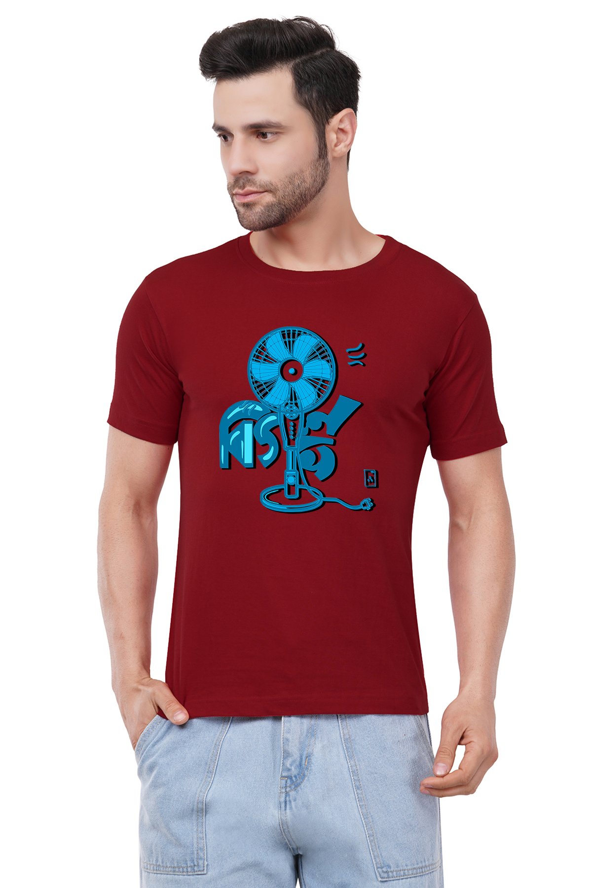Caseria Men's Cotton Graphic Printed Half Sleeve T-Shirt - Ash Fan Bengali