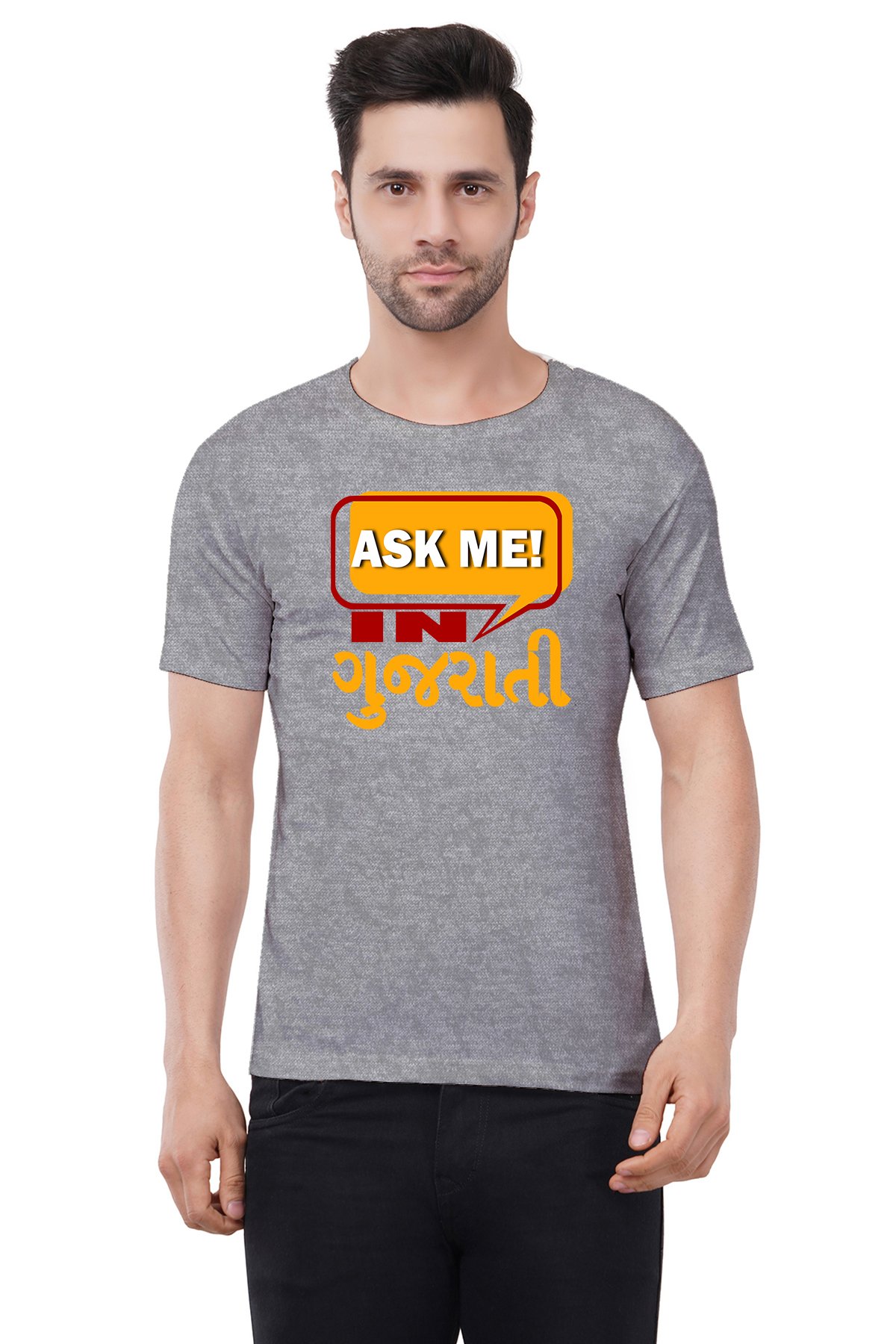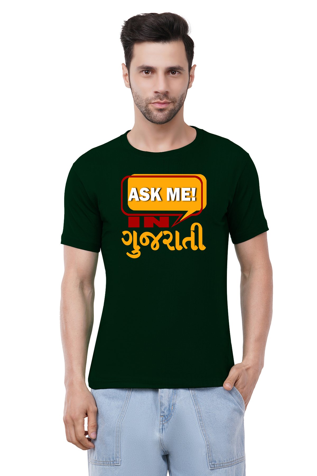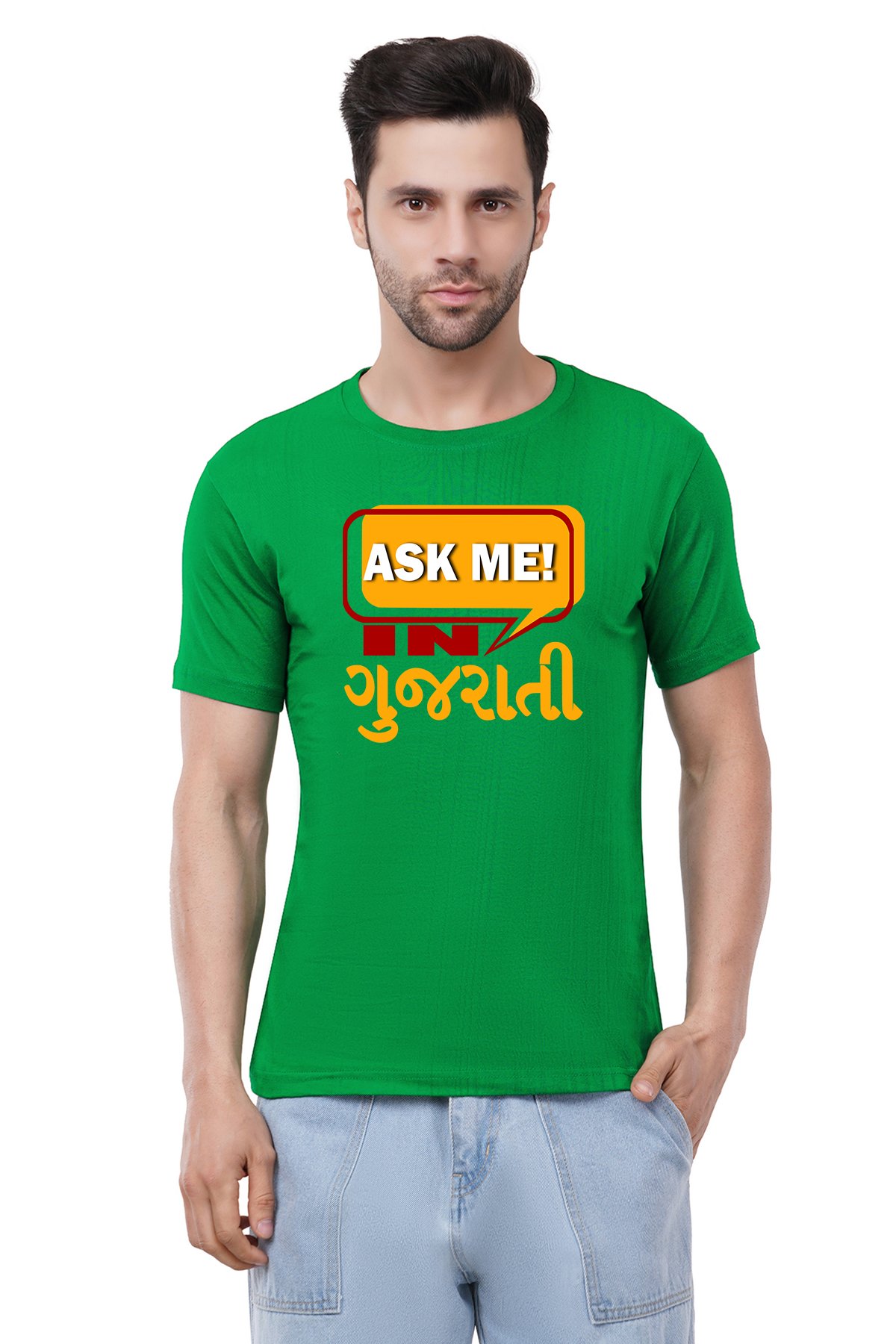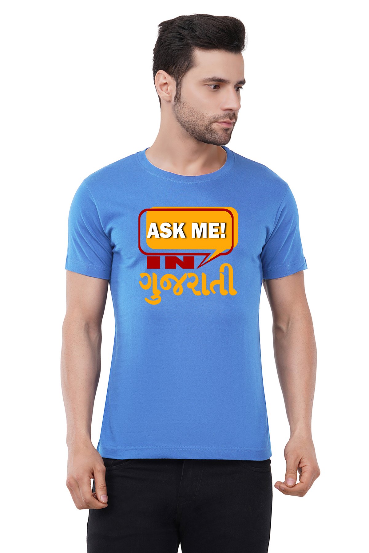 Caseria Men's Cotton Graphic Printed Half Sleeve T-Shirt - Ask Me In Gujarati