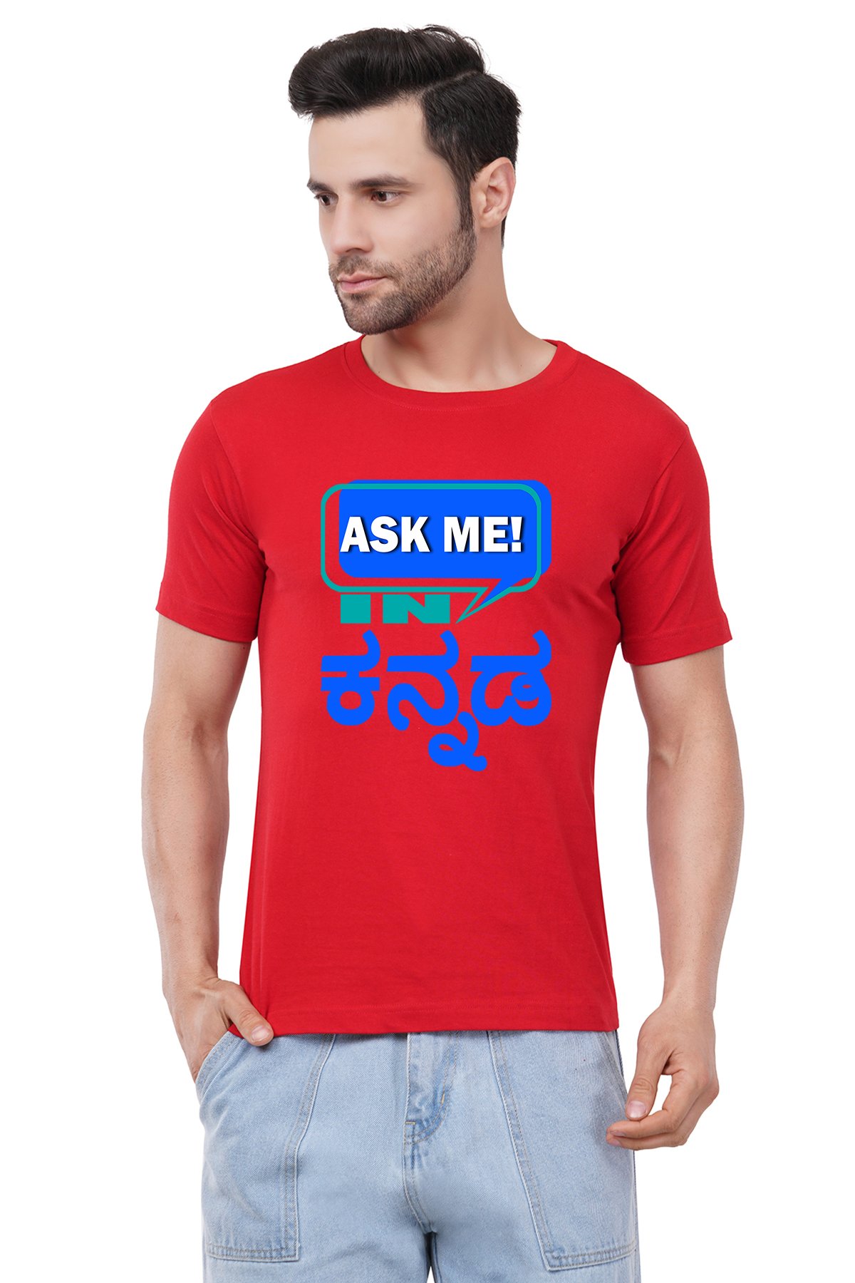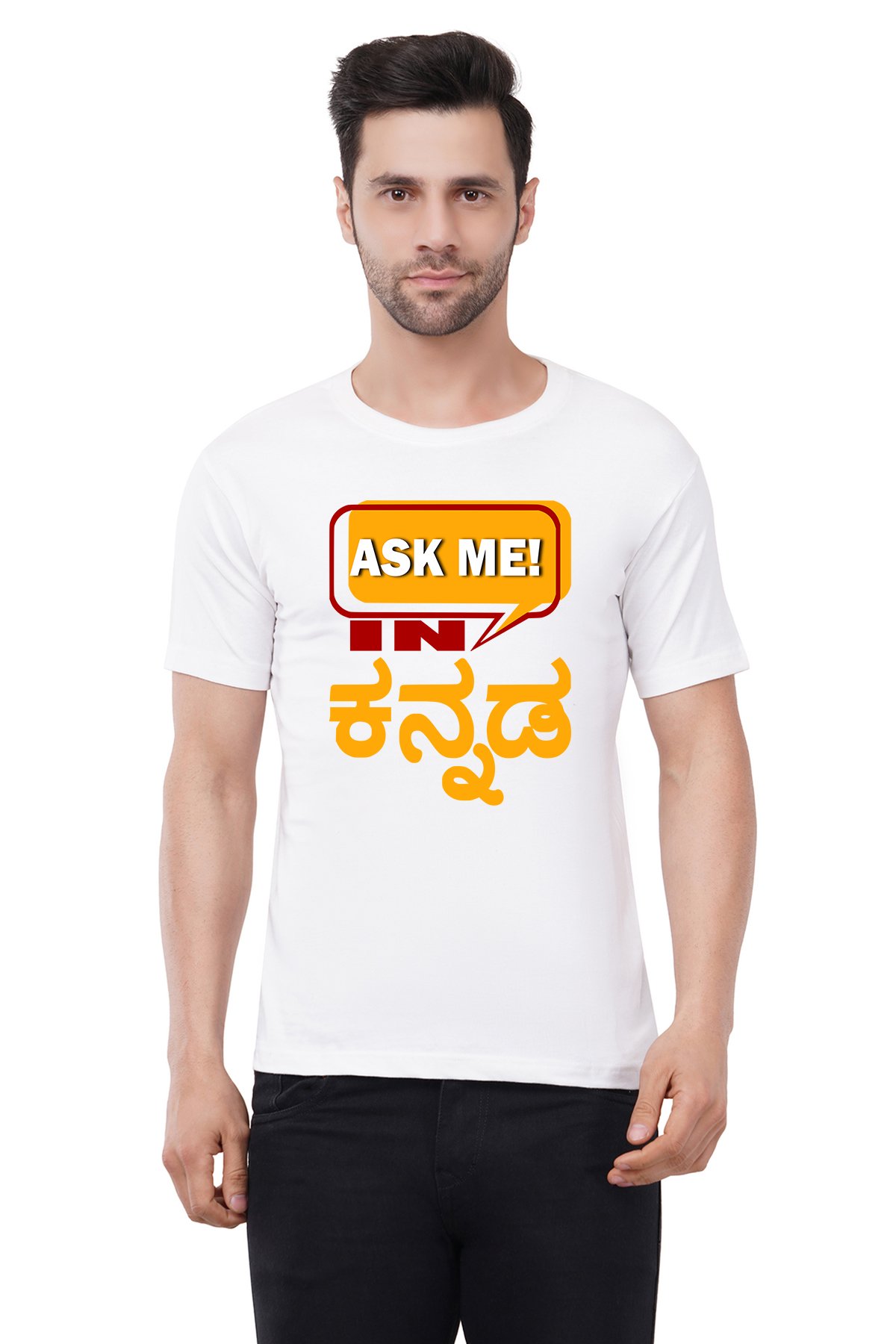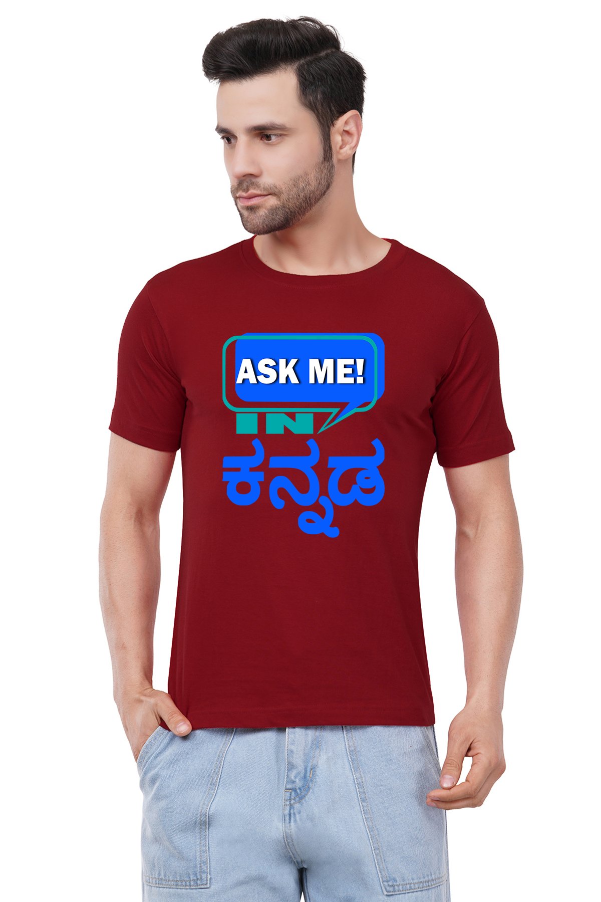 Caseria Men's Cotton Graphic Printed Half Sleeve T-Shirt - Ask Me In Kannada
