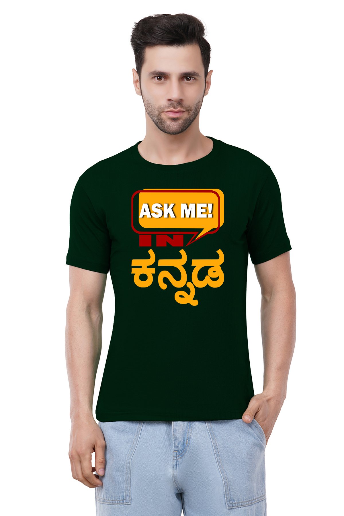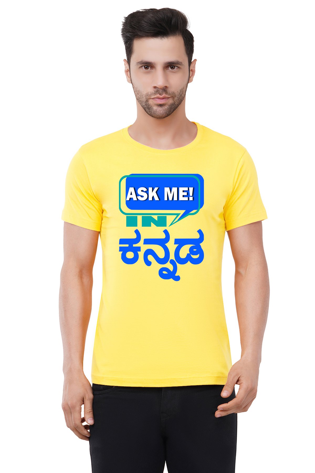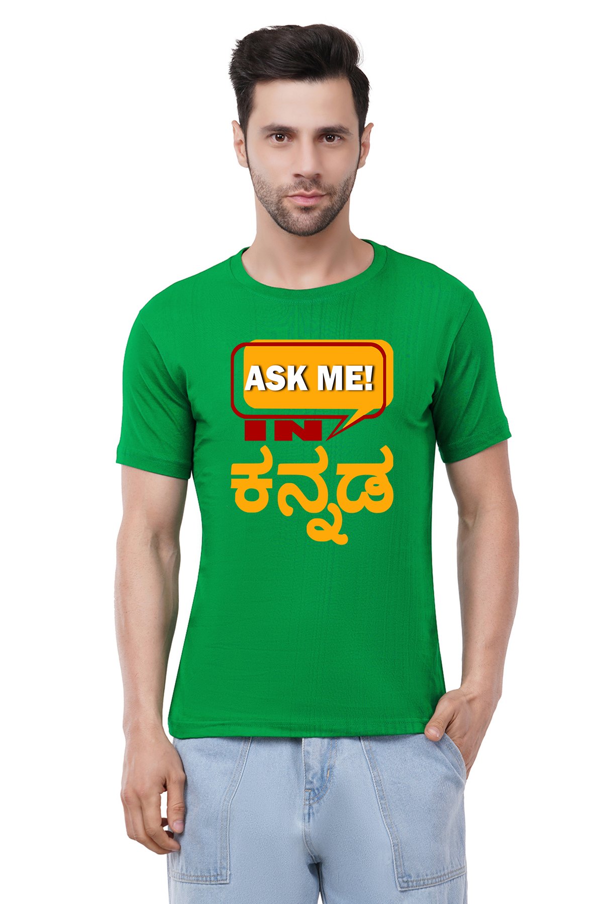 Caseria Men's Cotton Graphic Printed Half Sleeve T-Shirt - Ask Me In Kannada