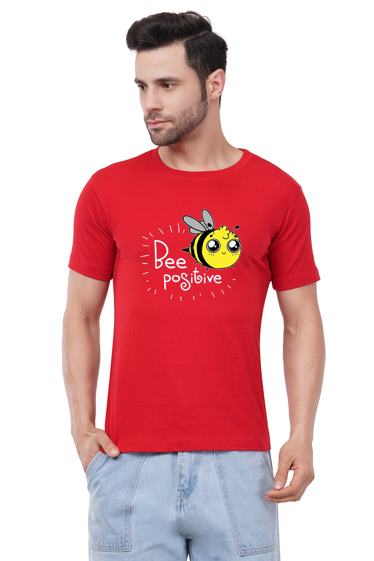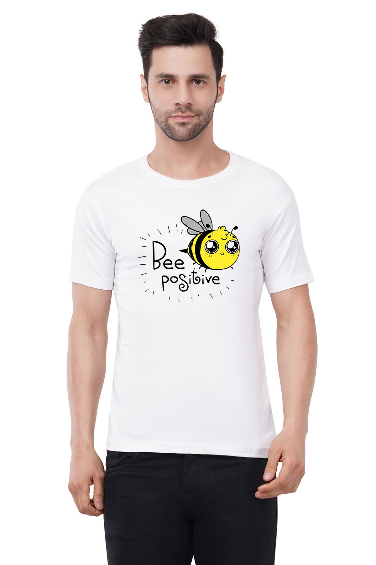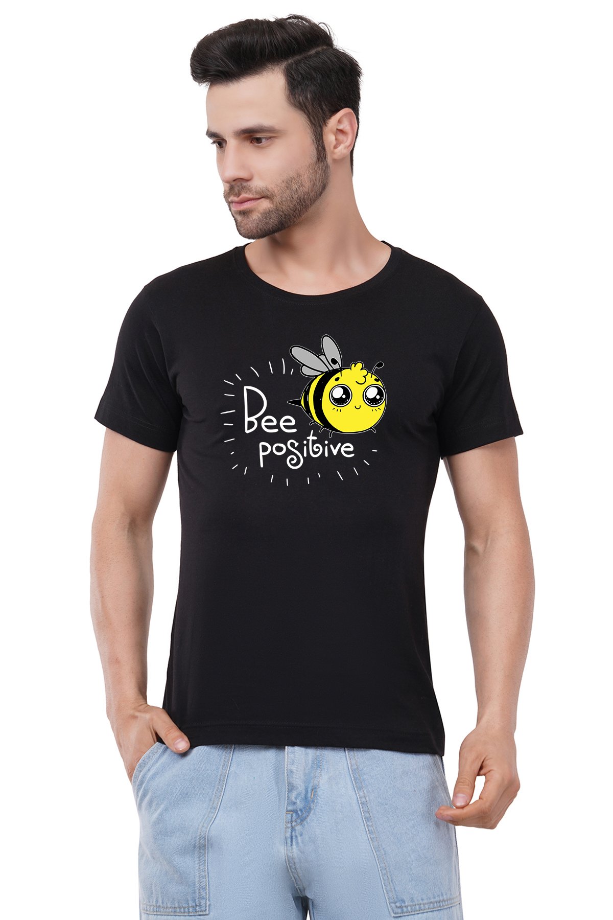 Caseria Men's Cotton Graphic Printed Half Sleeve T-Shirt - Bee Positive