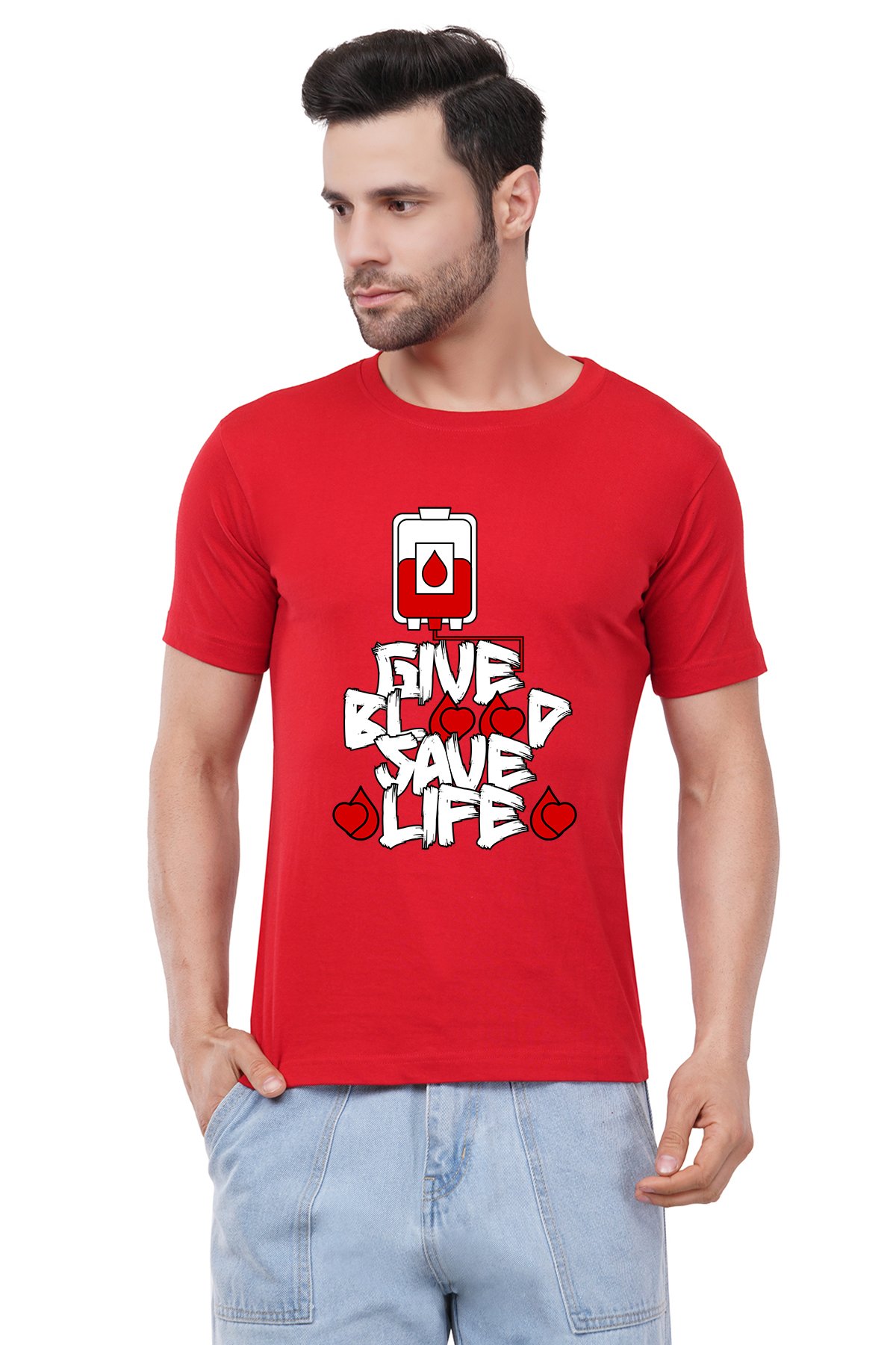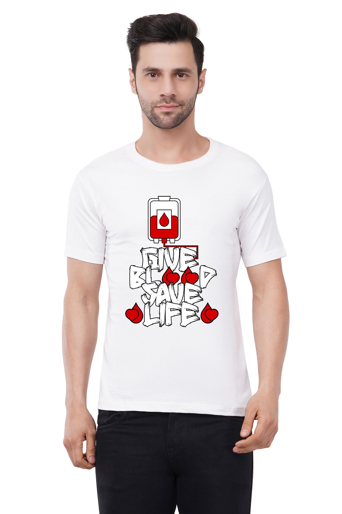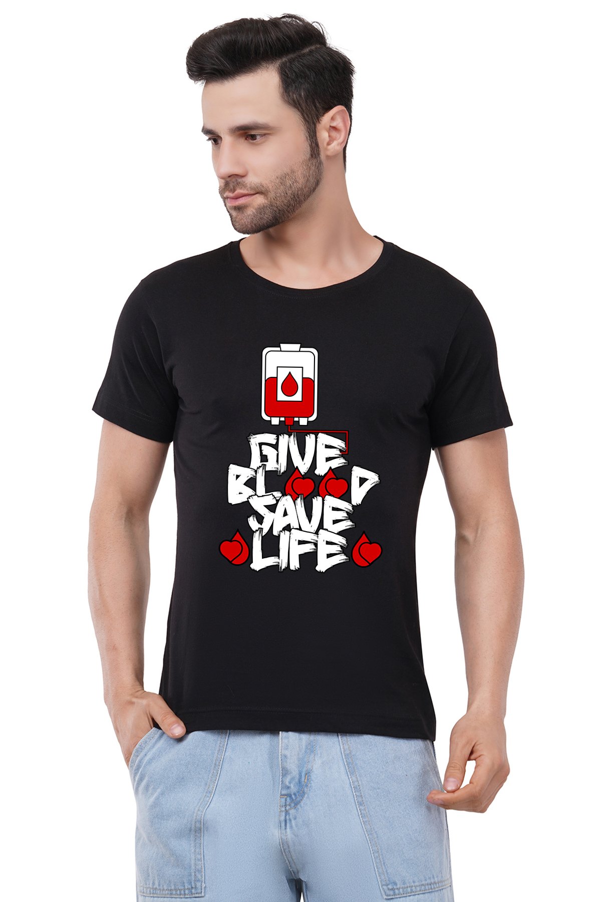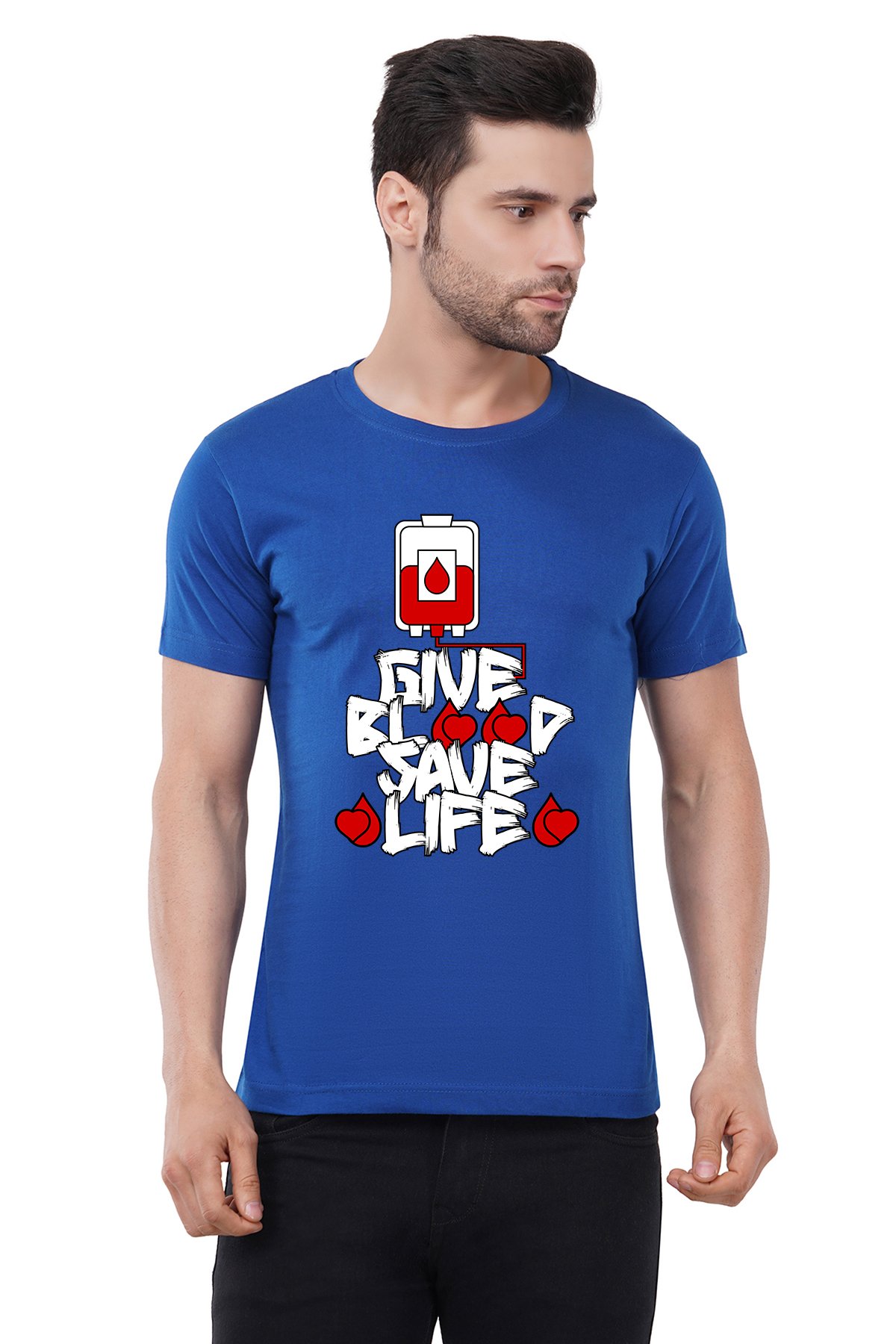 Caseria Men's Cotton Graphic Printed Half Sleeve T-Shirt - Blood Save Life