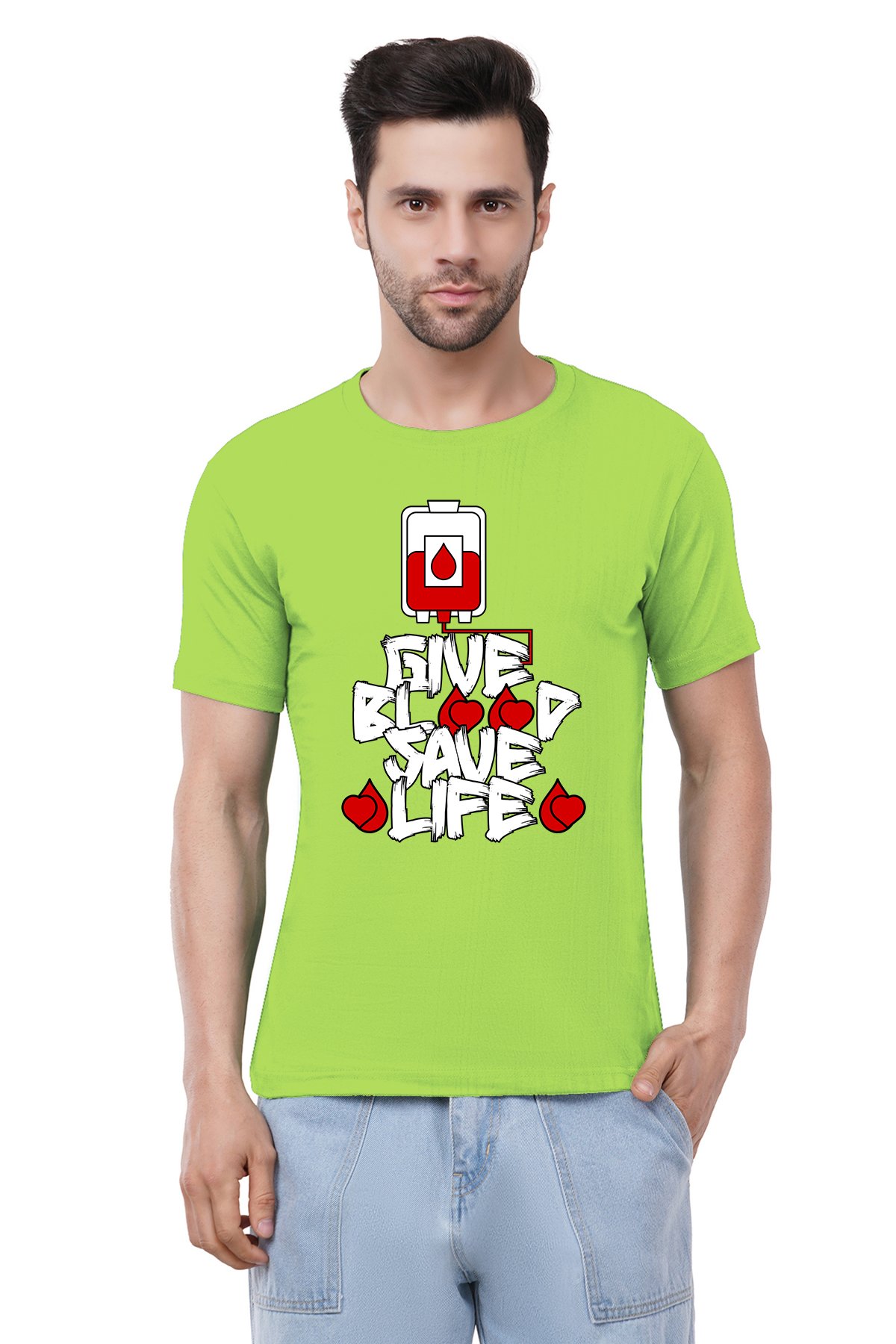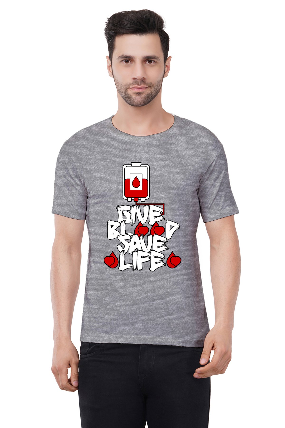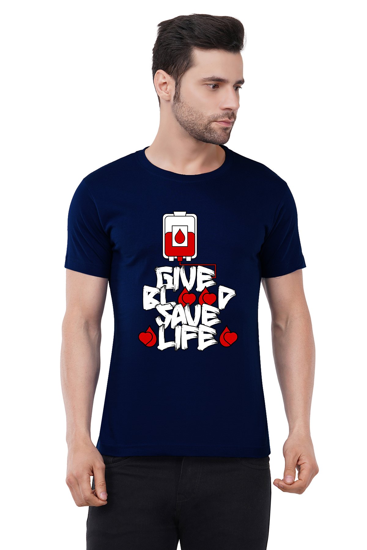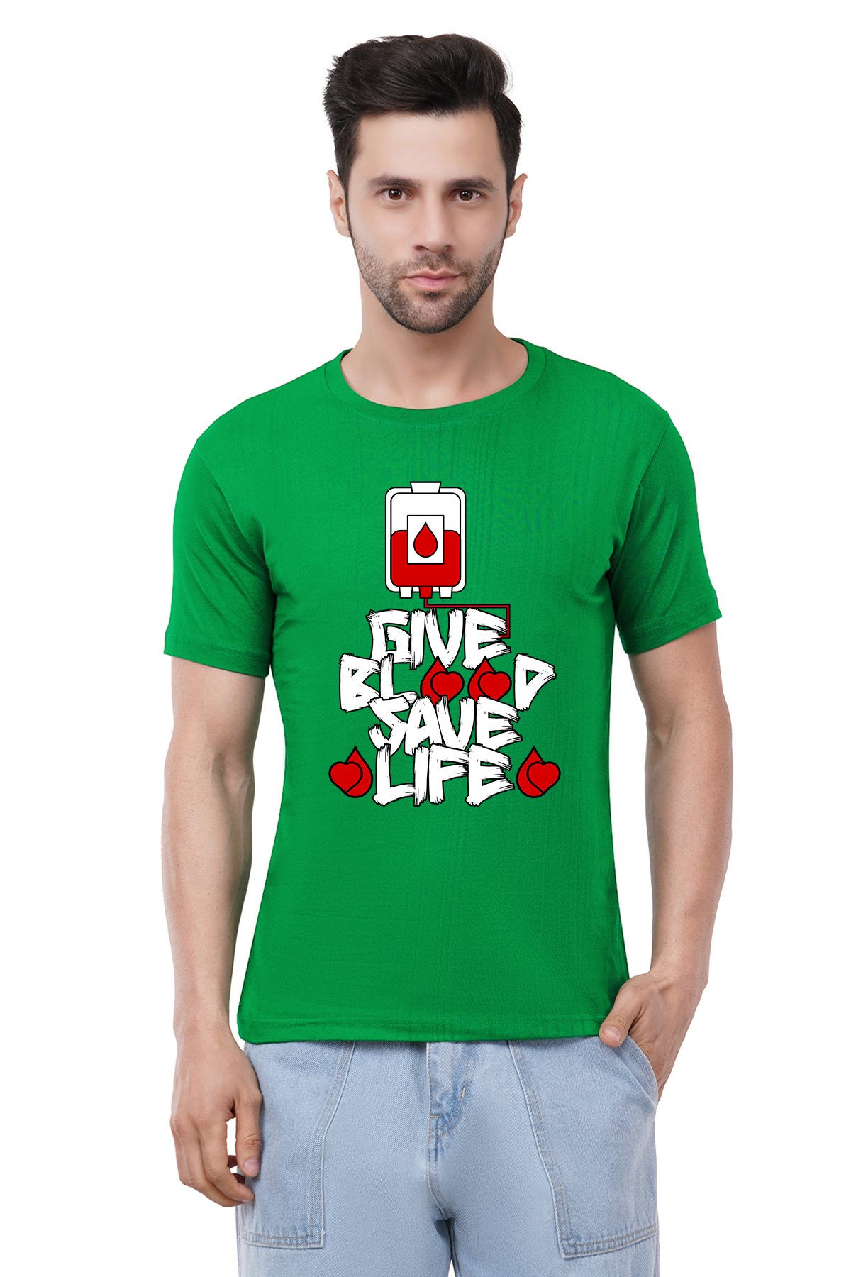 Caseria Men's Cotton Graphic Printed Half Sleeve T-Shirt - Blood Save Life