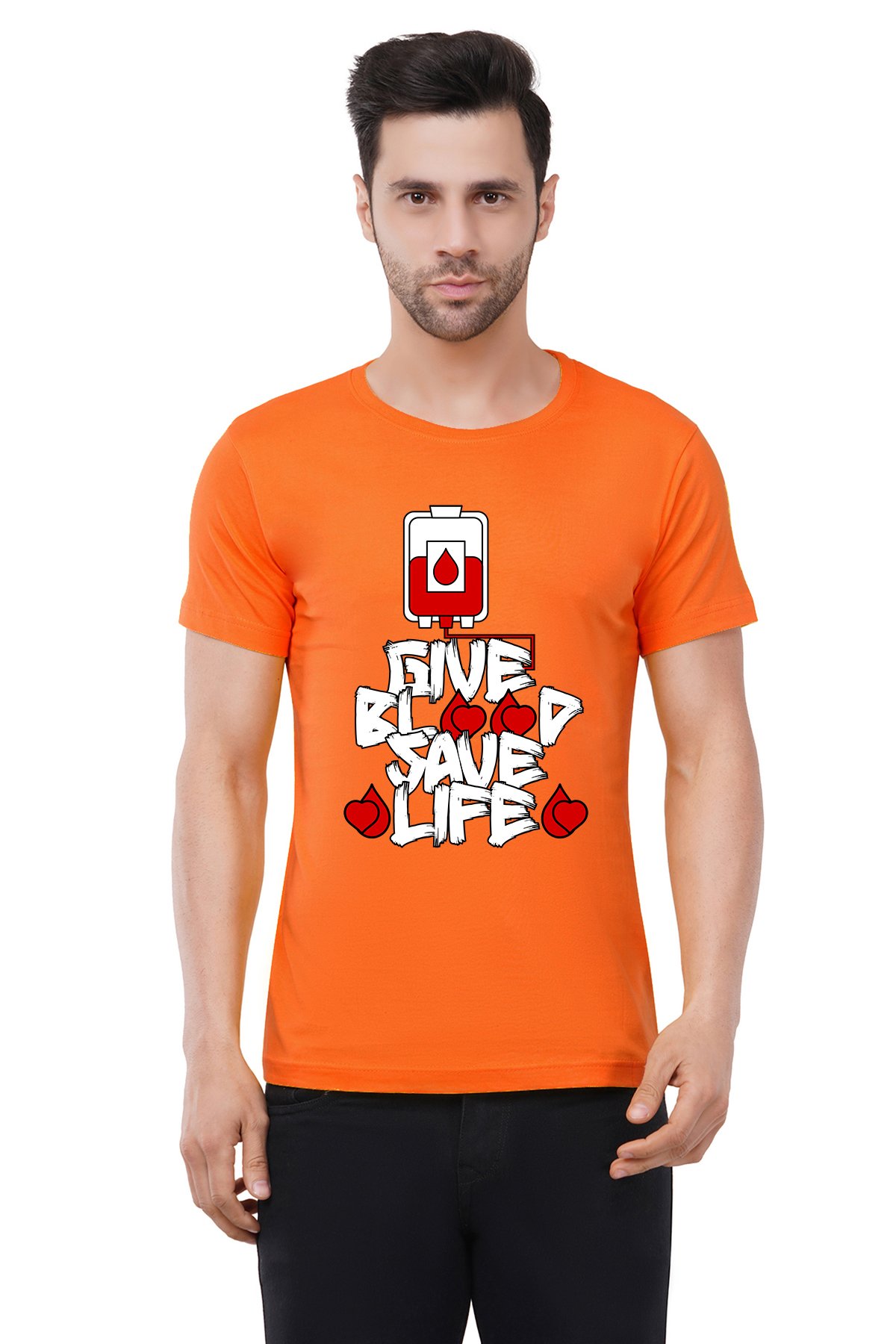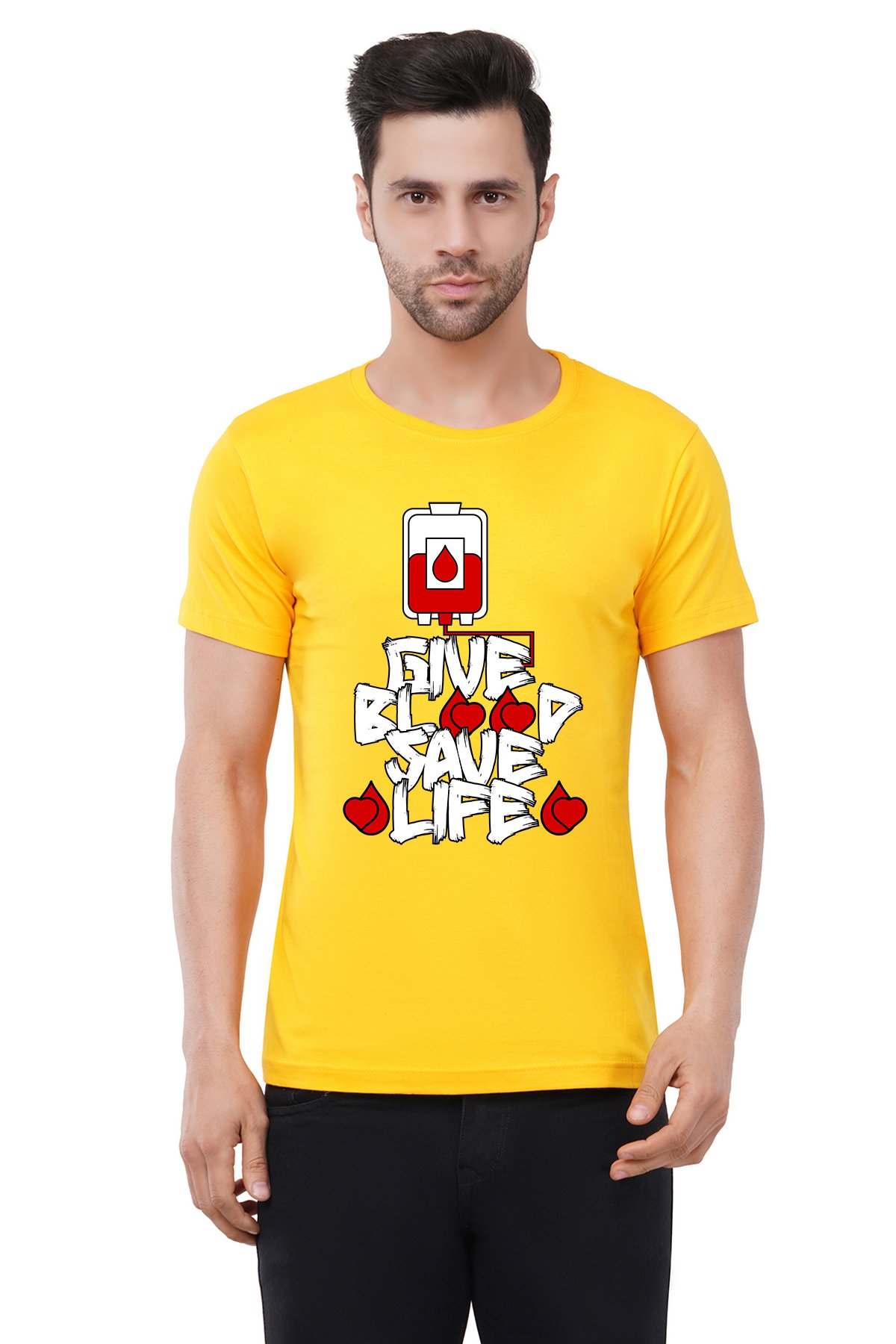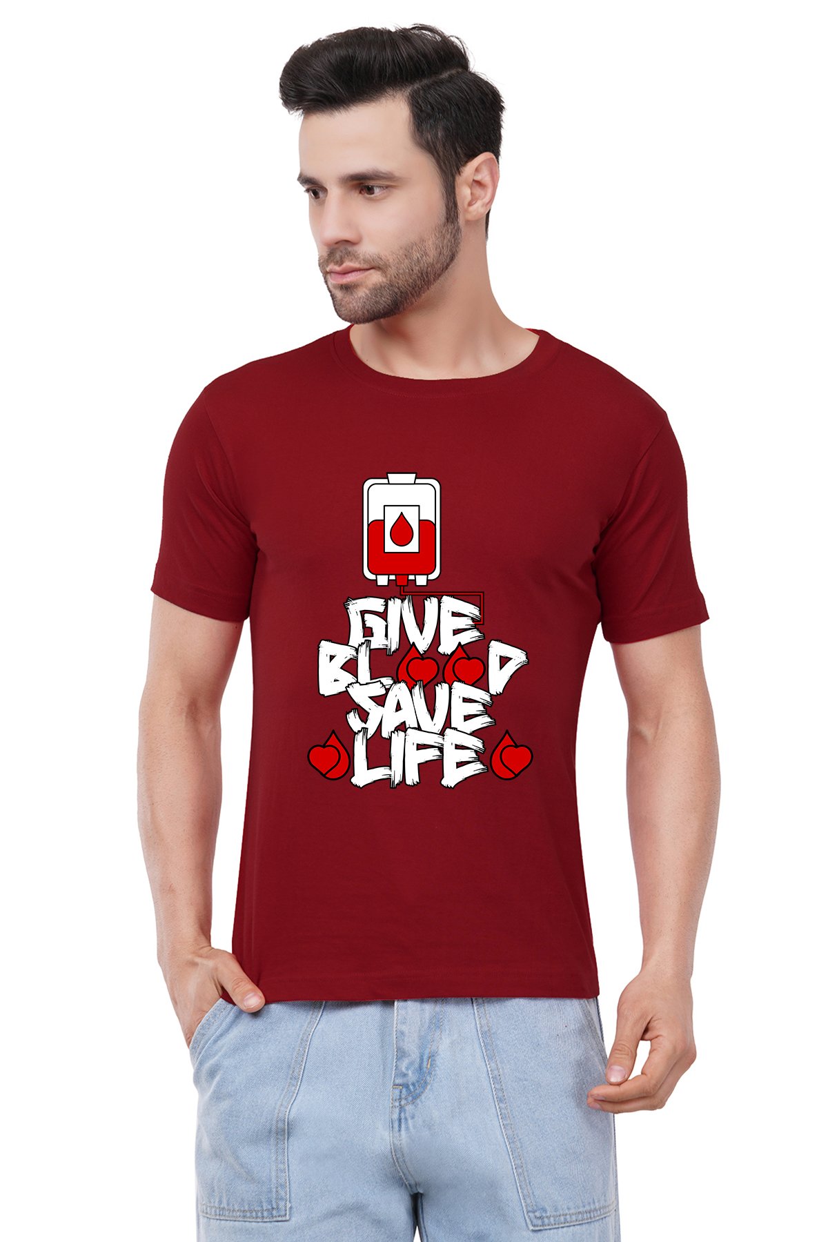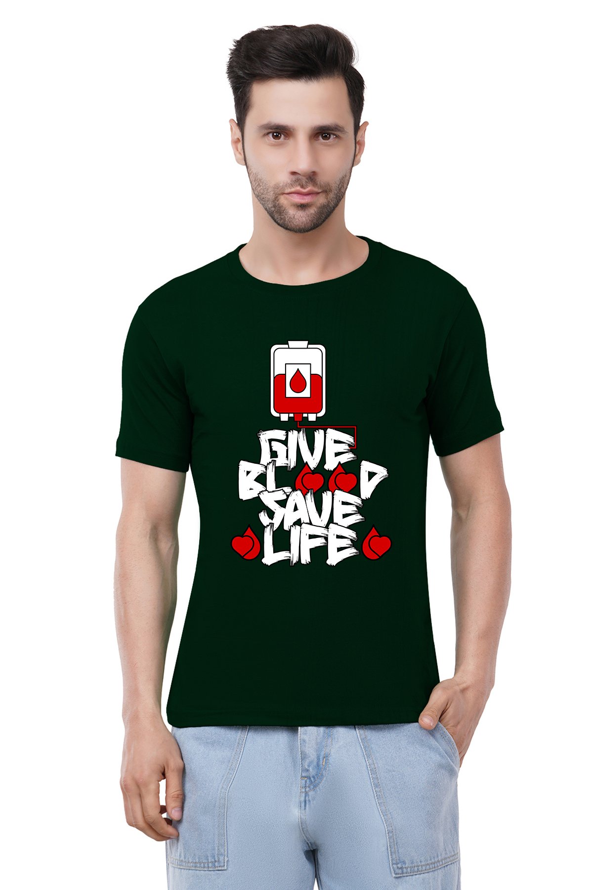 Caseria Men's Cotton Graphic Printed Half Sleeve T-Shirt - Blood Save Life