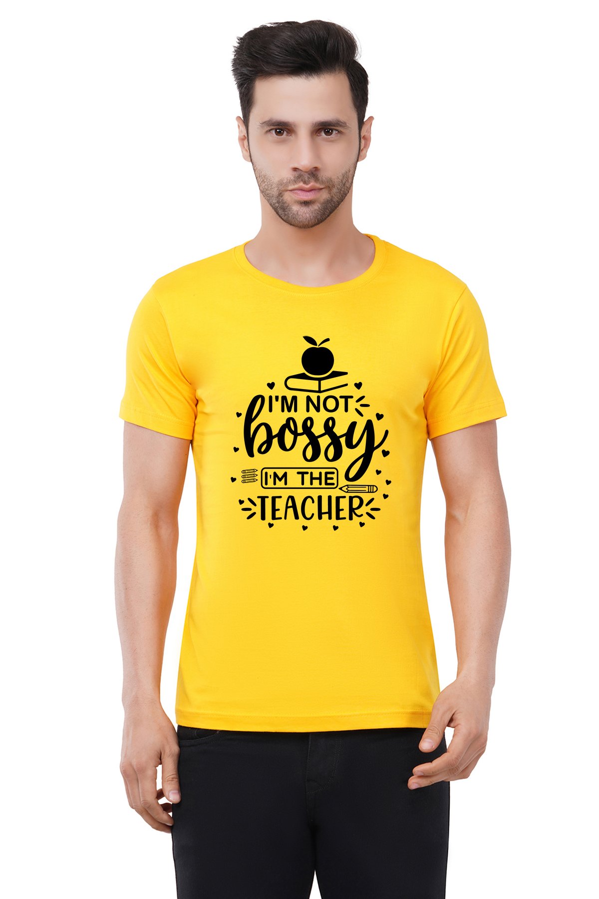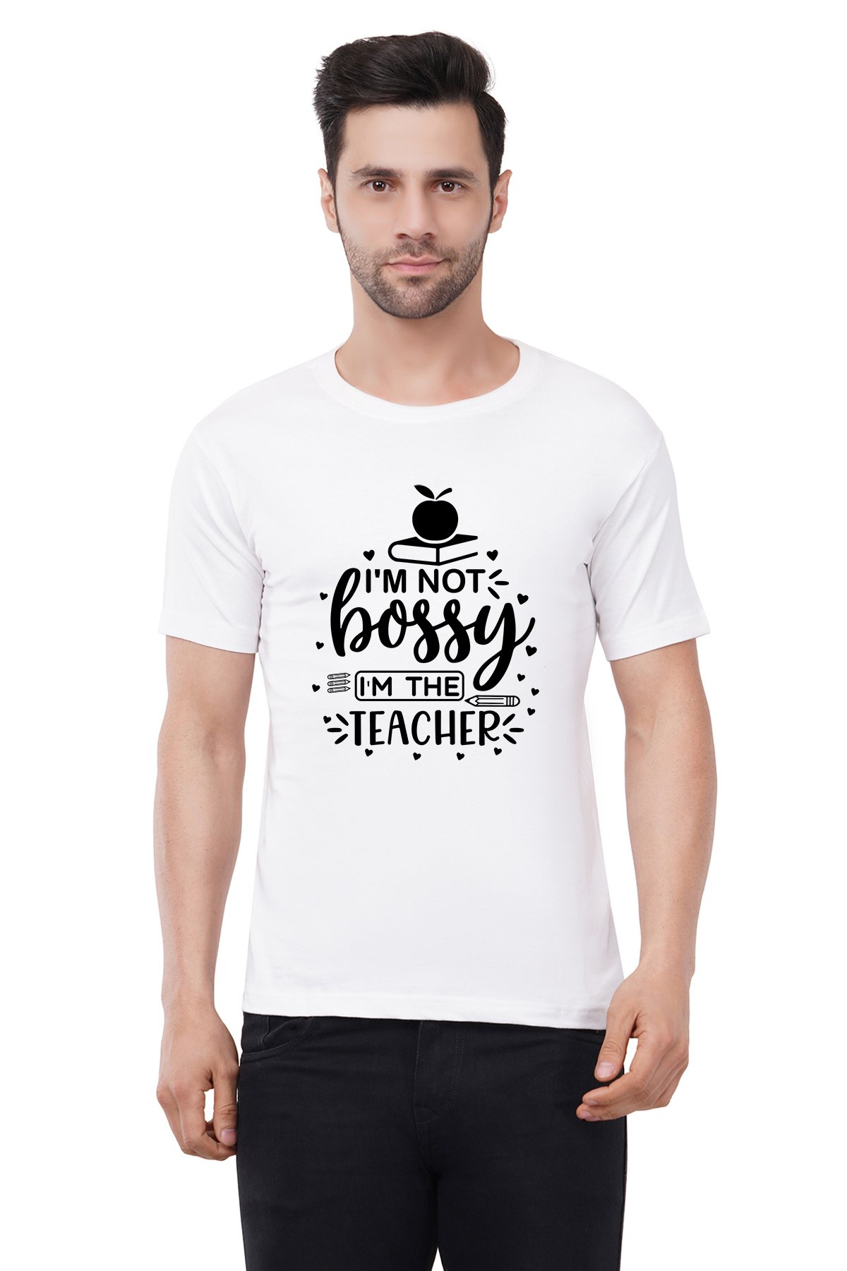 Caseria Men's Cotton Graphic Printed Half Sleeve T-Shirt - Bossy Teacher
