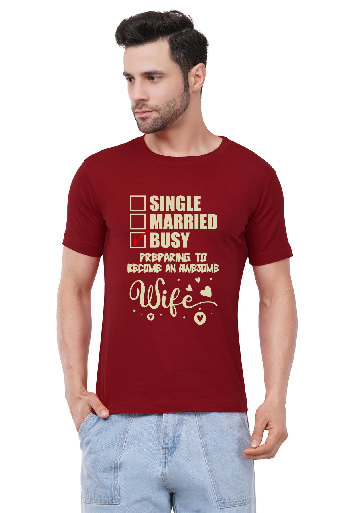 Caseria Men's Cotton Graphic Printed Half Sleeve T-Shirt - Busy Wife