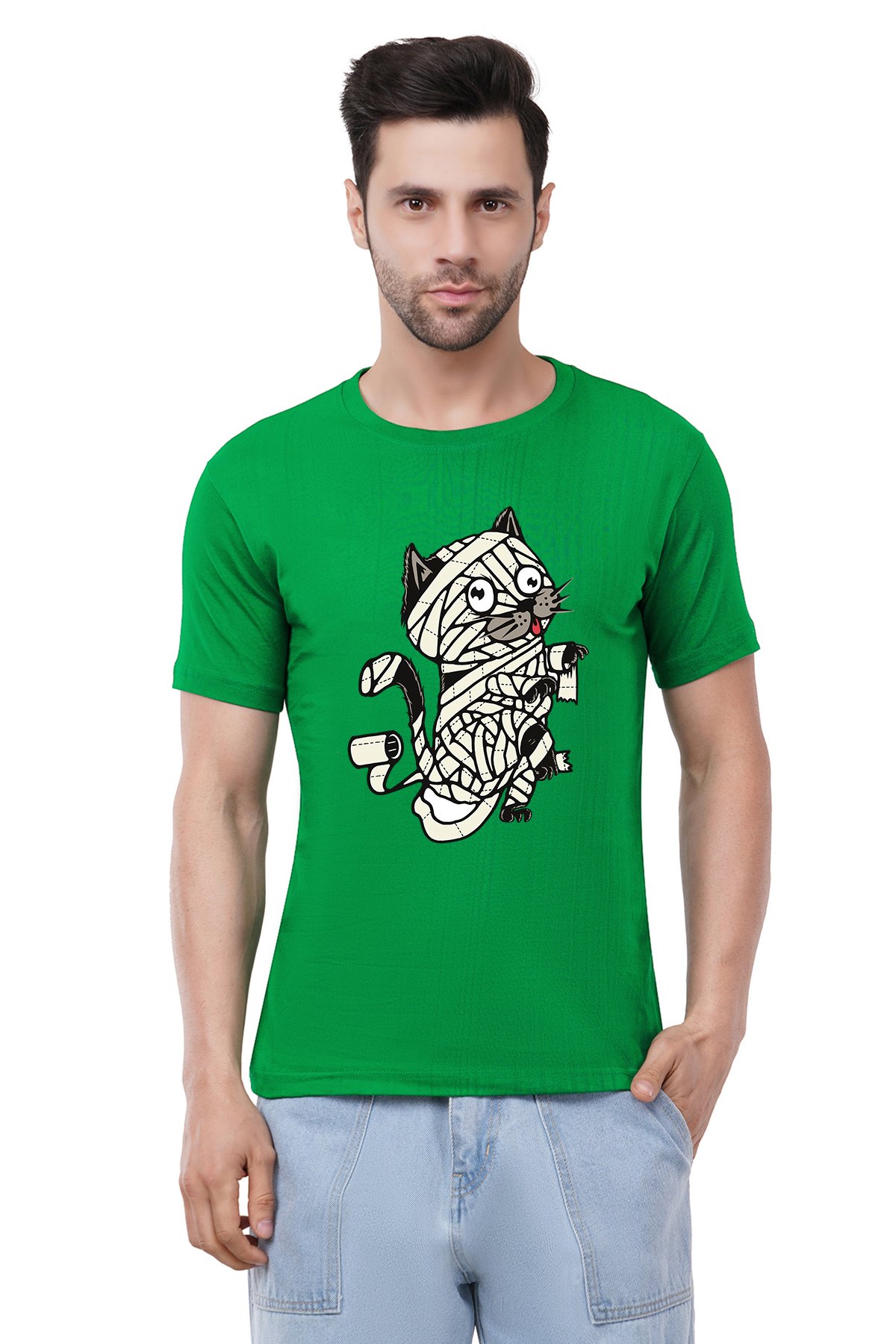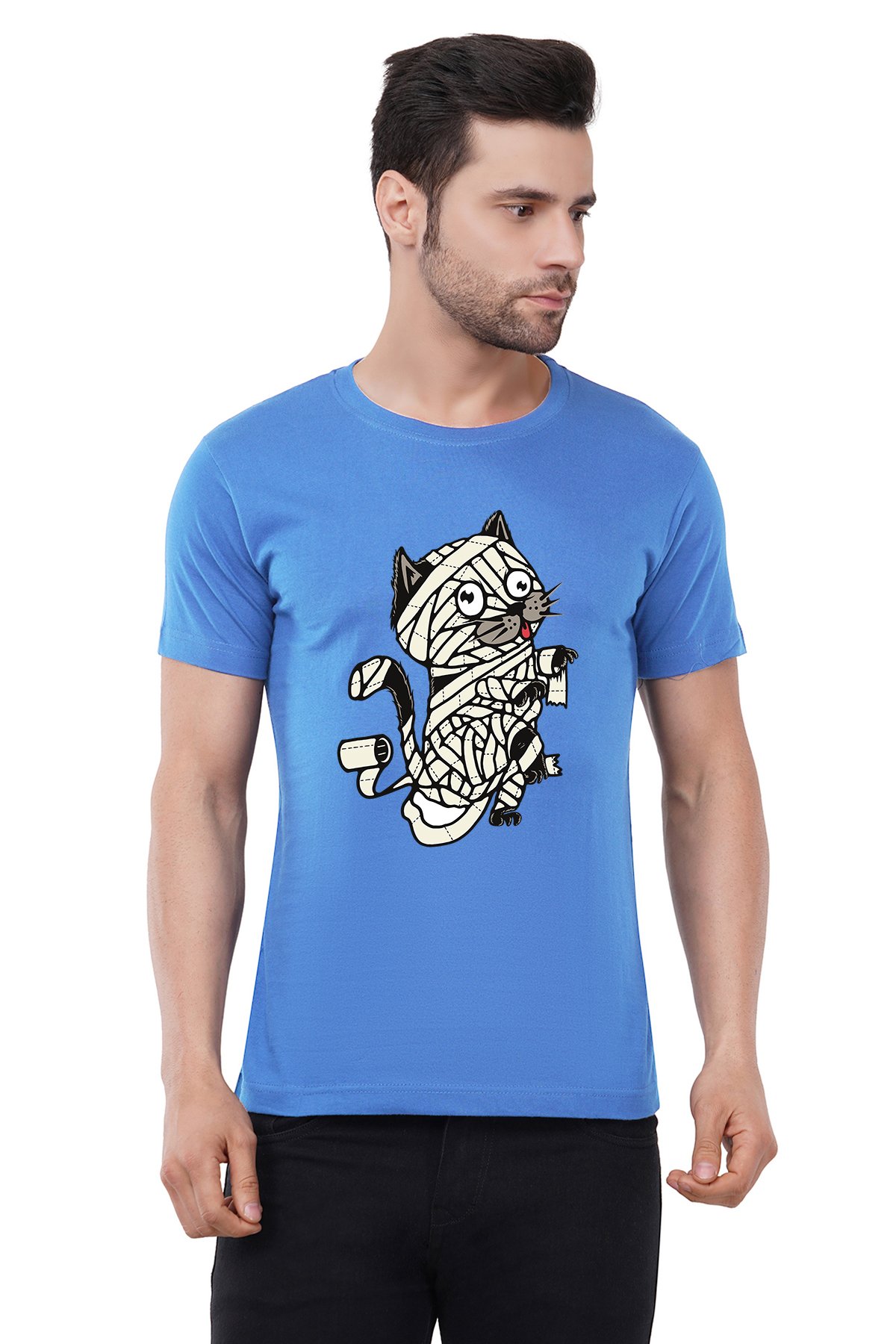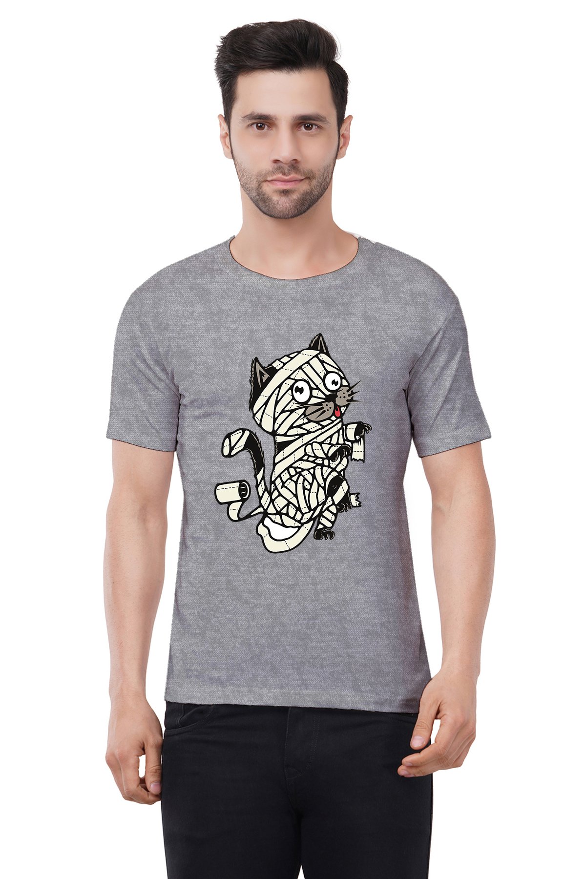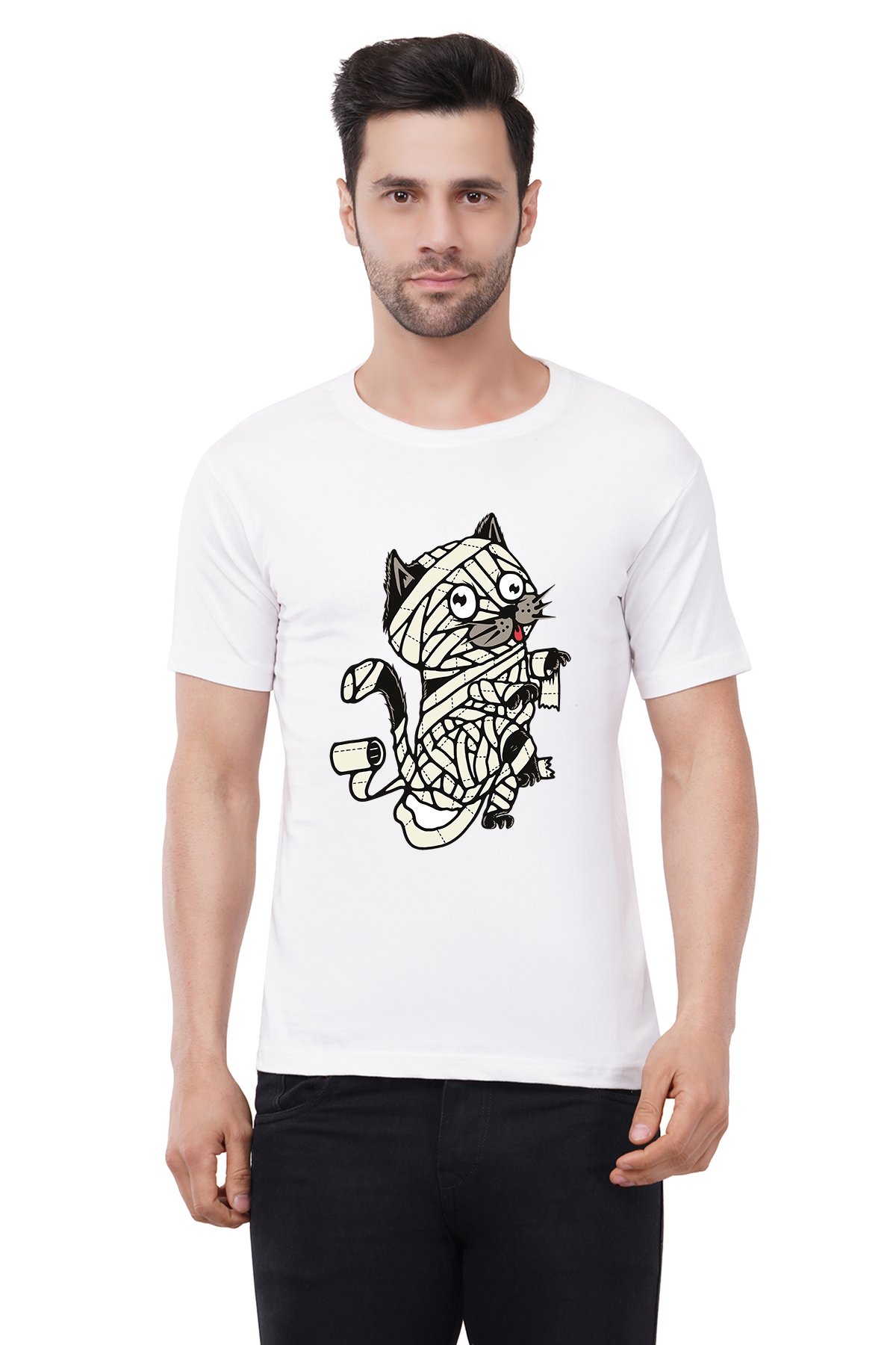Caseria Men's Cotton Graphic Printed Half Sleeve T-Shirt - Cat Mummy