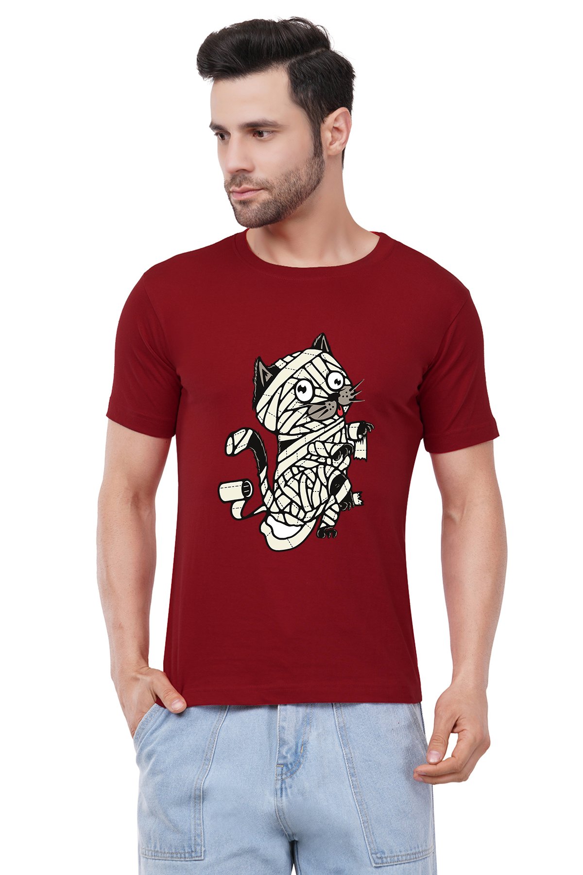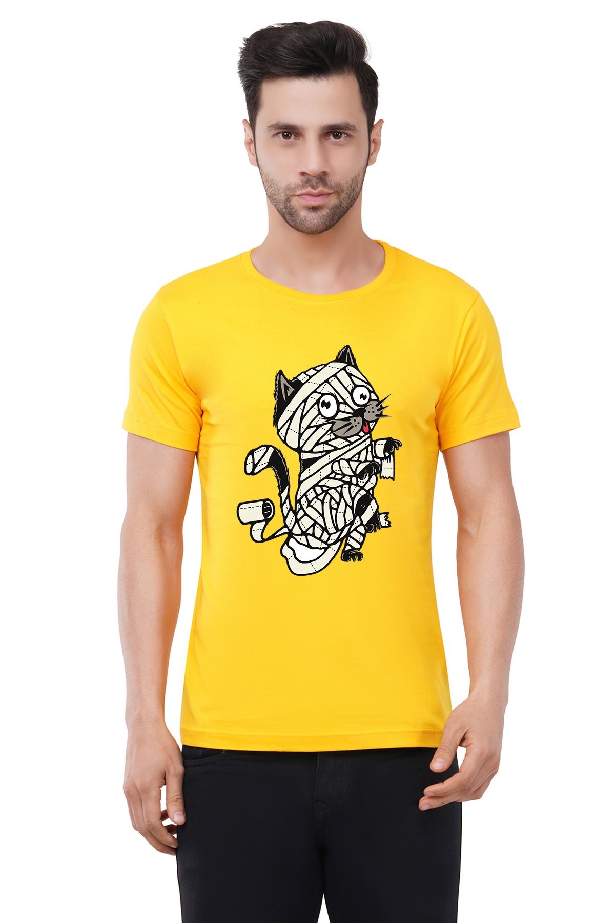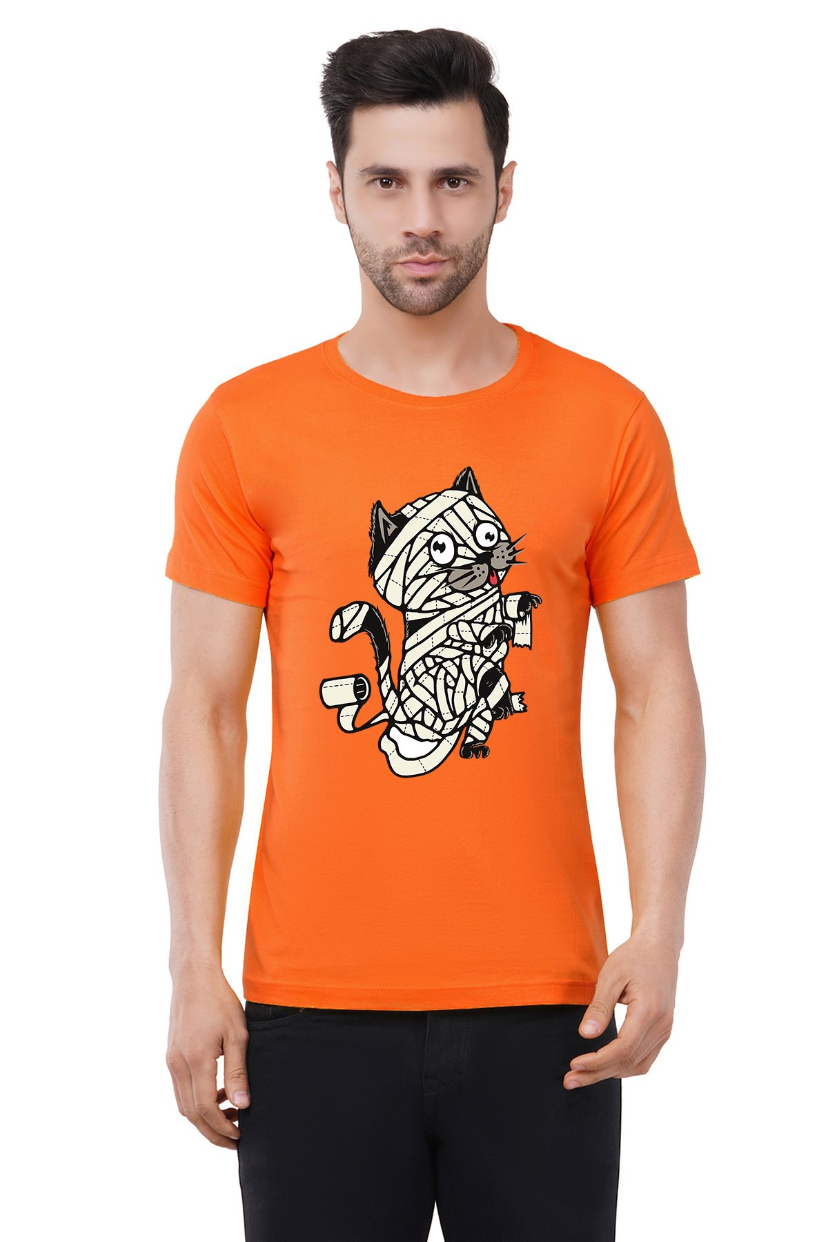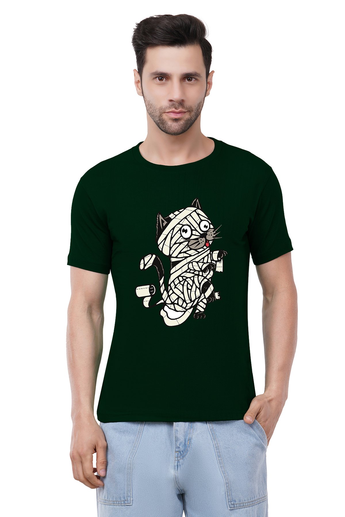 Caseria Men's Cotton Graphic Printed Half Sleeve T-Shirt - Cat Mummy