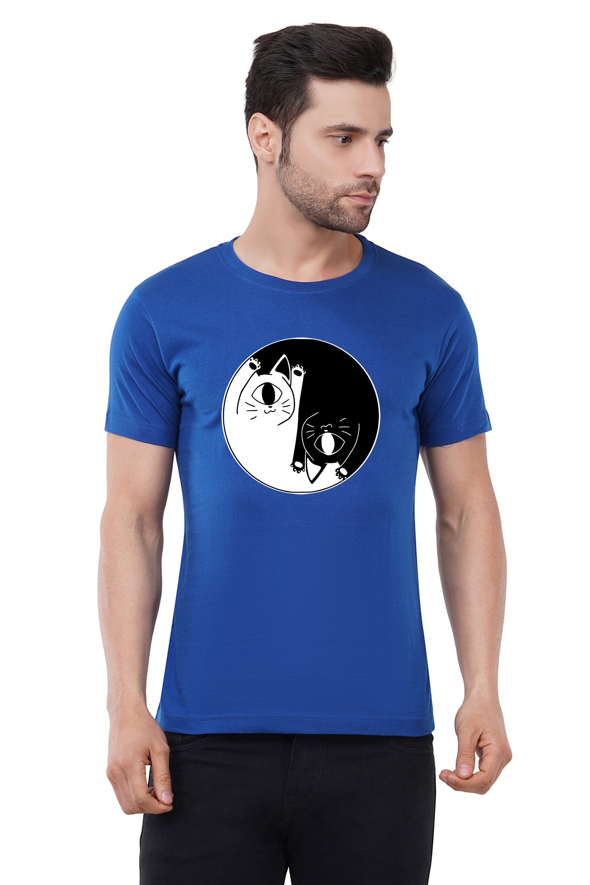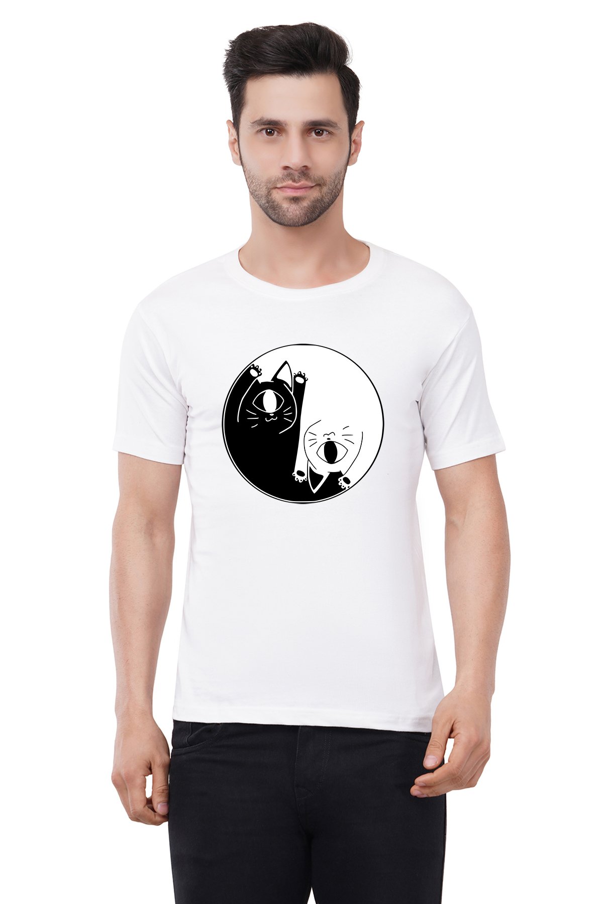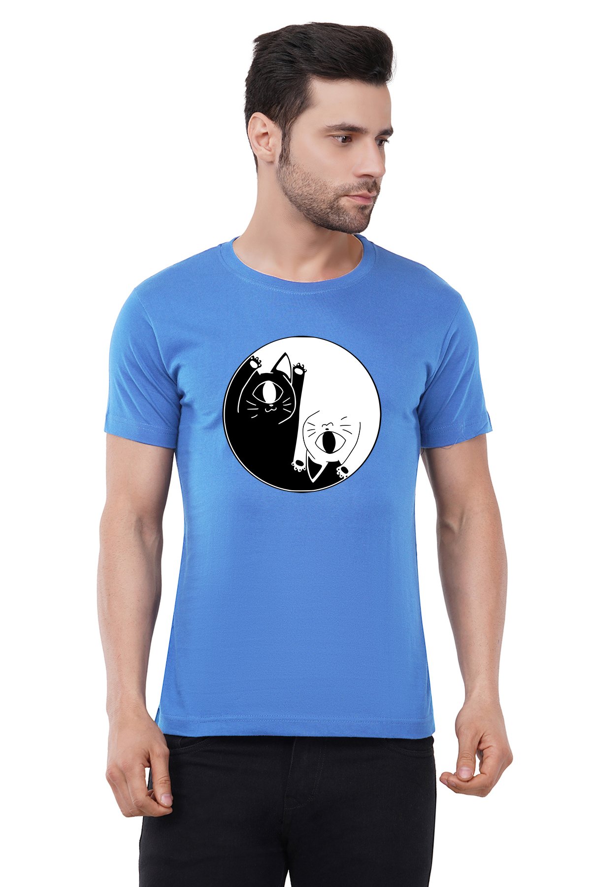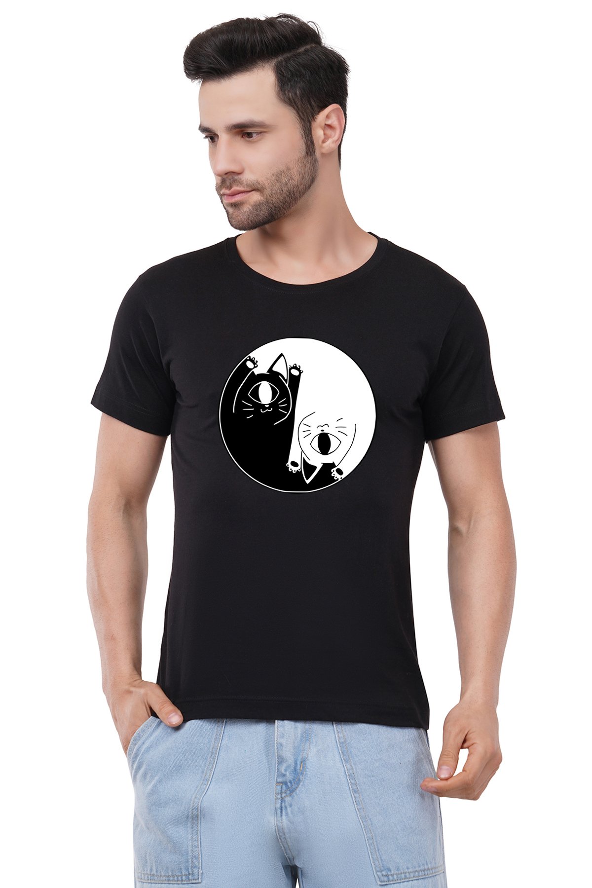 Caseria Men's Cotton Graphic Printed Half Sleeve T-Shirt - Cat One Eye