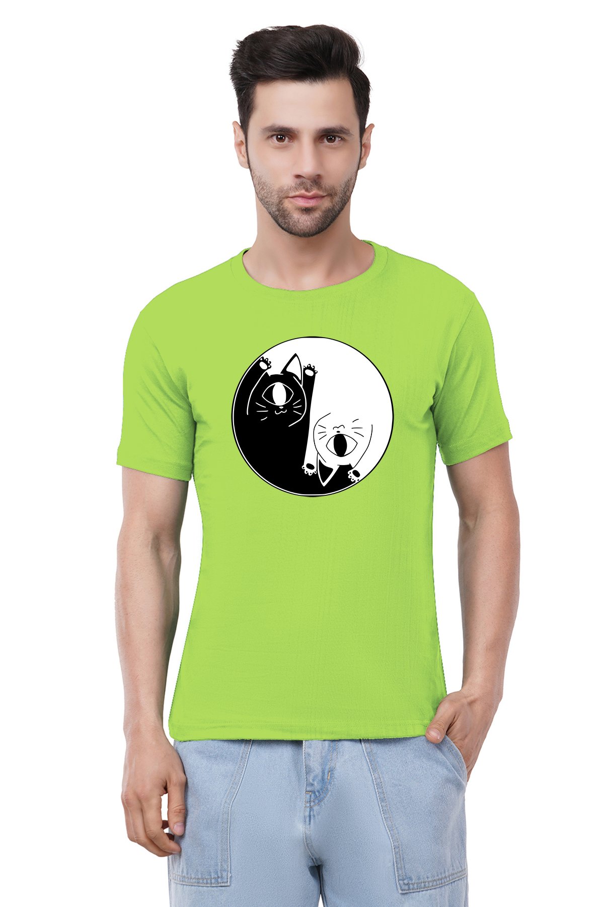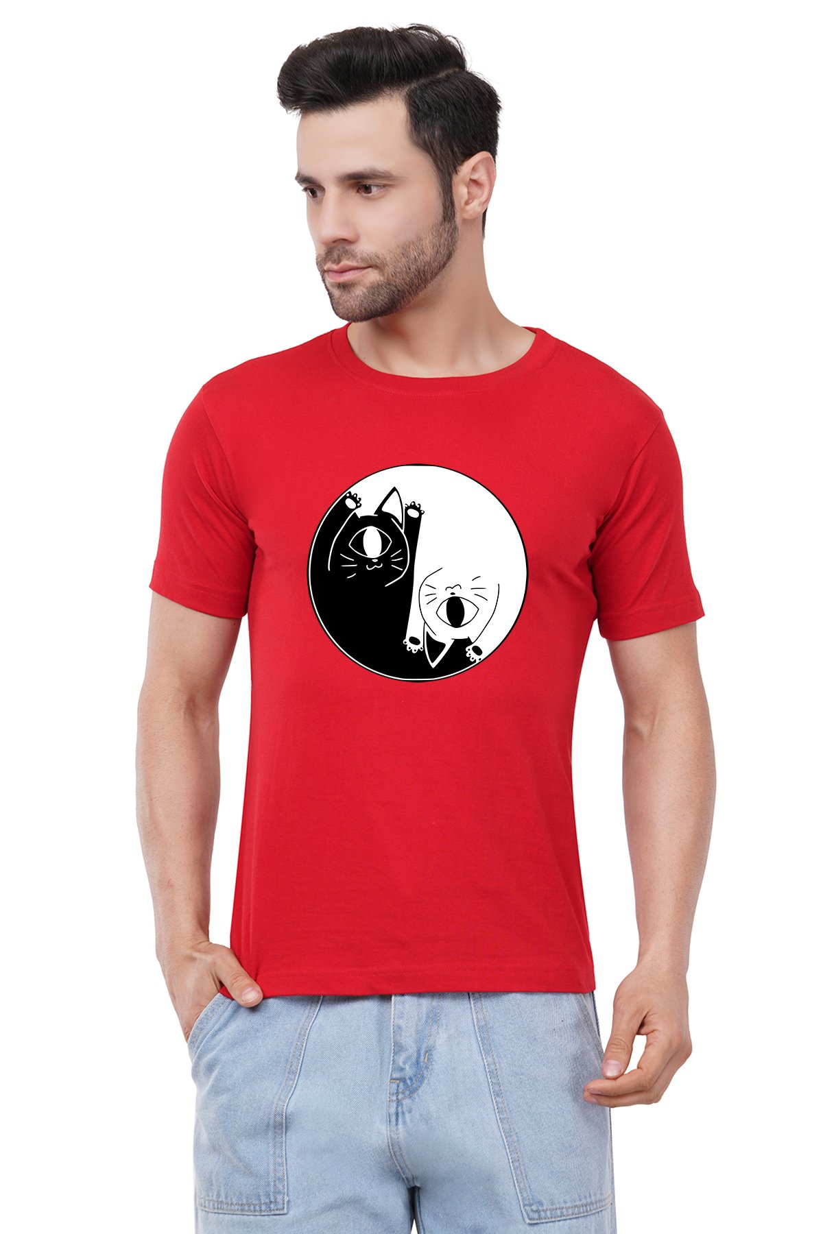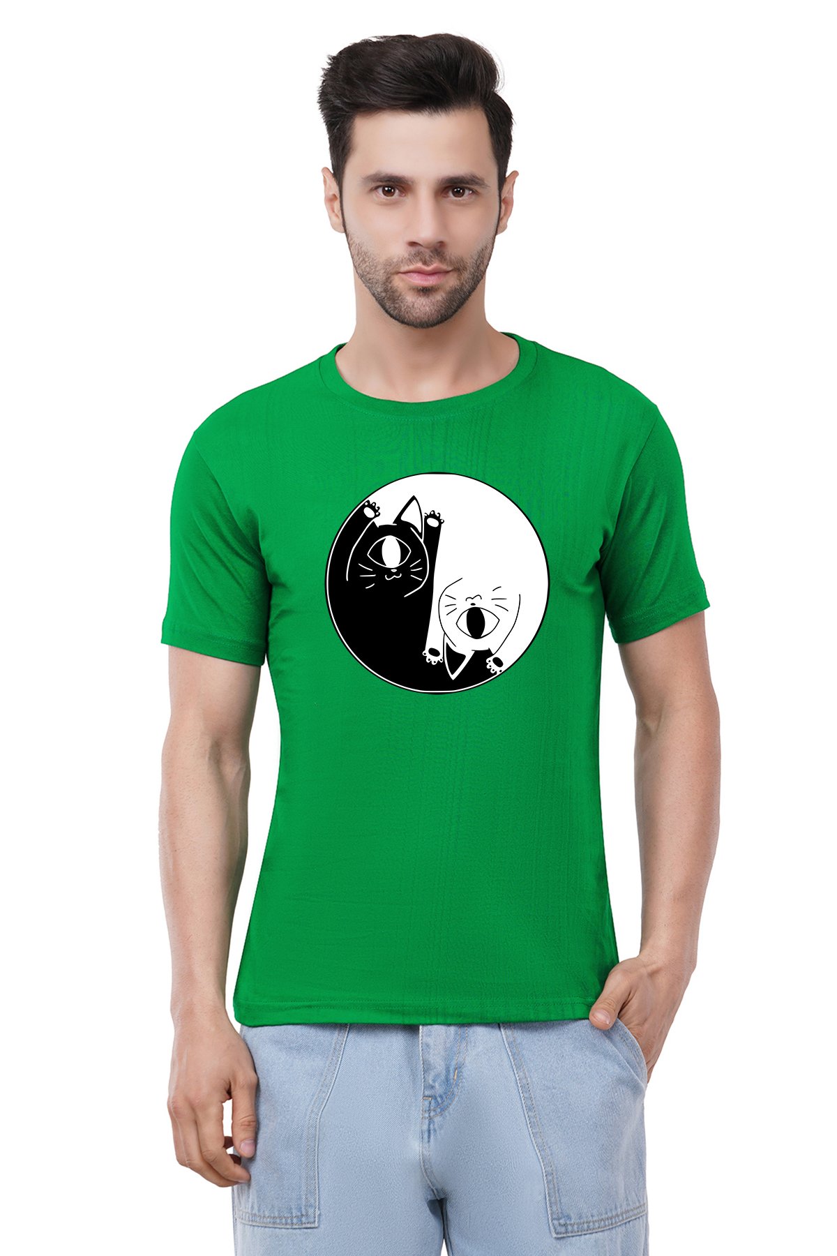 Caseria Men's Cotton Graphic Printed Half Sleeve T-Shirt - Cat One Eye