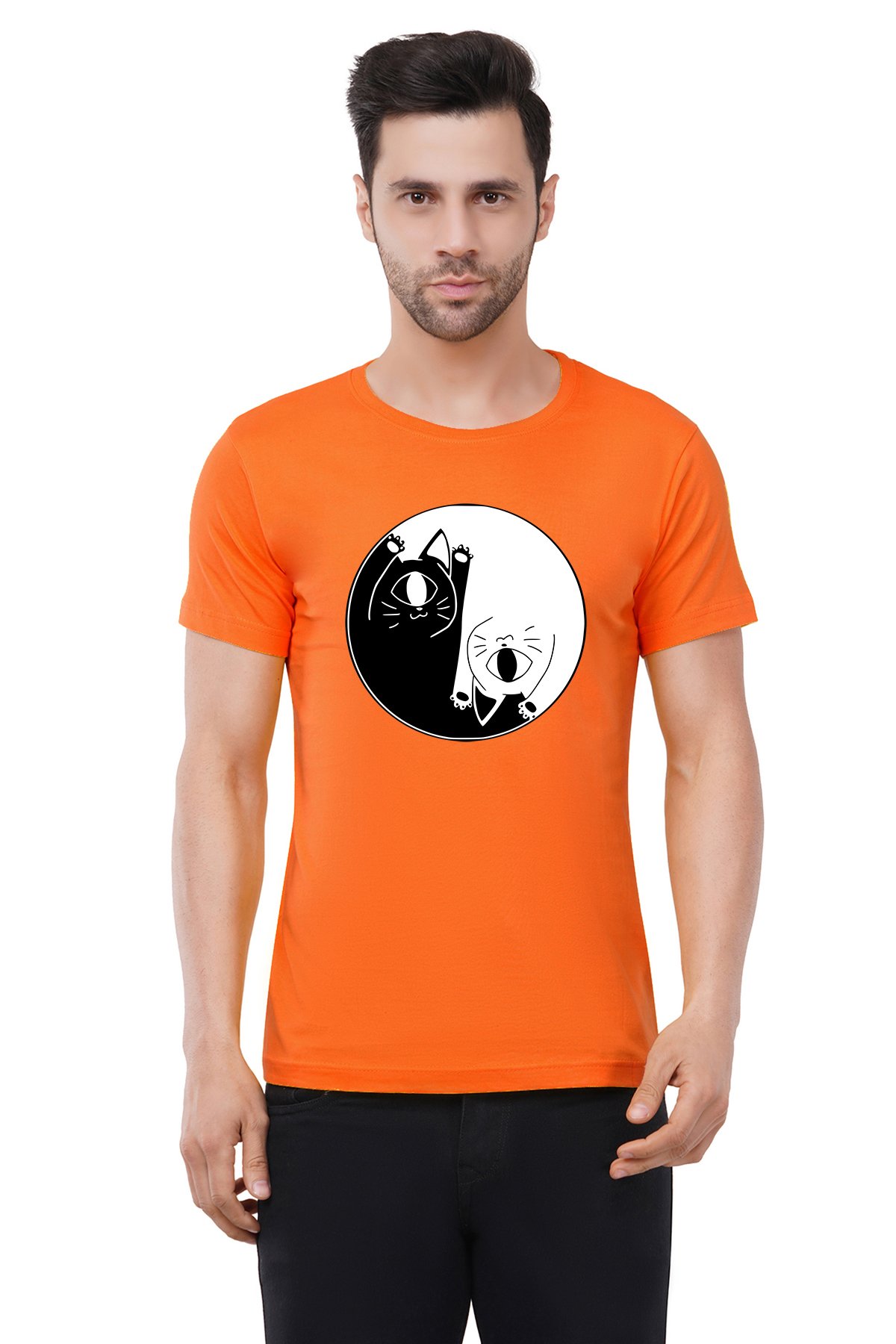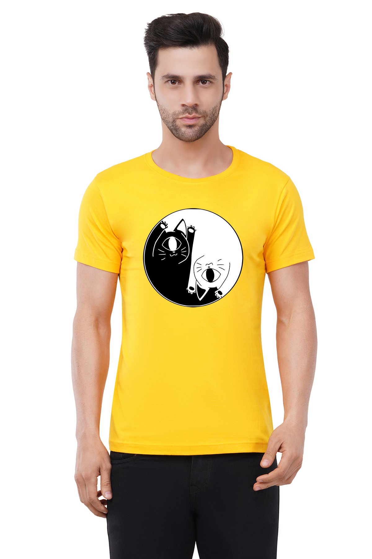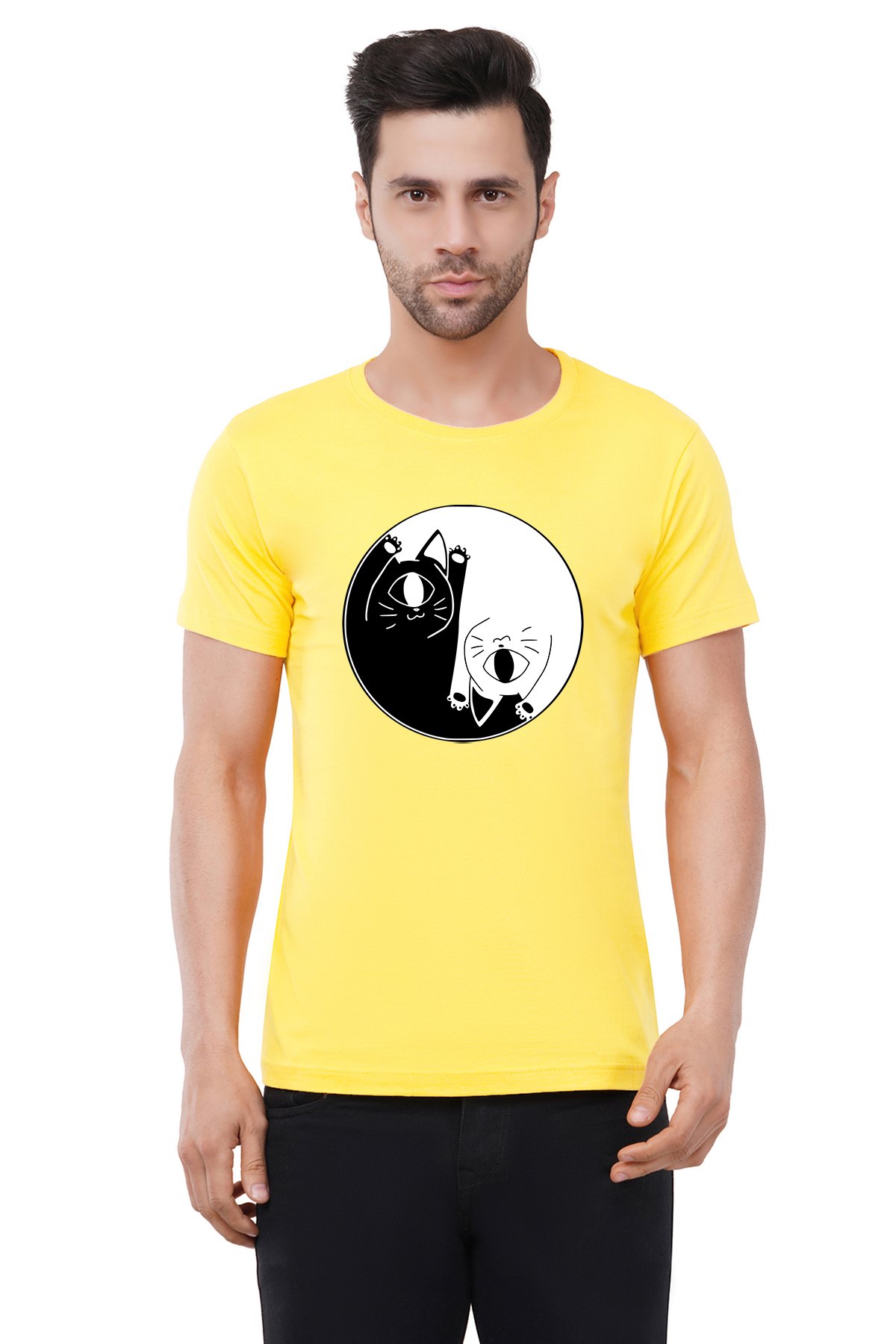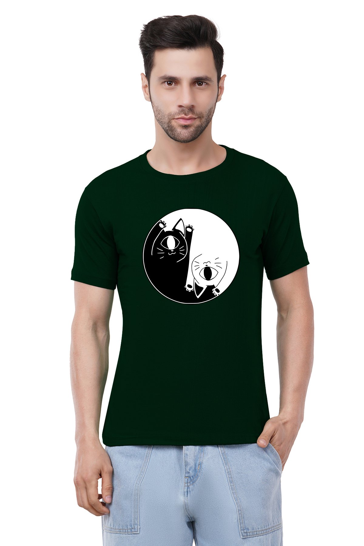 Caseria Men's Cotton Graphic Printed Half Sleeve T-Shirt - Cat One Eye