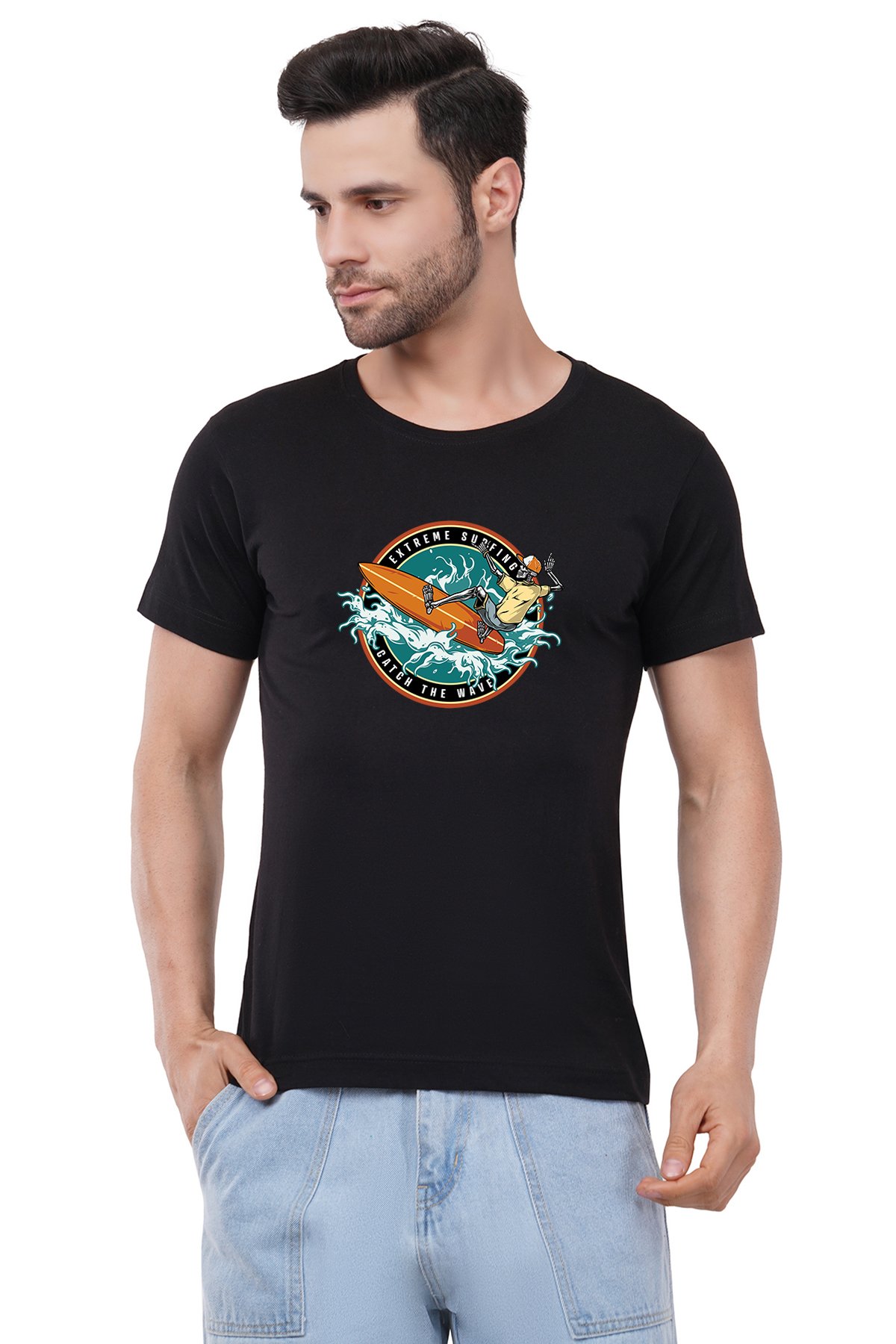 Caseria Men's Cotton Graphic Printed Half Sleeve T-Shirt - Catch The Wave