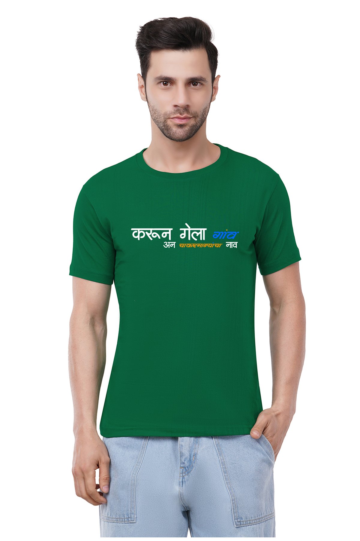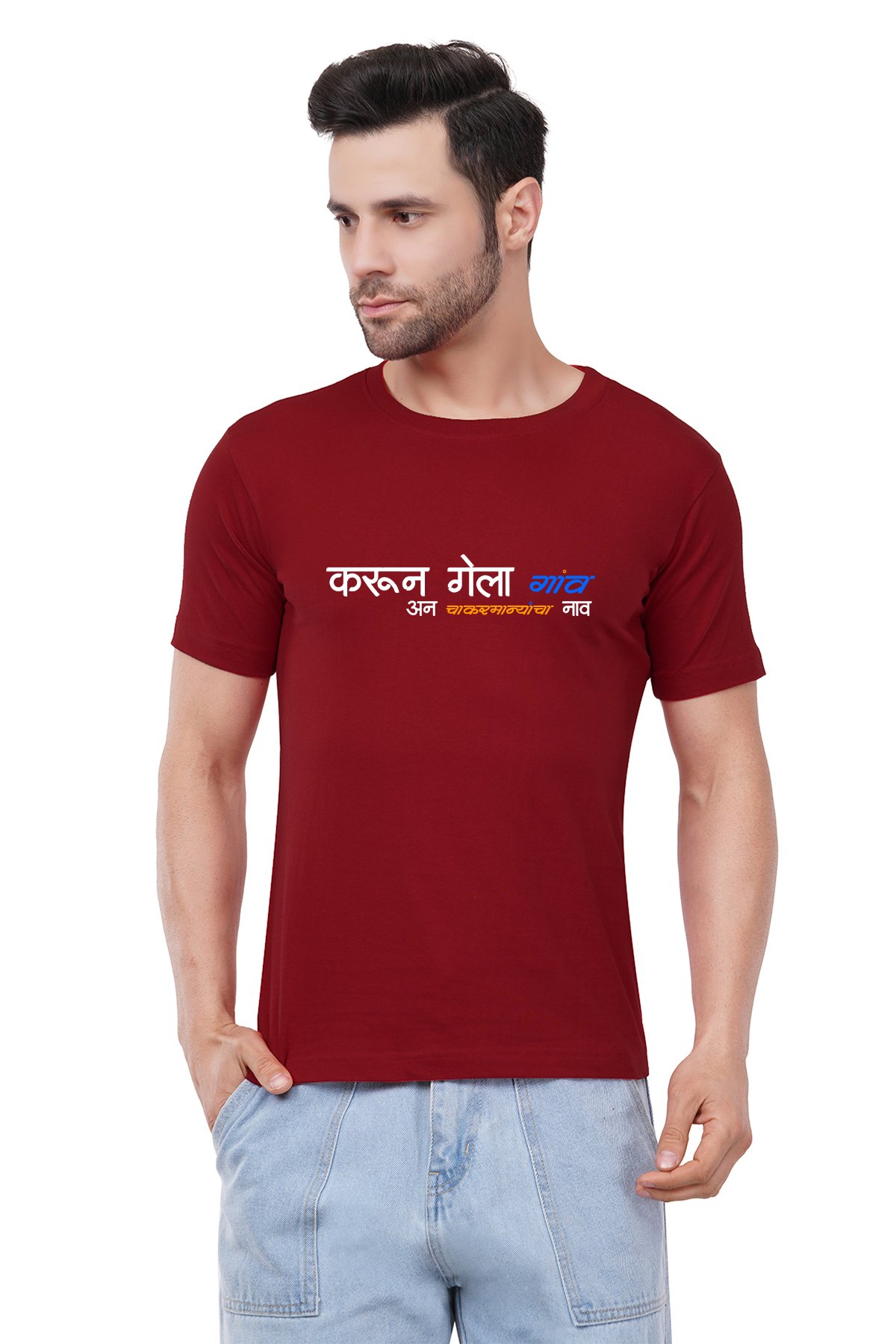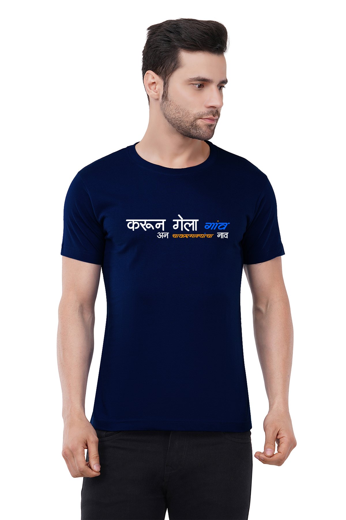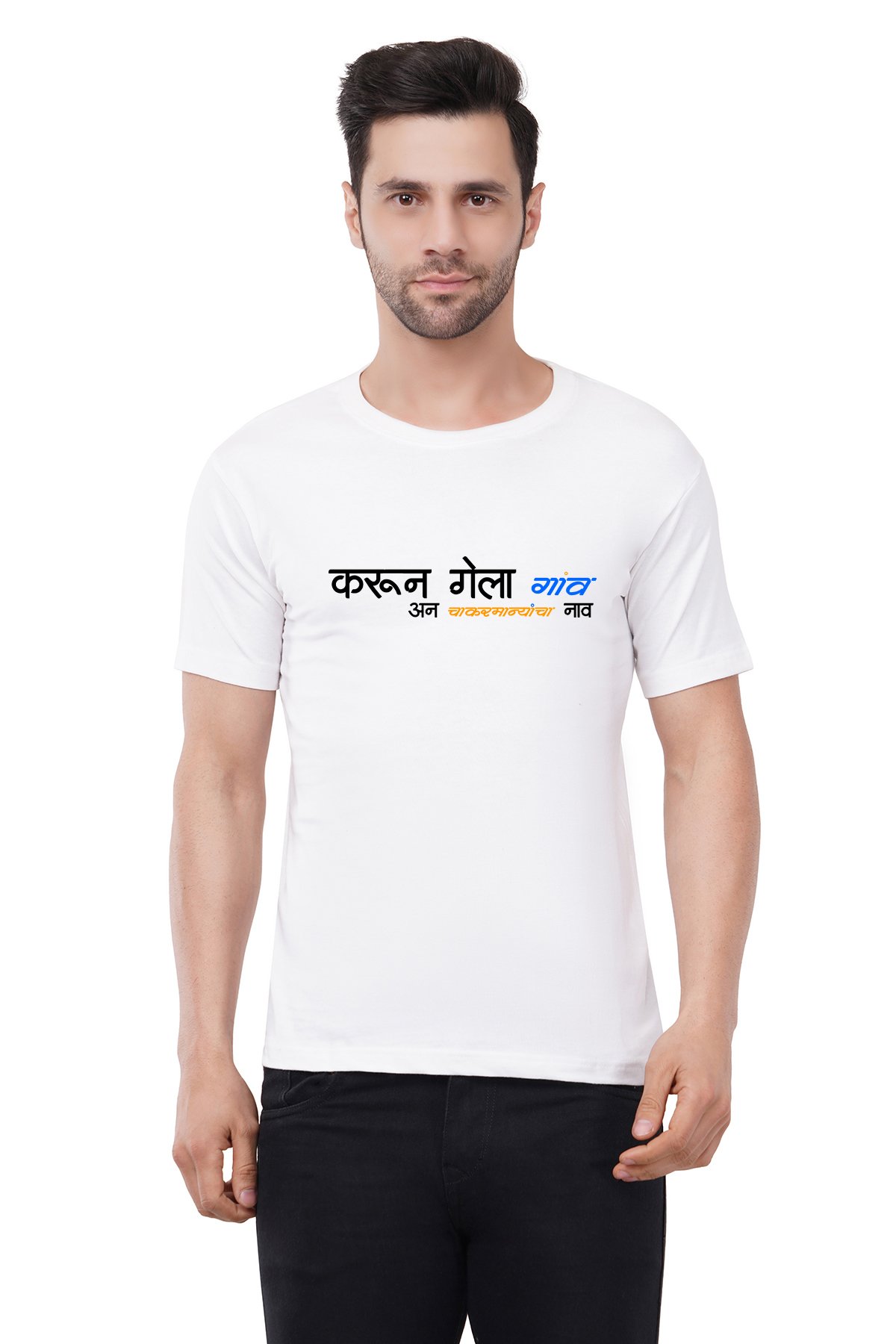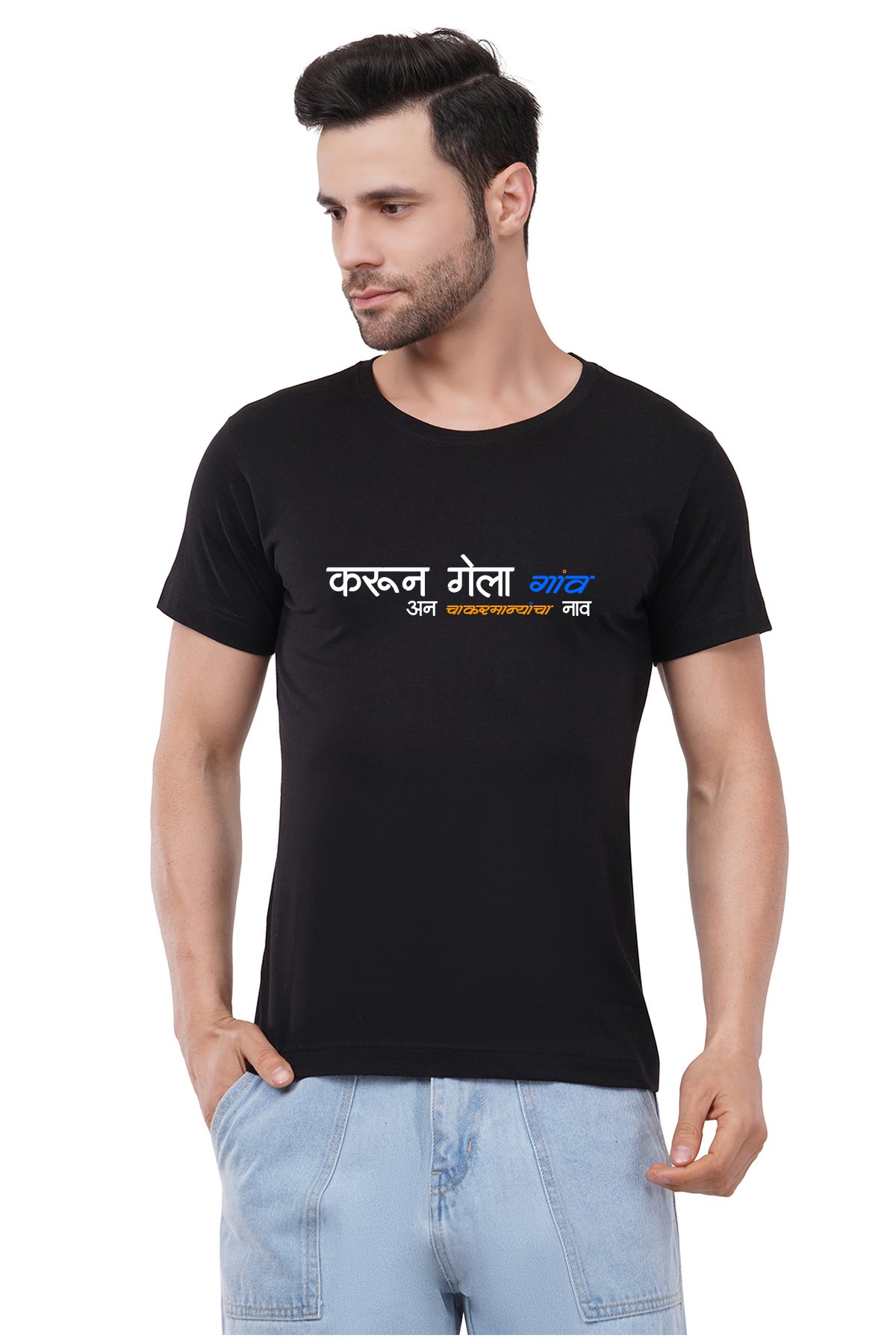 Caseria Men's Cotton Graphic Printed Half Sleeve T-Shirt - Chakarmani 1 Marathi