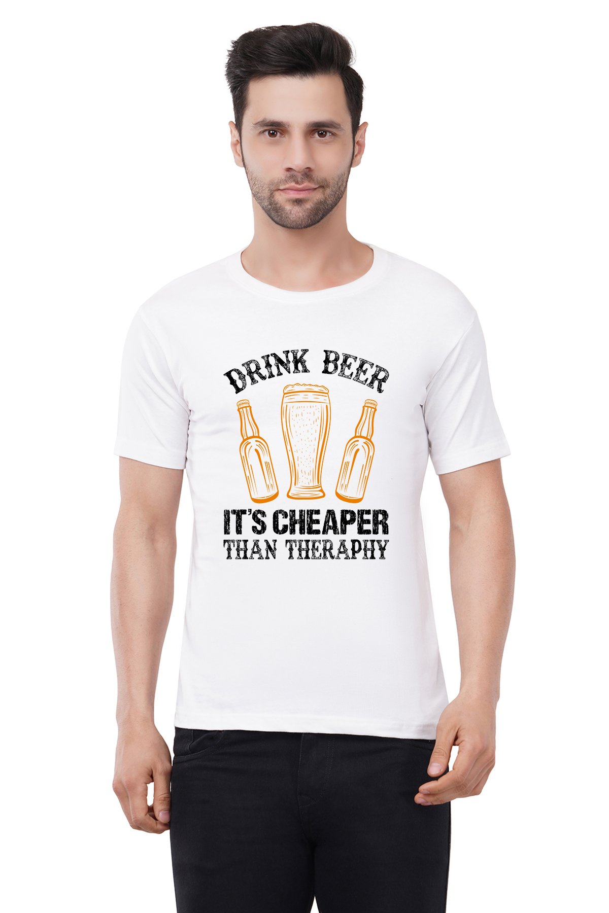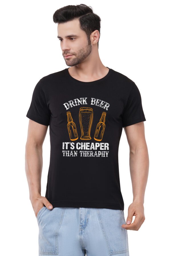 Caseria Men's Cotton Graphic Printed Half Sleeve T-Shirt - Cheaper Beer Drink