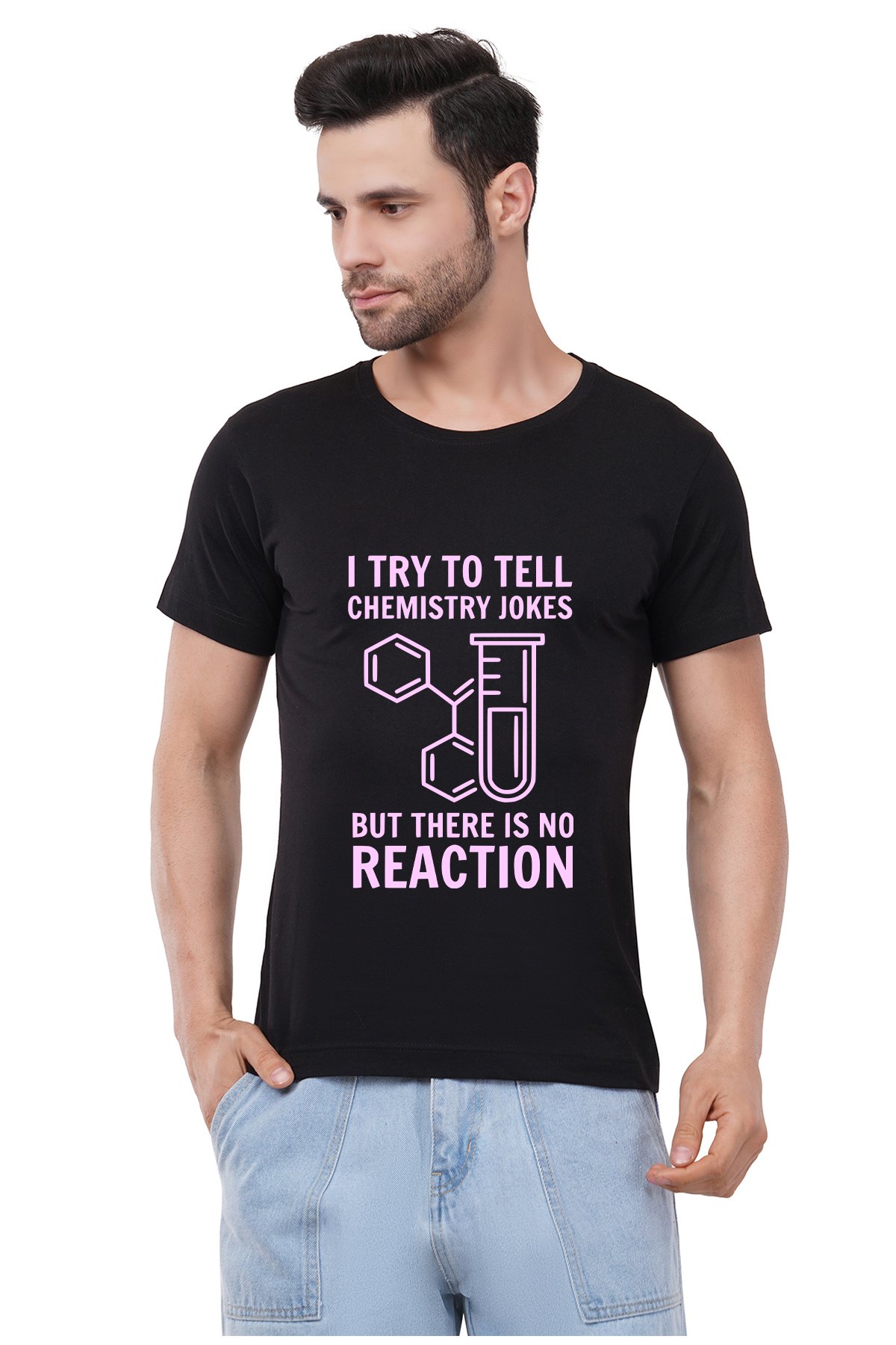 Caseria Men's Cotton Graphic Printed Half Sleeve T-Shirt - Chemistry Jokes