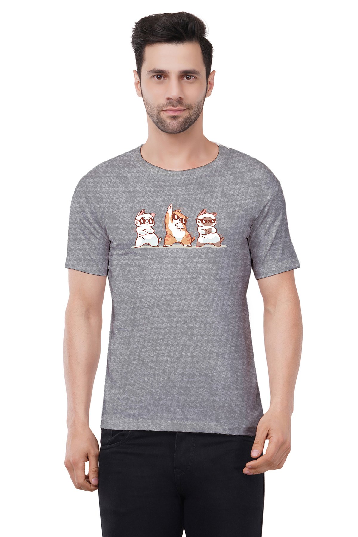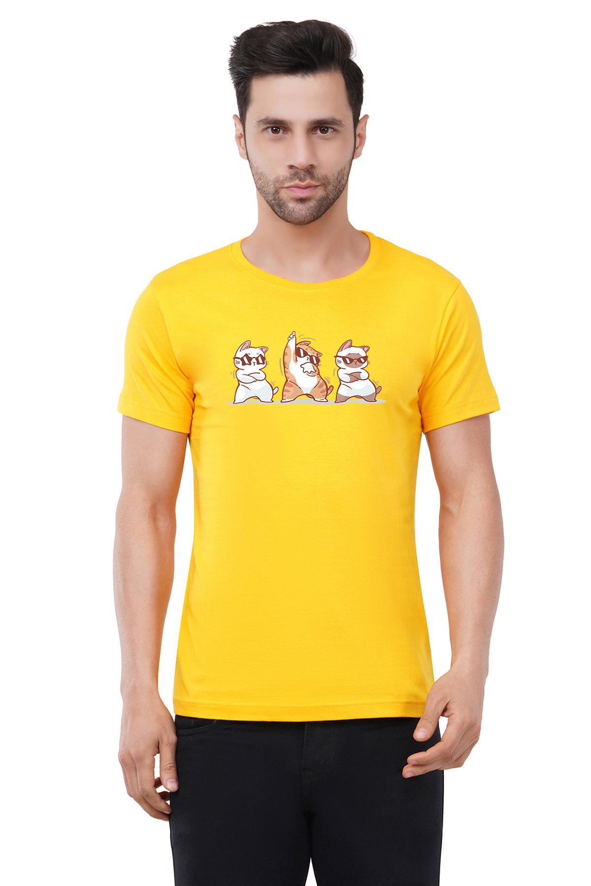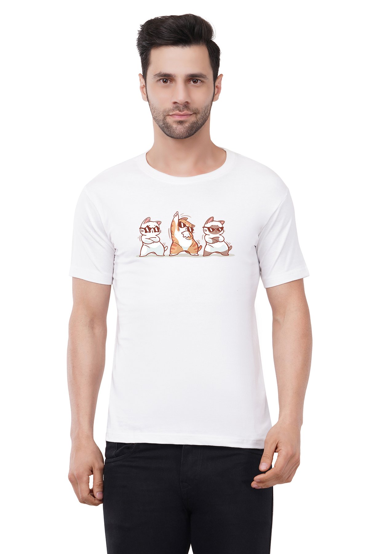 Caseria Men's Cotton Graphic Printed Half Sleeve T-Shirt - Cute Cat Dance