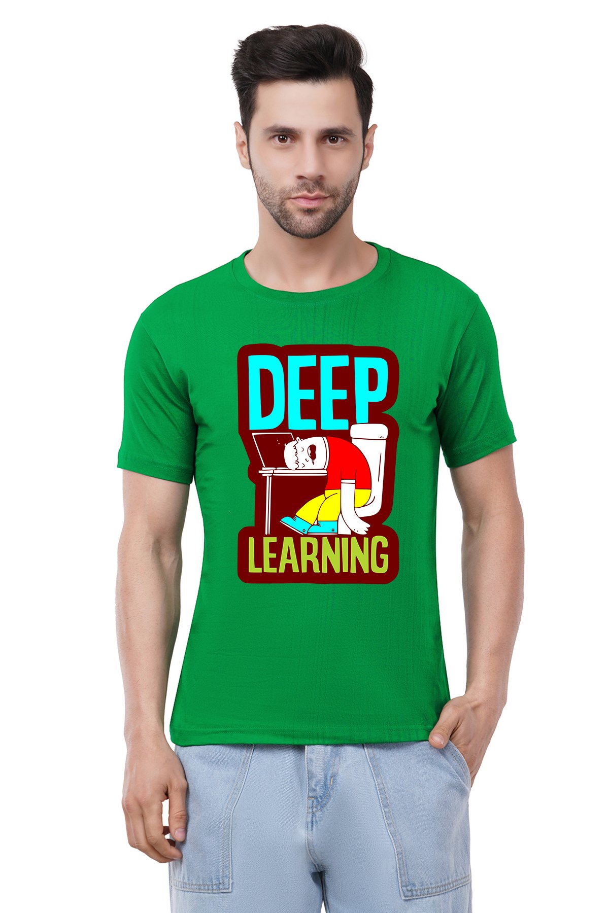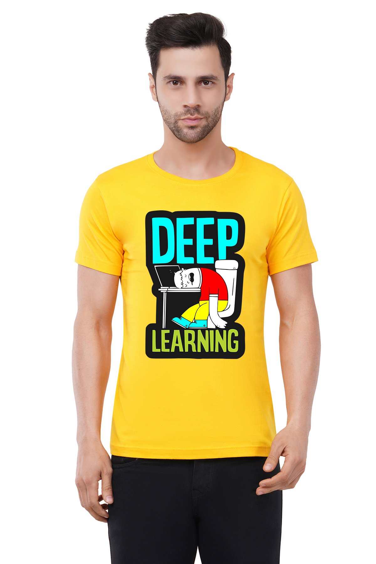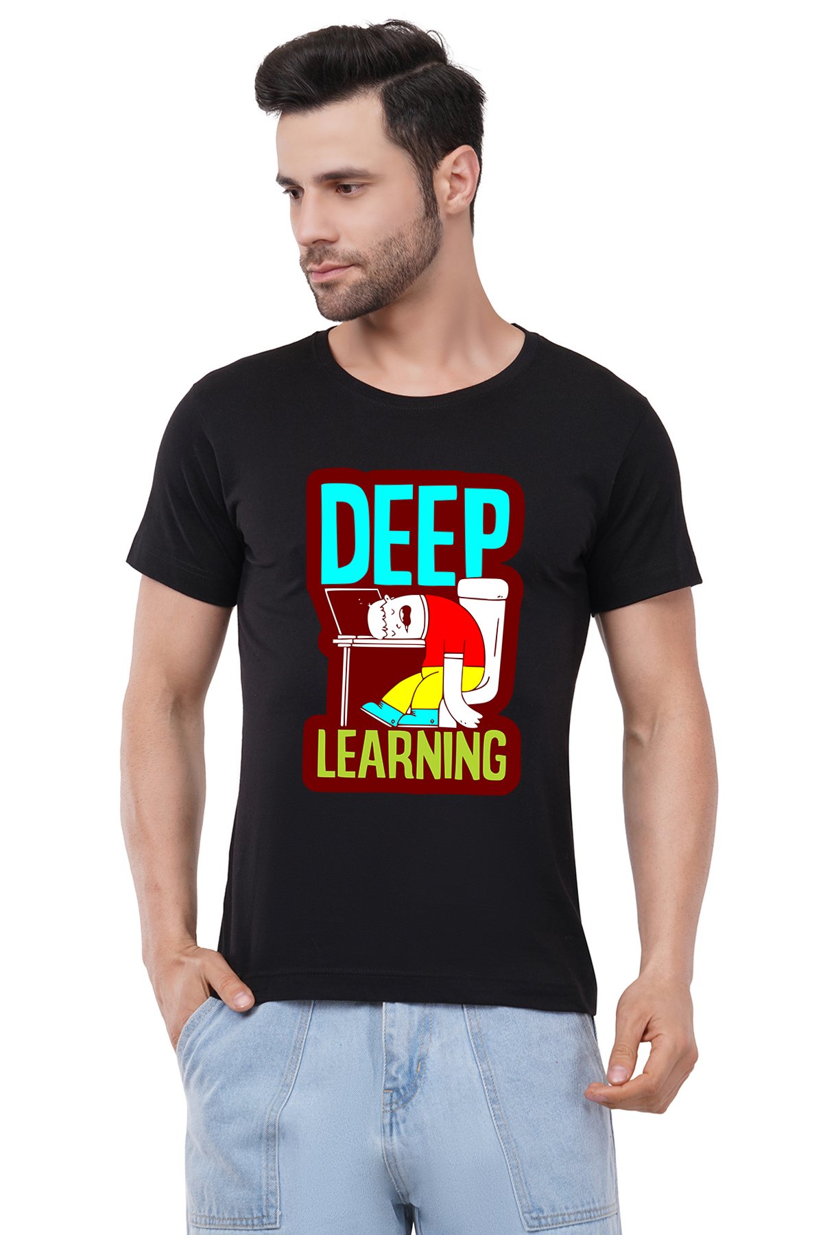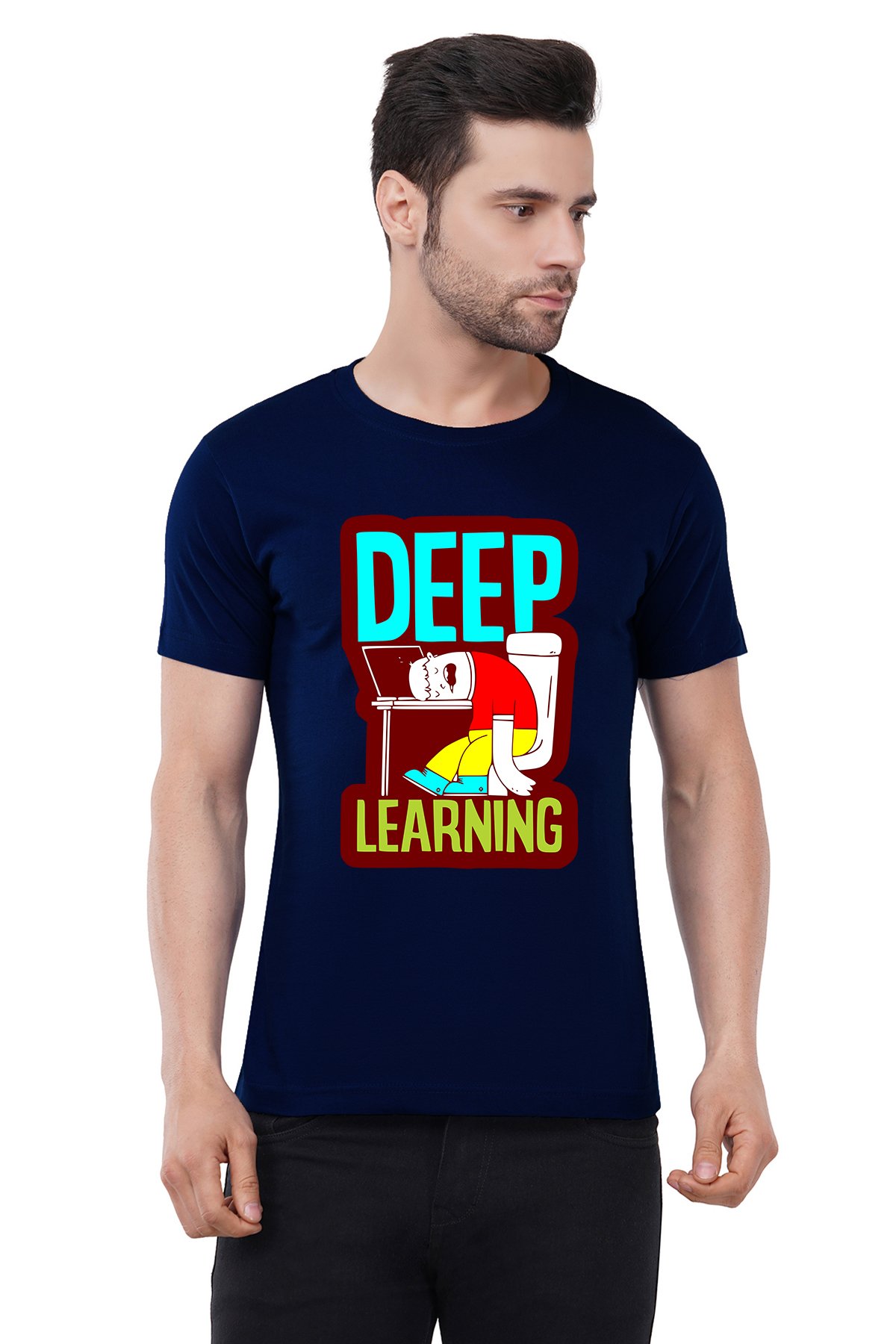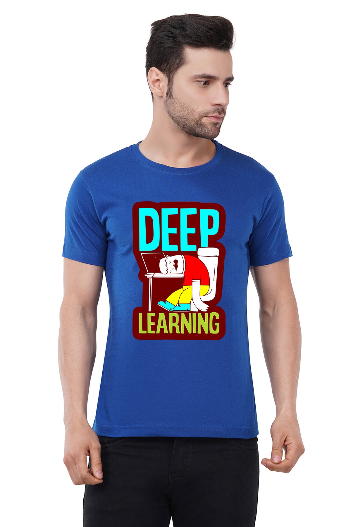 Caseria Men's Cotton Graphic Printed Half Sleeve T-Shirt - Deep Learning