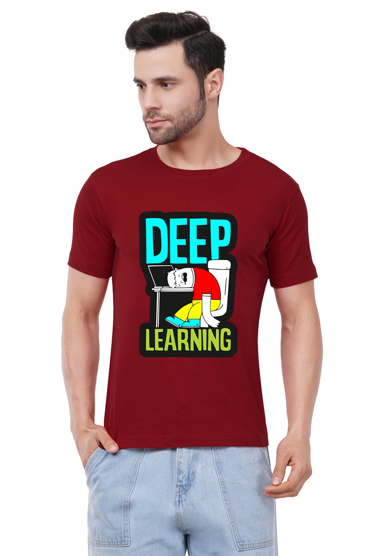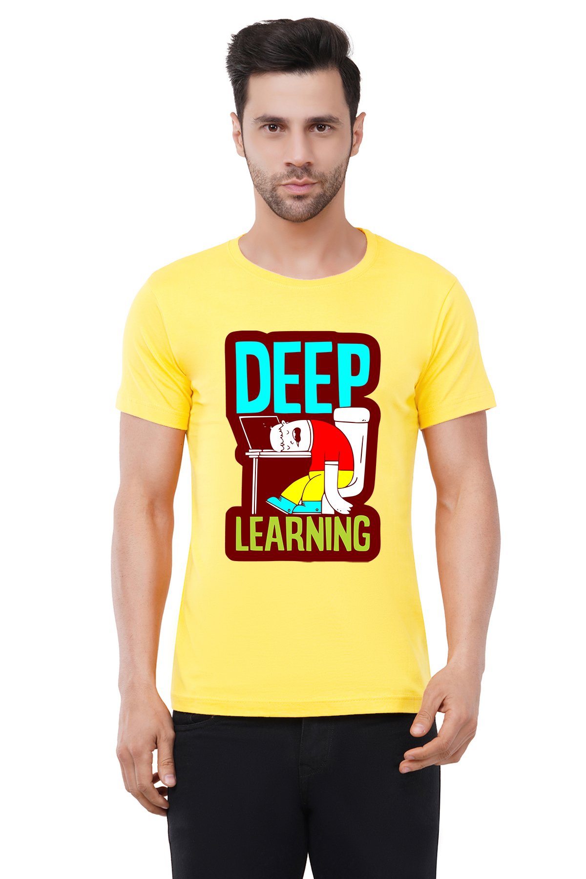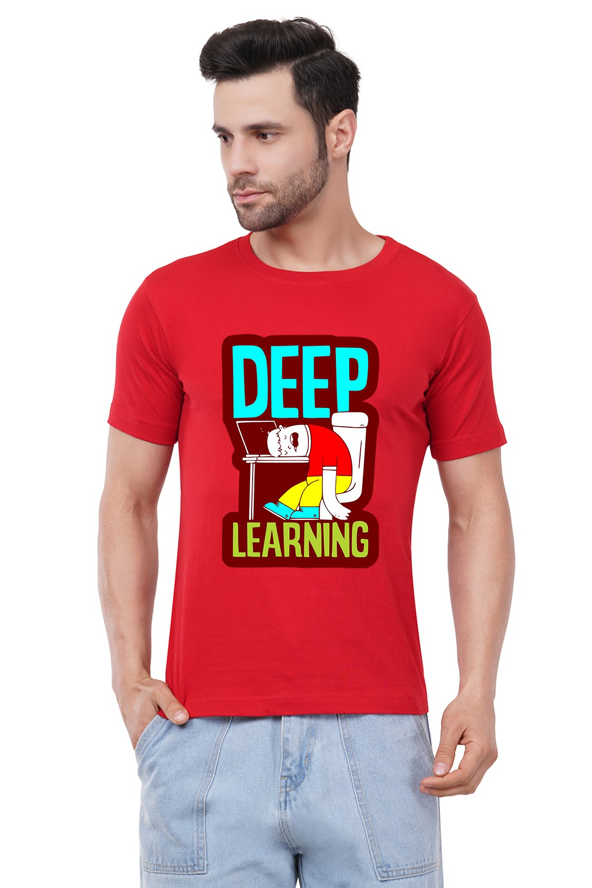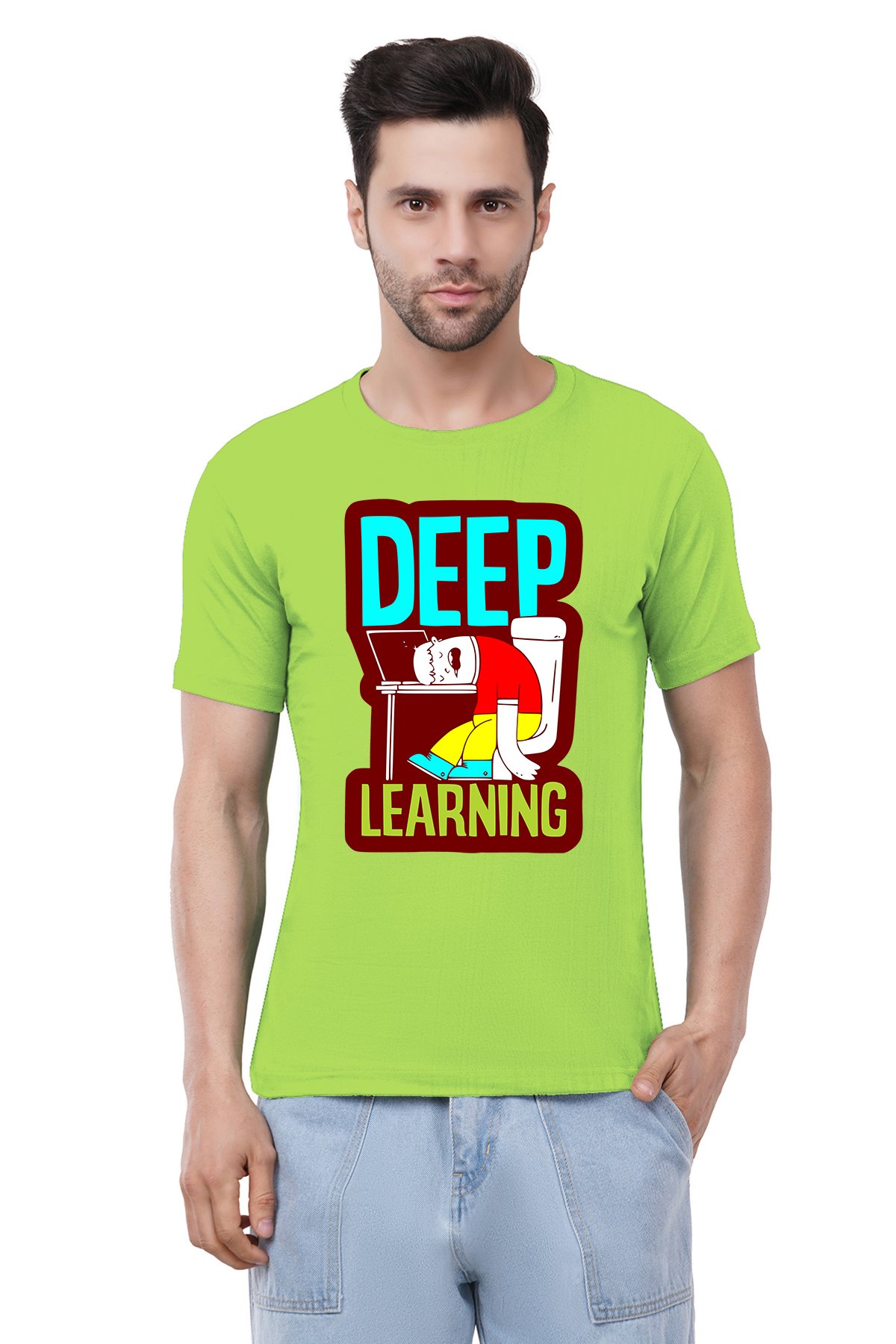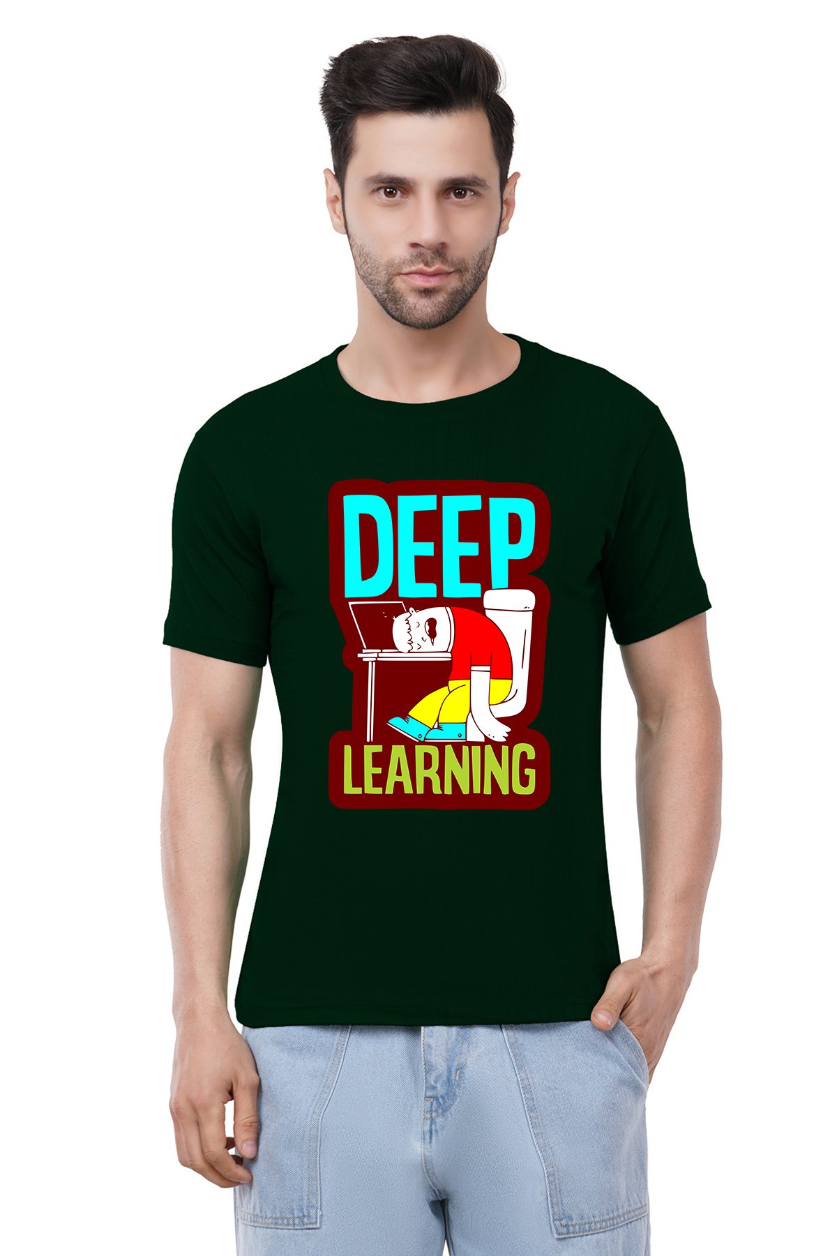 Caseria Men's Cotton Graphic Printed Half Sleeve T-Shirt - Deep Learning