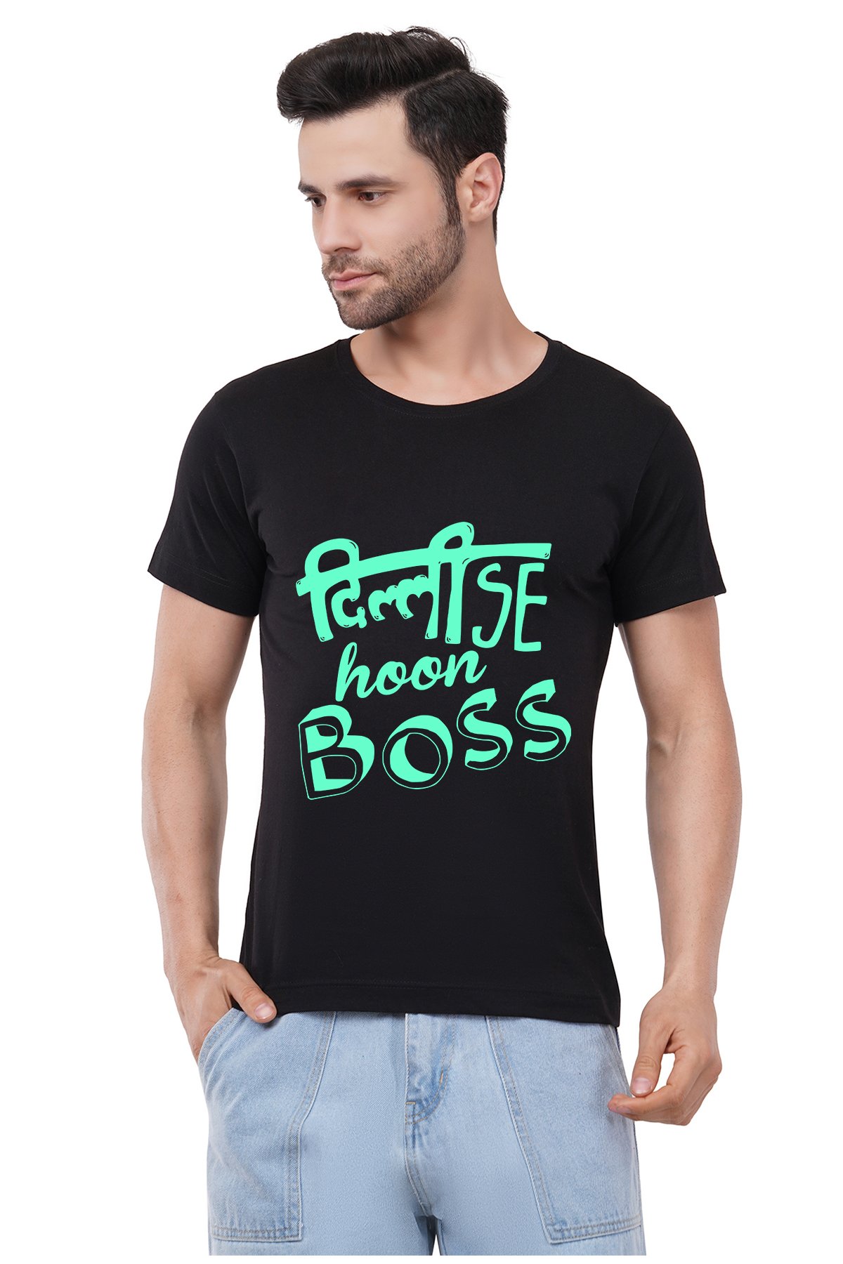 Caseria Men's Cotton Graphic Printed Half Sleeve T-Shirt - Delhi Se Hoon Boss
