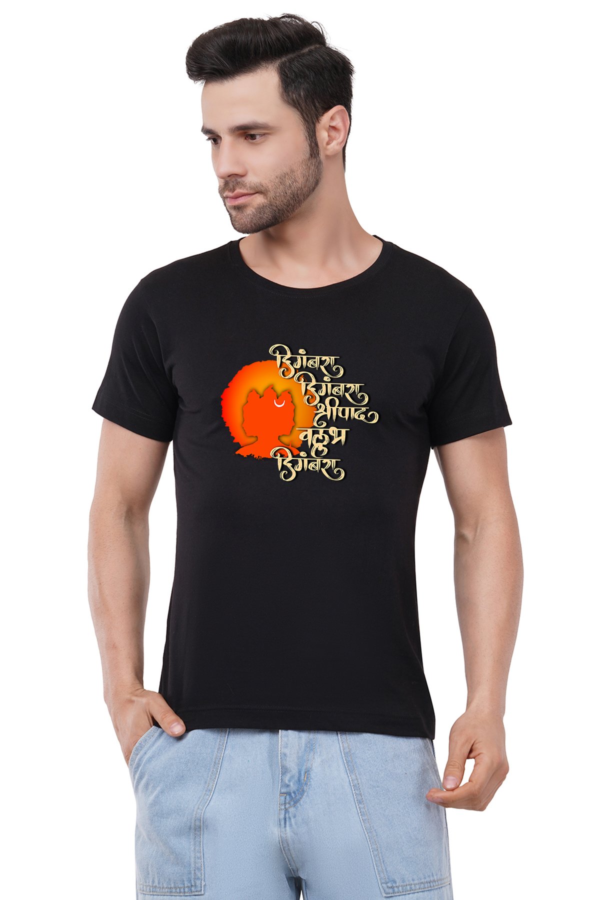Caseria Men's Cotton Graphic Printed Half Sleeve T-Shirt - Digambara