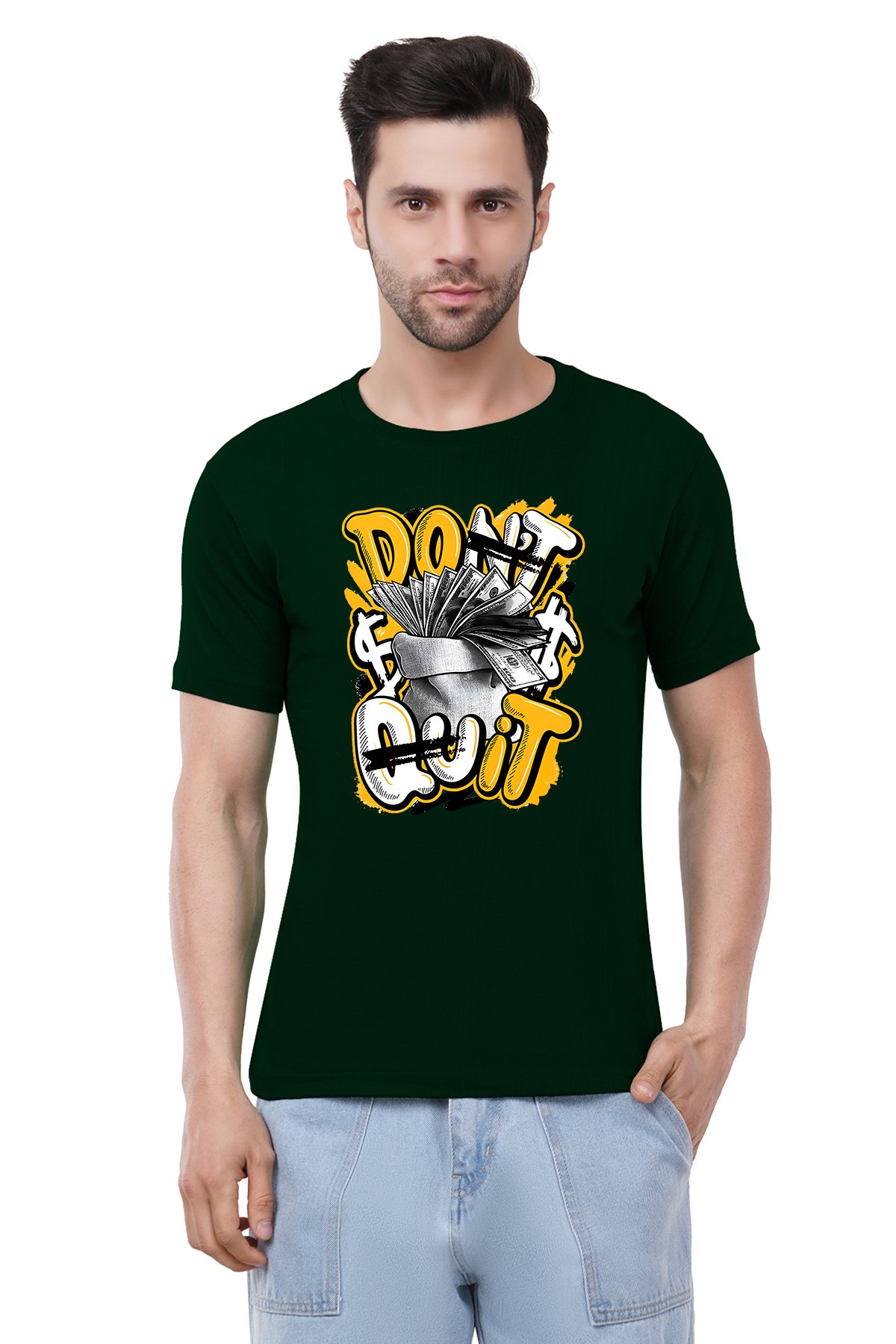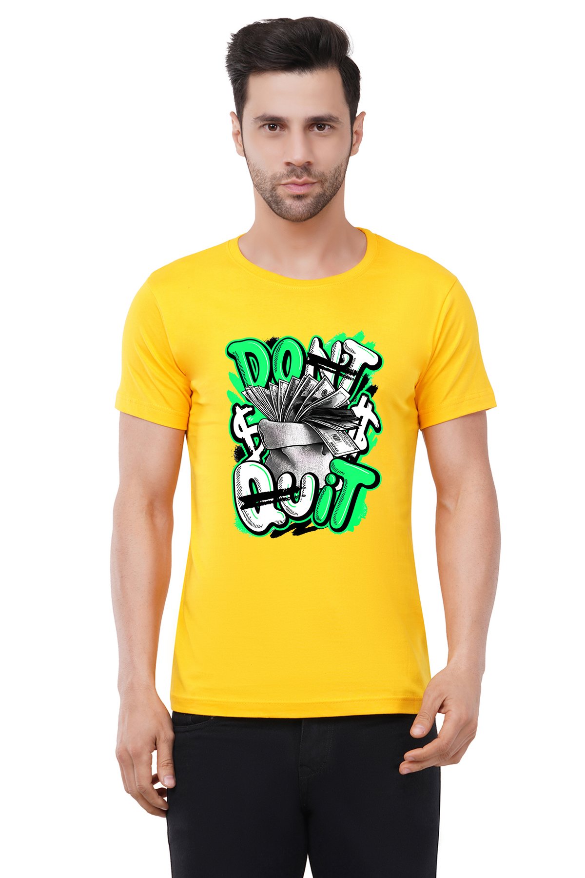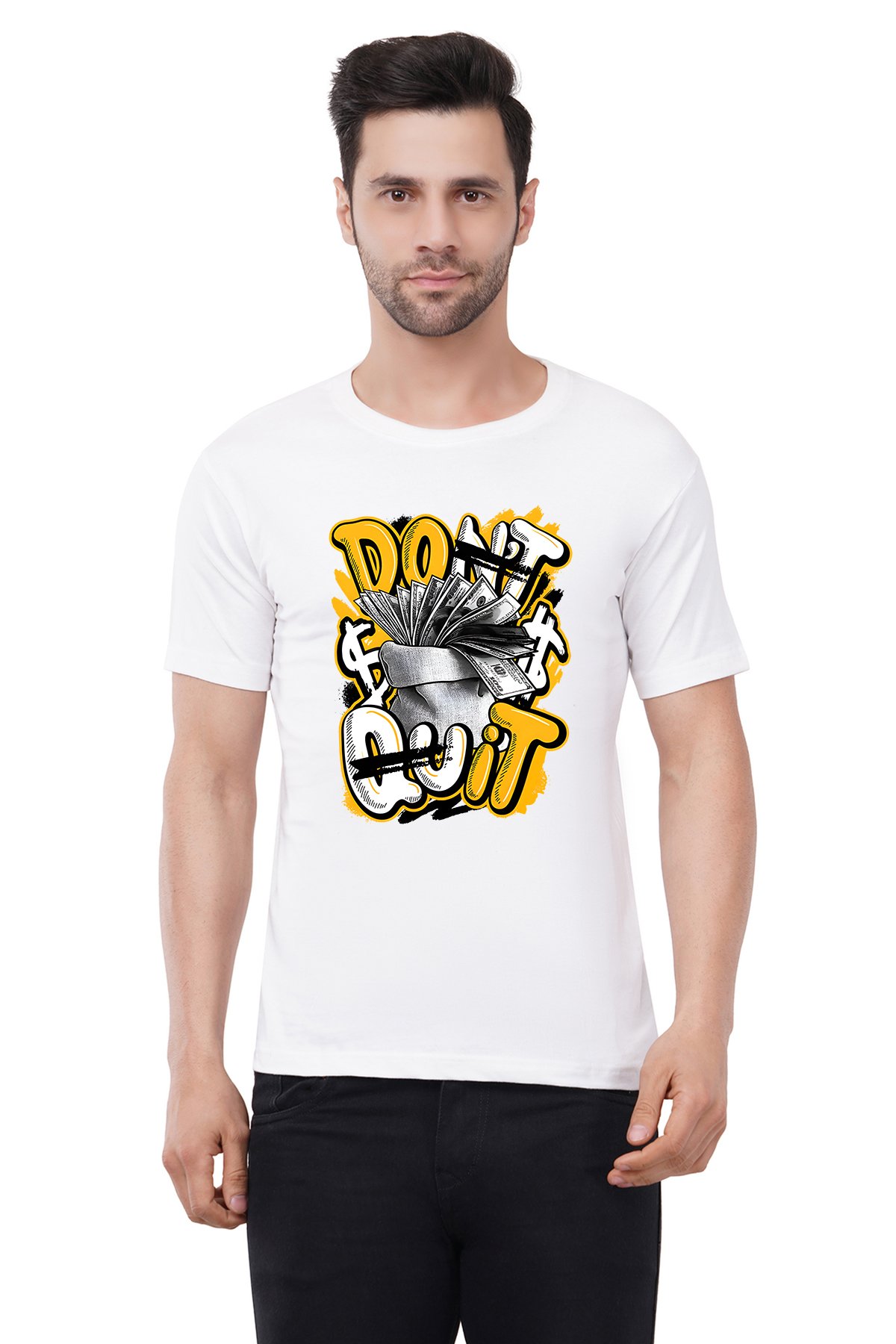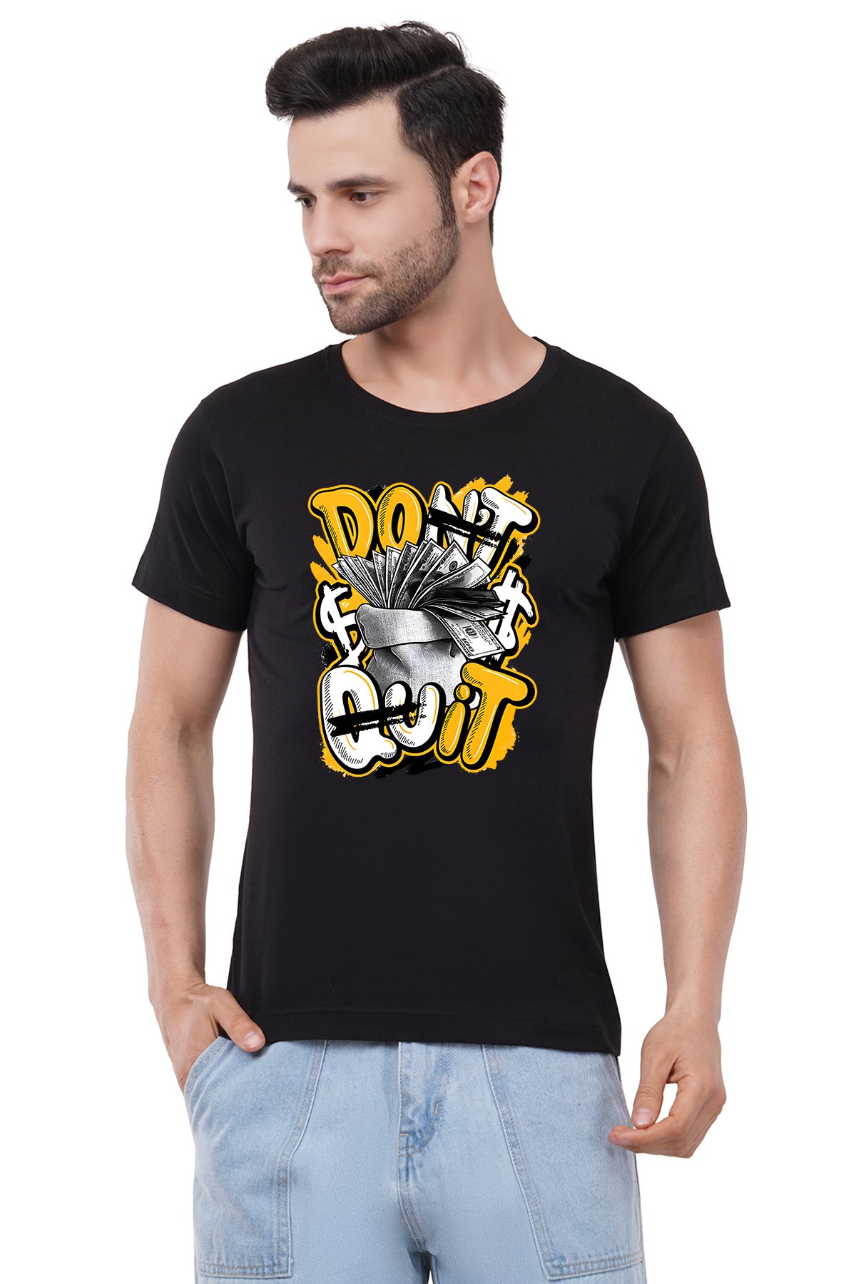 Caseria Men's Cotton Graphic Printed Half Sleeve T-Shirt - Don't Quit Money