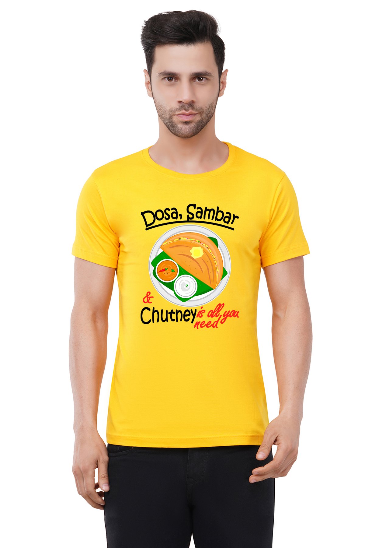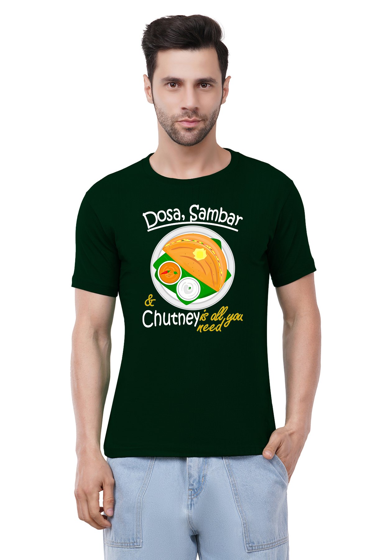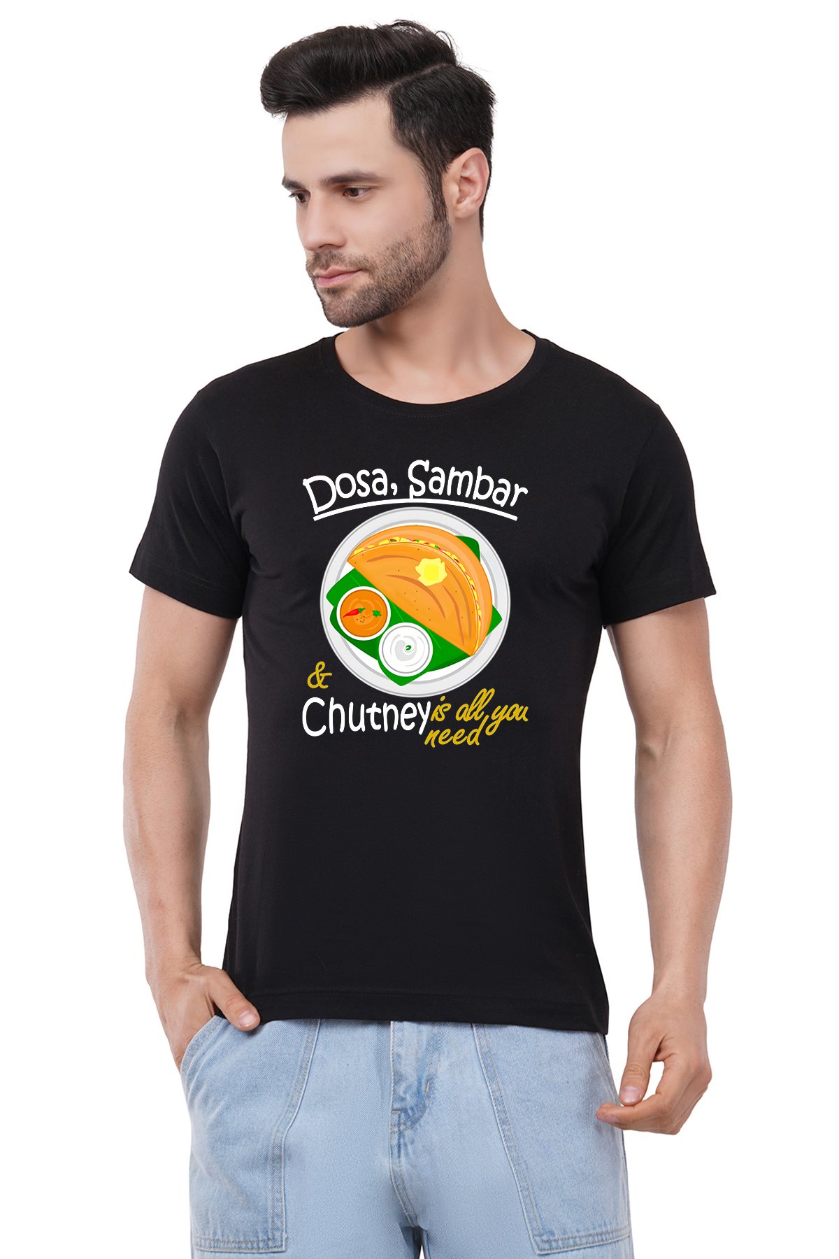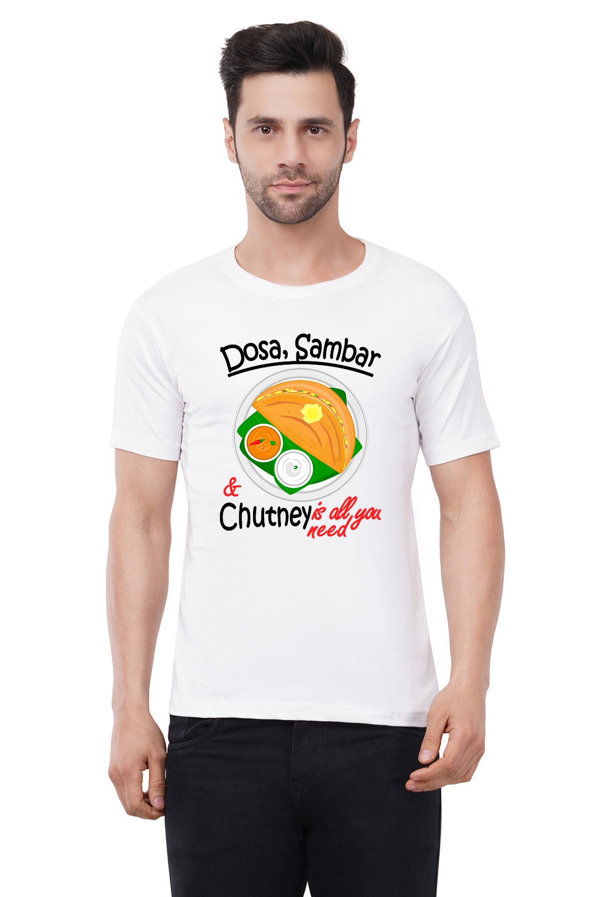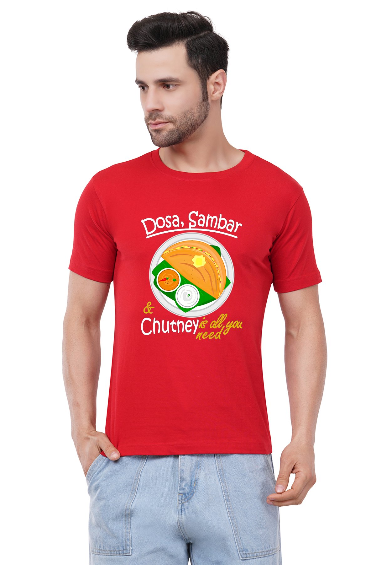 Caseria Men's Cotton Graphic Printed Half Sleeve T-Shirt - Dosa Sambar Chuntney