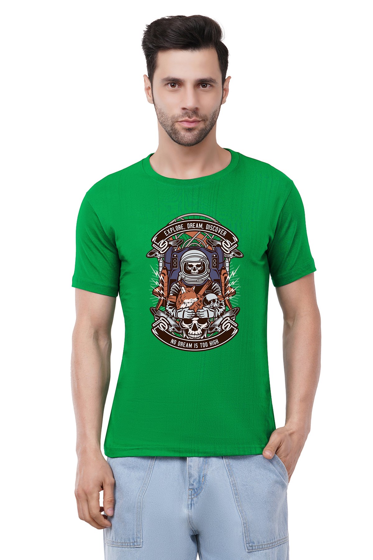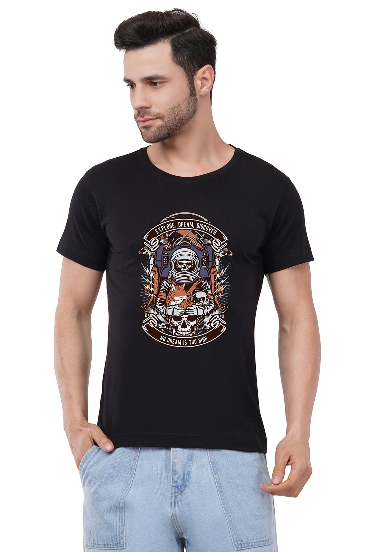 Caseria Men's Cotton Graphic Printed Half Sleeve T-Shirt - Explore Dream Discover
