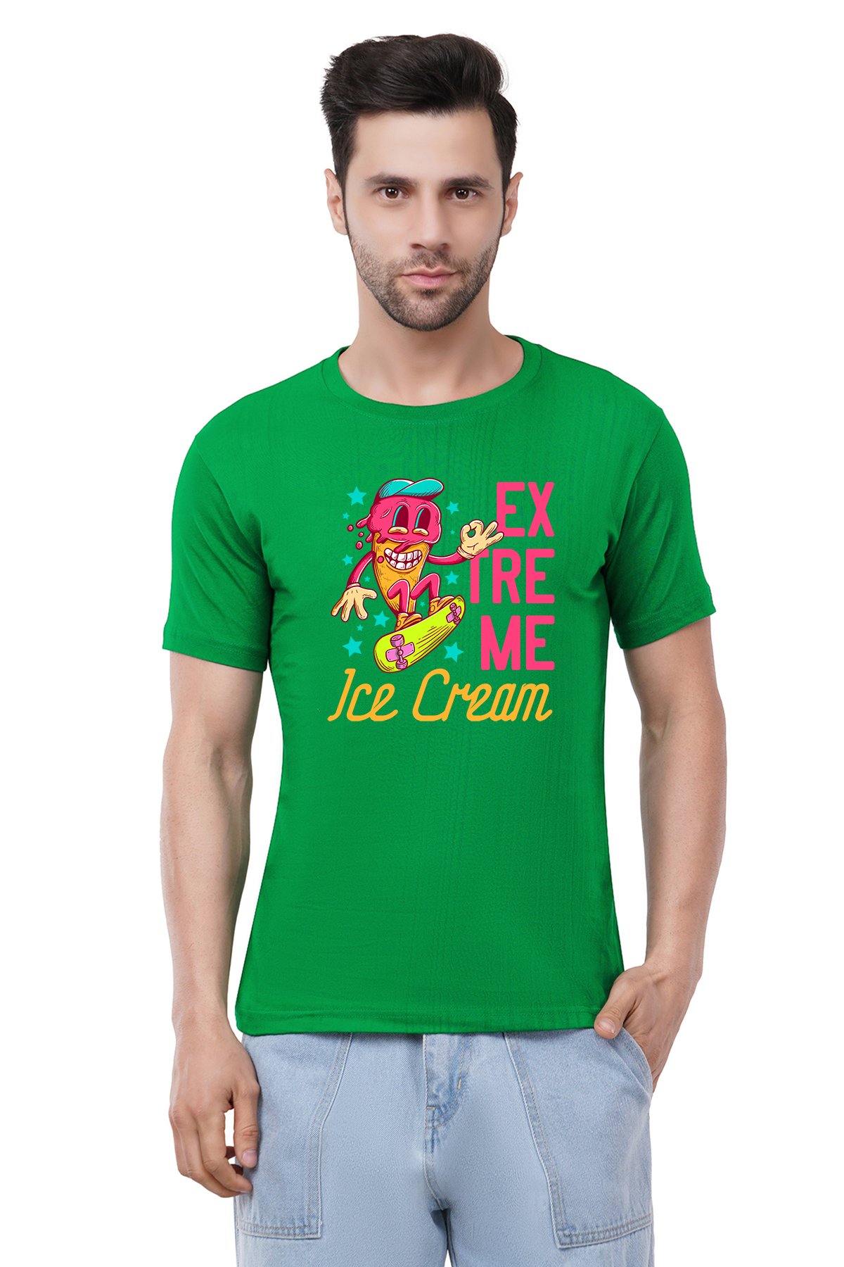 Caseria Men's Cotton Graphic Printed Half Sleeve T-Shirt - Extre Me Cream