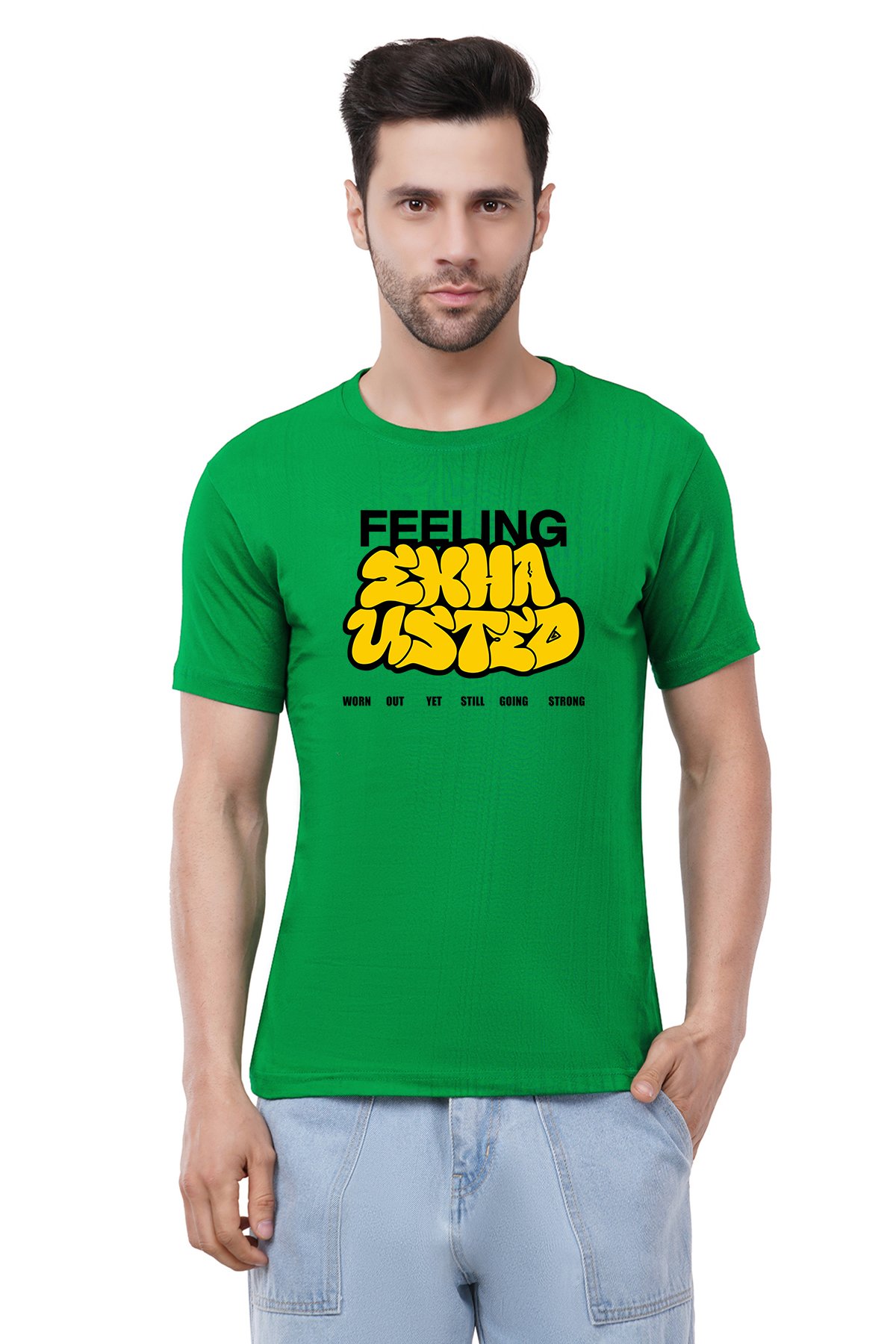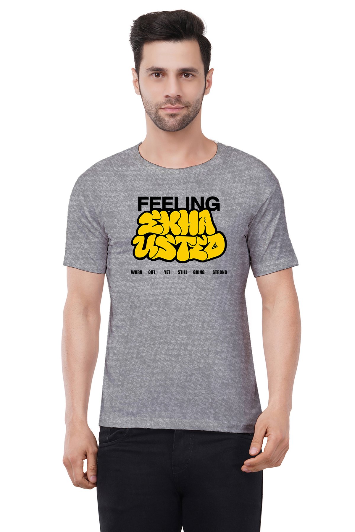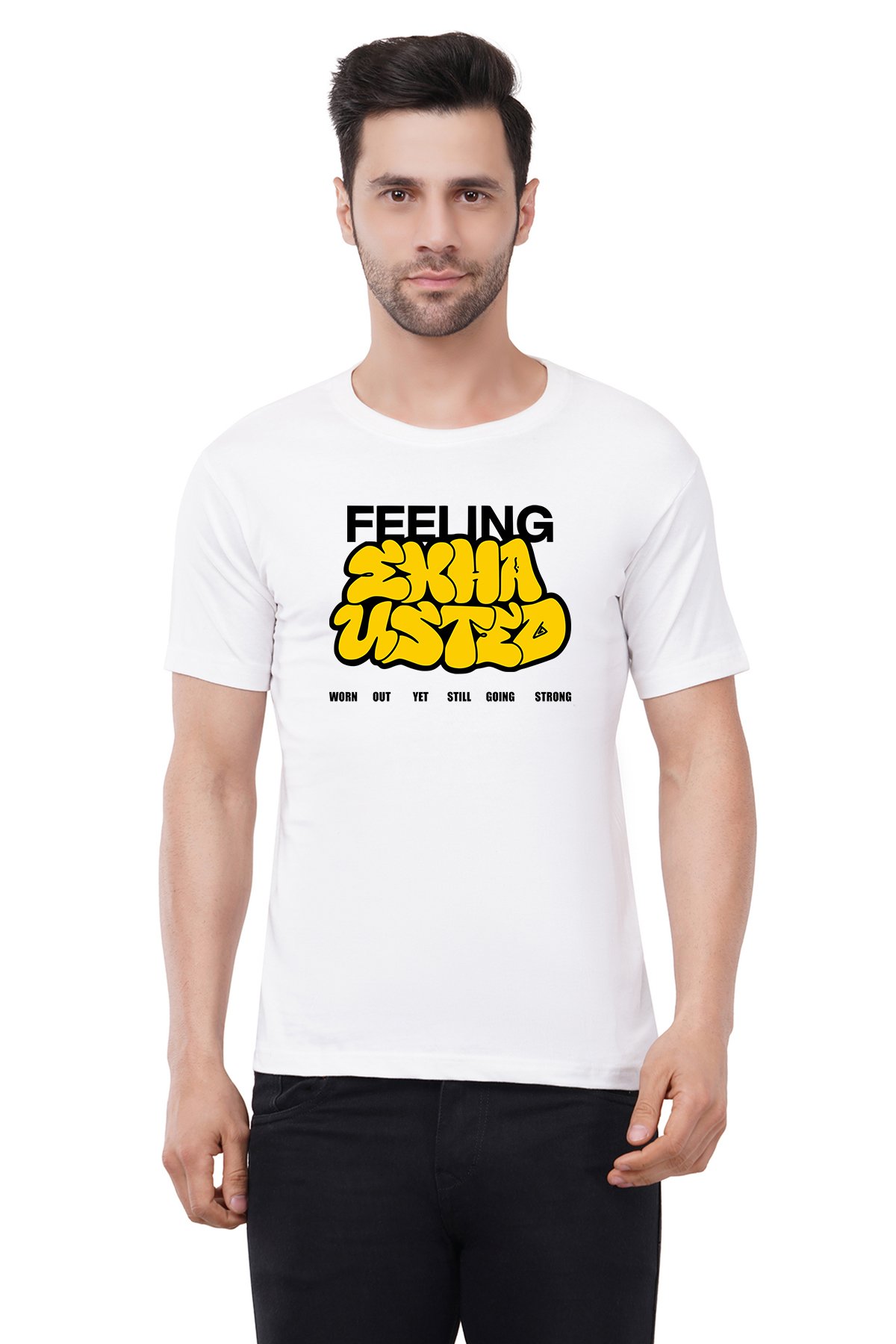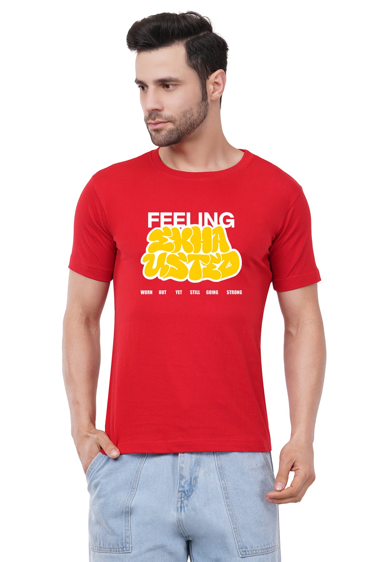 Caseria Men's Cotton Graphic Printed Half Sleeve T-Shirt - Feeling Exhausted